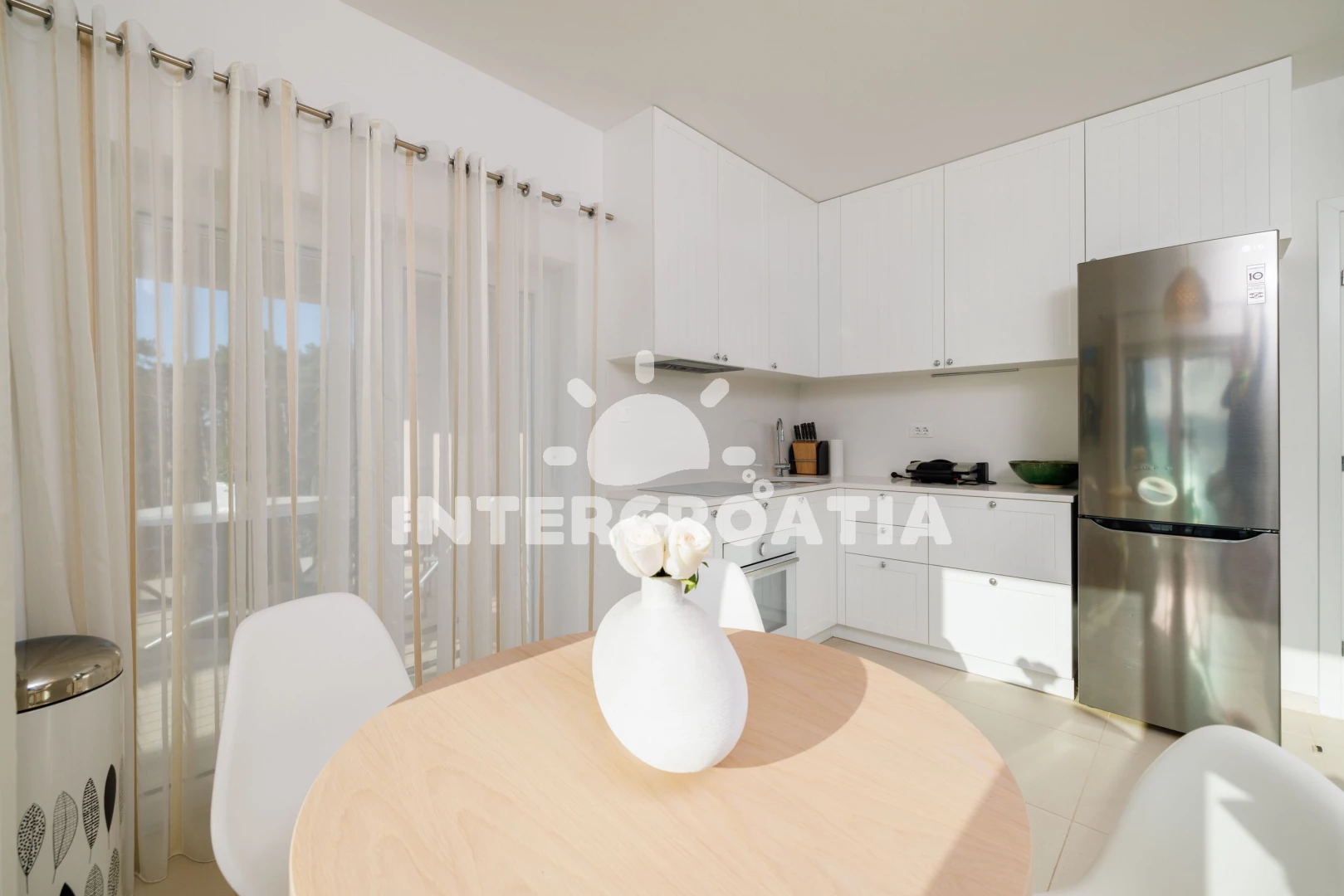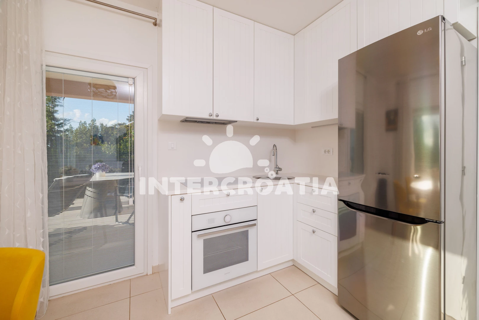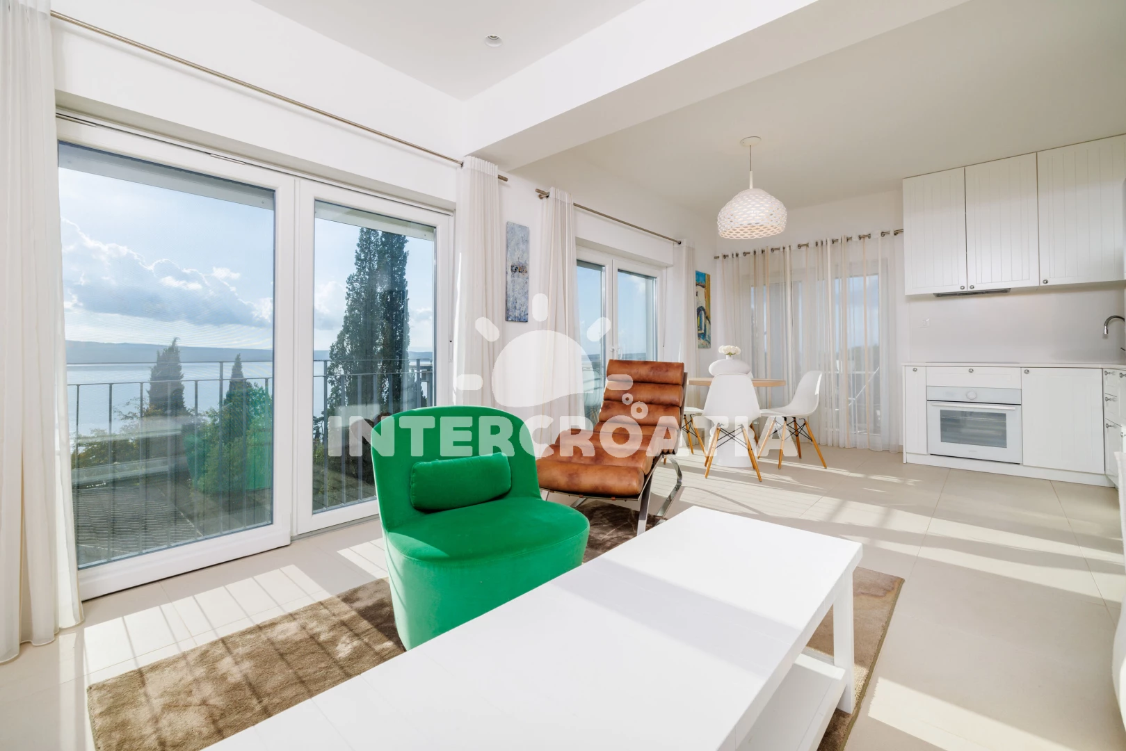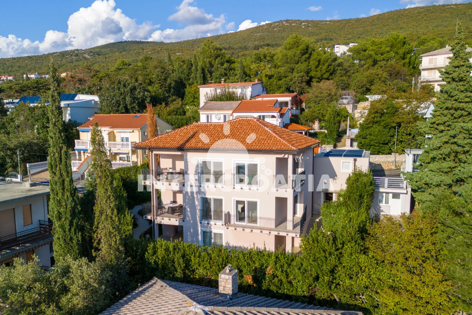 Vzdálenosti: Moře 250 m, pláž 300 m (oblázková a betonové desky), tenisové kurty 200 m, mini golf 200 m, restaurace 300 m, bar 300 m, supermarket 400 m, lékárna 600 m, pošta 600 m, potápění 650 m, banka 1,2 km, centrum 1,2 km, půjčovna kol 1,5 km, ambulance 1,5 km, čerpací stanice 1,5 km, veřejná doprava 1,5 km, muzeum 1,5 km, marina 15 km, letiště (Rijeka) 21 km,