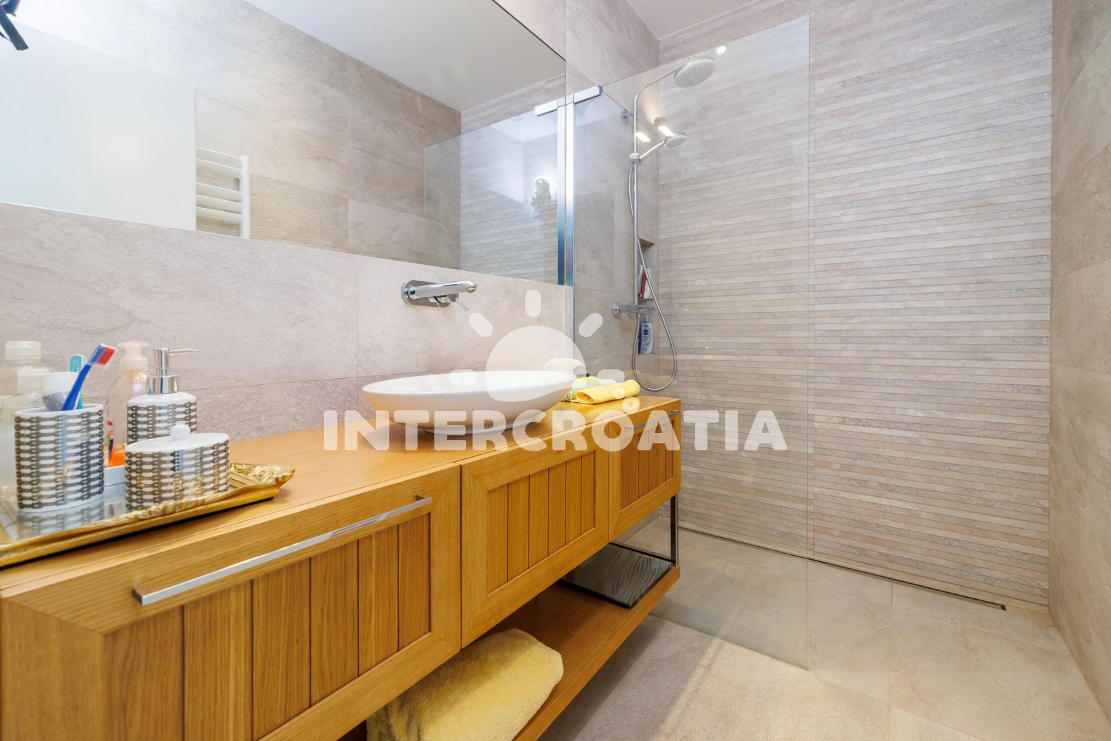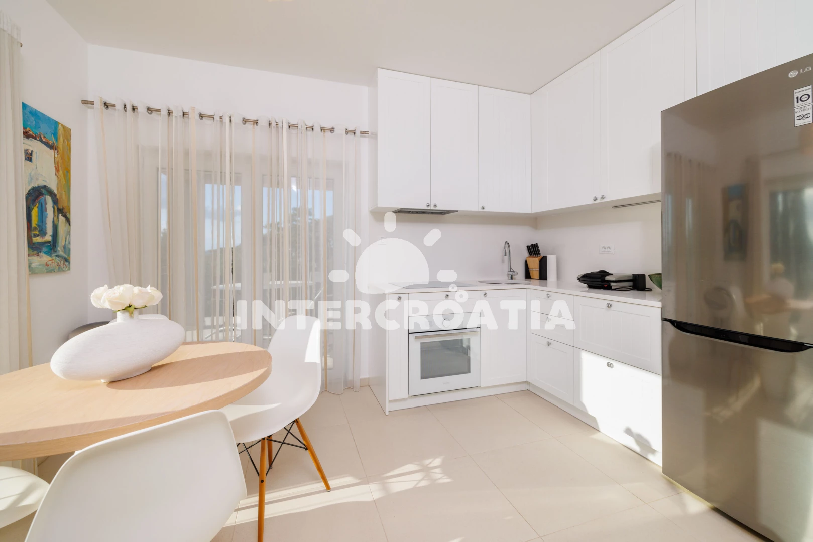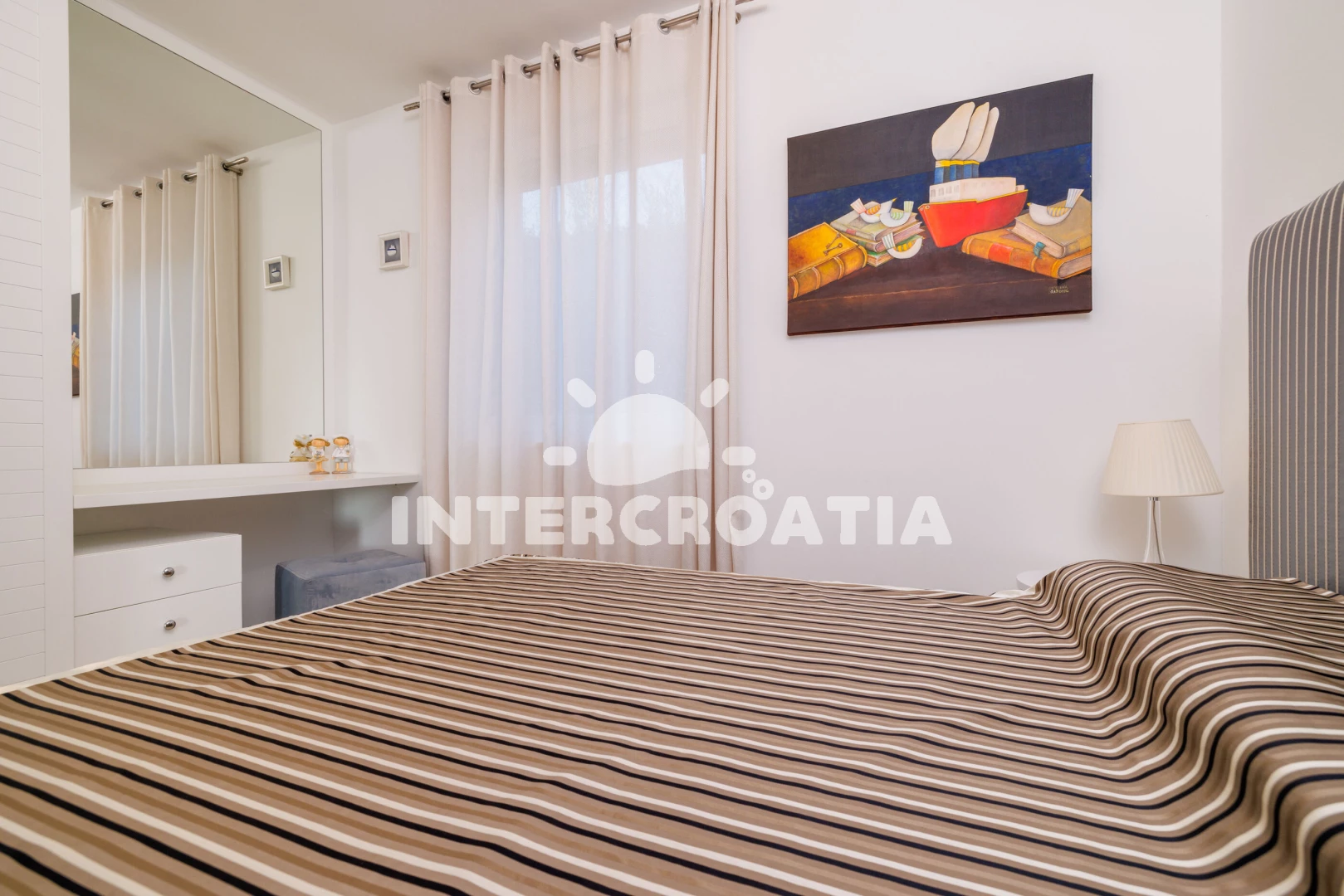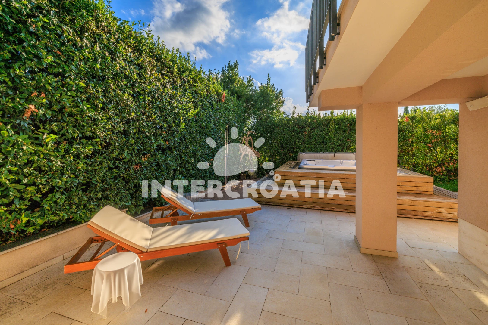 Vzdálenosti: Moře 250 m, pláž 300 m (oblázková a betonové desky), tenisové kurty 200 m, mini golf 200 m, restaurace 300 m, bar 300 m, supermarket 400 m, lékárna 600 m, pošta 600 m, potápění 650 m, banka 1,2 km, centrum 1,2 km, půjčovna kol 1,5 km, ambulance 1,5 km, čerpací stanice 1,5 km, veřejná doprava 1,5 km, muzeum 1,5 km, marina 15 km, letiště (Rijeka) 21 km,