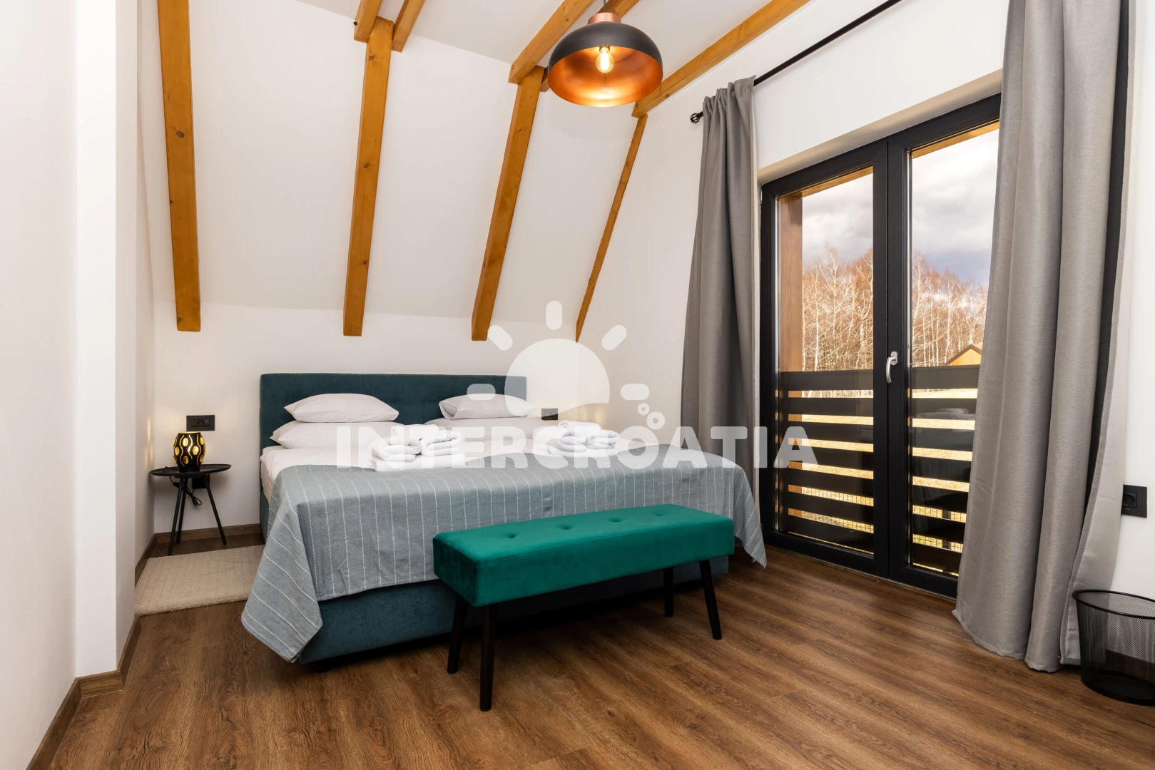 Vzdálenosti: Moře 52,5 km, pláž 52,5 km (písčitá a oblázková), centrum 750 m, supermarket 800 m, čerpací stanice 4,8 km, restaurace 6 km, bar 6,2 km, banka 6,6 km, směnárna 6,6 km, pošta 6,7 km, lékárna 6,8 km, park Plitvice 24,4 km, ambulance 25,2 km, diskotéka 52 km, trajekt (Rijeka) 54 km, letiště (Rijeka) 54 km, marina 54 km,
