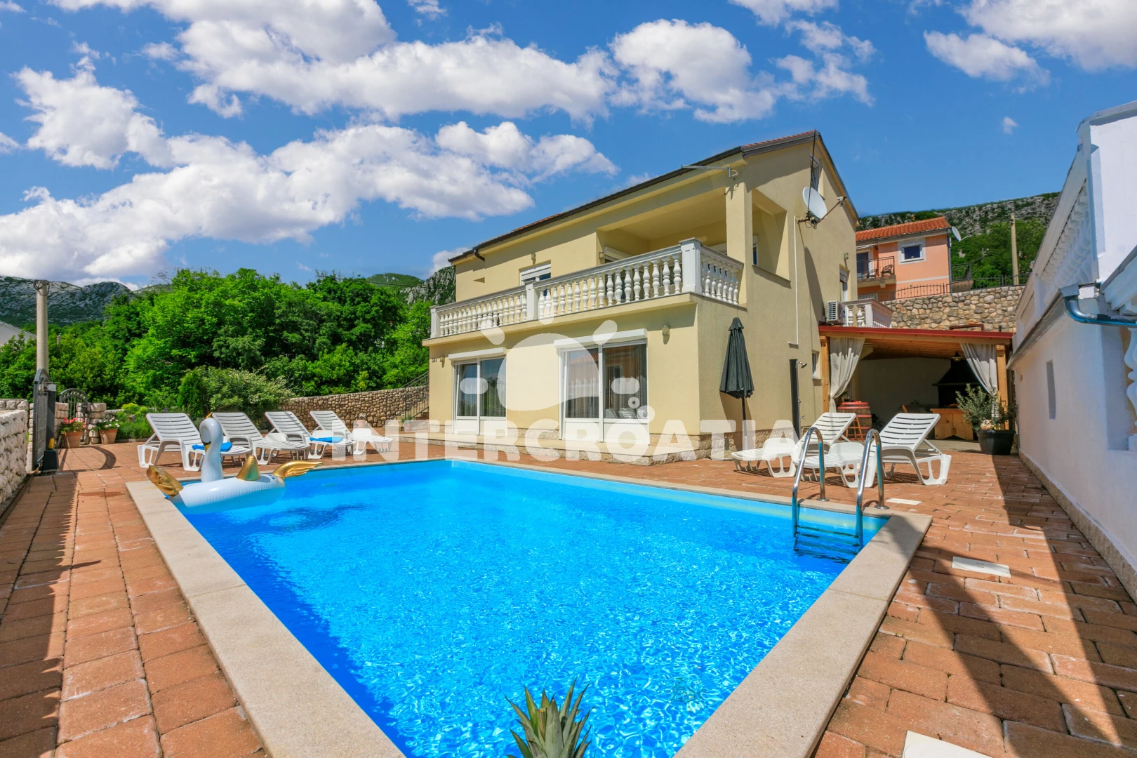 Vzdálenosti: Moře 4,8 km, pláž 4,8 km (písčitá, oblázková a větší kamení), bar 1,5 km, centrum 1,5 km, supermarket 1,5 km, směnárna 4,5 km, banka 4,5 km, lékárna 4,5 km, půjčovna kol 4,5 km, ambulance 4,5 km, diskotéka 4,5 km, veřejná doprava 4,5 km, muzeum 4,5 km, restaurace 4,5 km, pošta 4,5 km, čerpací stanice 4,8 km, potápění 5,5 km, marina 17 km, letiště (Rijeka) 29 km,