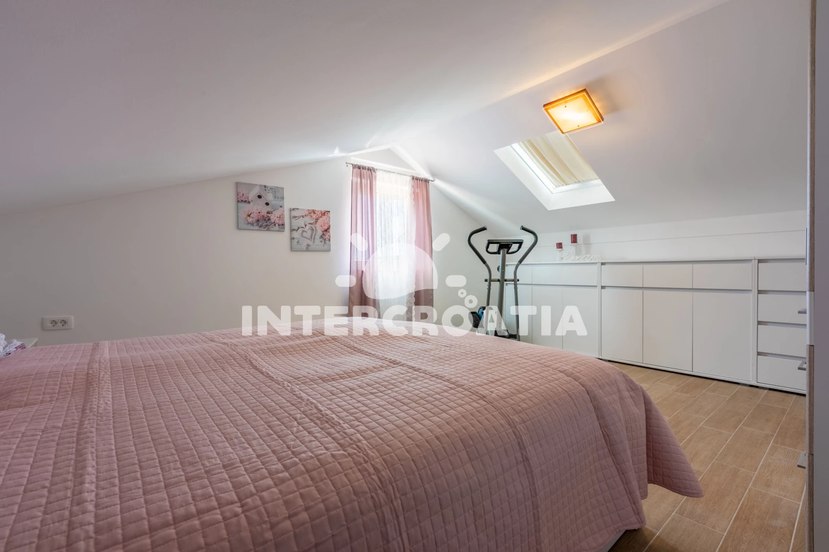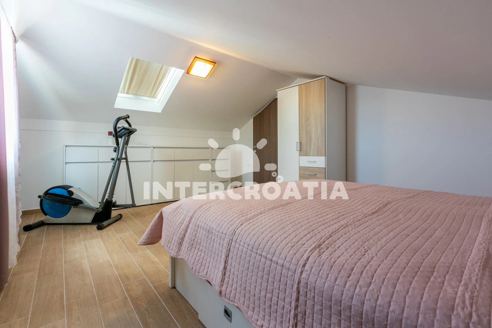 Domek (210 m2) s balkonem. Nachází se ve dvou patrech objektu. Domek má 5 ložnic a je vhodný pro až 10 osob. Kuchyňská linka je vybavena varnou deskou, kávovarem, troubou, toustovačem, myčkou na nádobí, mikrovlnnou troubou, rychlovarnou konvicí, nádobím, lednicí, mrazákem. V obývací místnosti je rozložitelná pohovka (extra lůžko pro 2 osoby). K dispozici televize se satelitním programem, radio, žehlička. První ložnice s dvoulůžkem. Druhá ložnice s dvoulůžkem. Třetí ložnice s jednolůžkem. Čtvrtá ložnice s jednolůžkem. Pátá ložnice s dvoulůžkem. První koupelna se sprchovým koutem, umyvadlem, fénem a WC. Druhá koupelna se sprchovým koutem, umyvadlem, fénem a WC. Třetí koupelna s vanou, umyvadlem, fénem a WC.