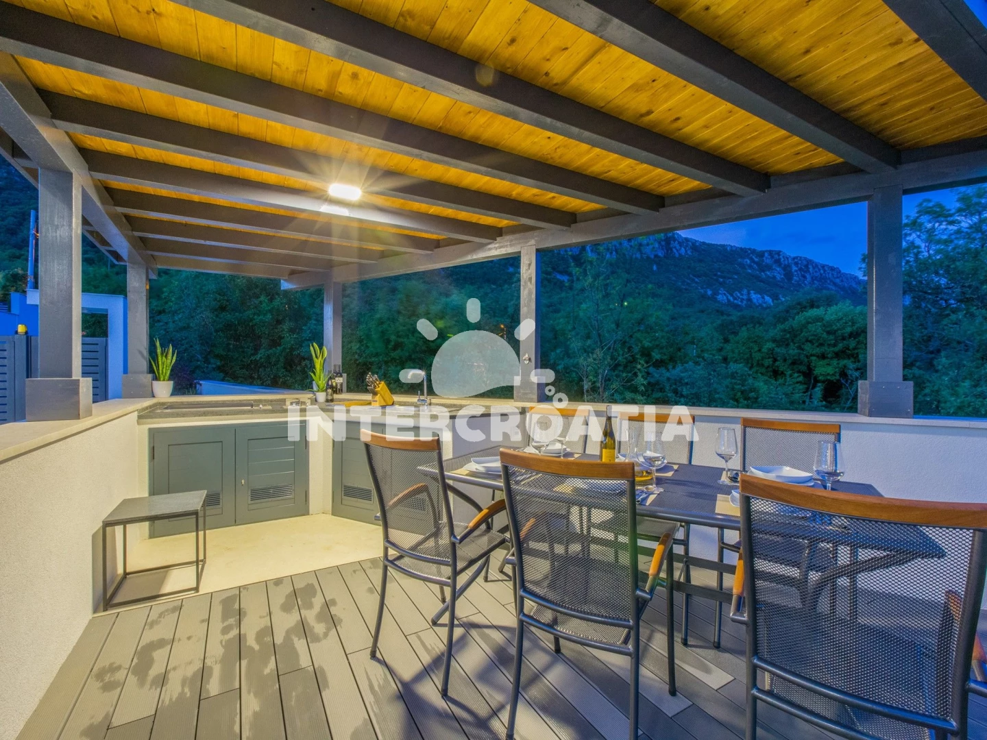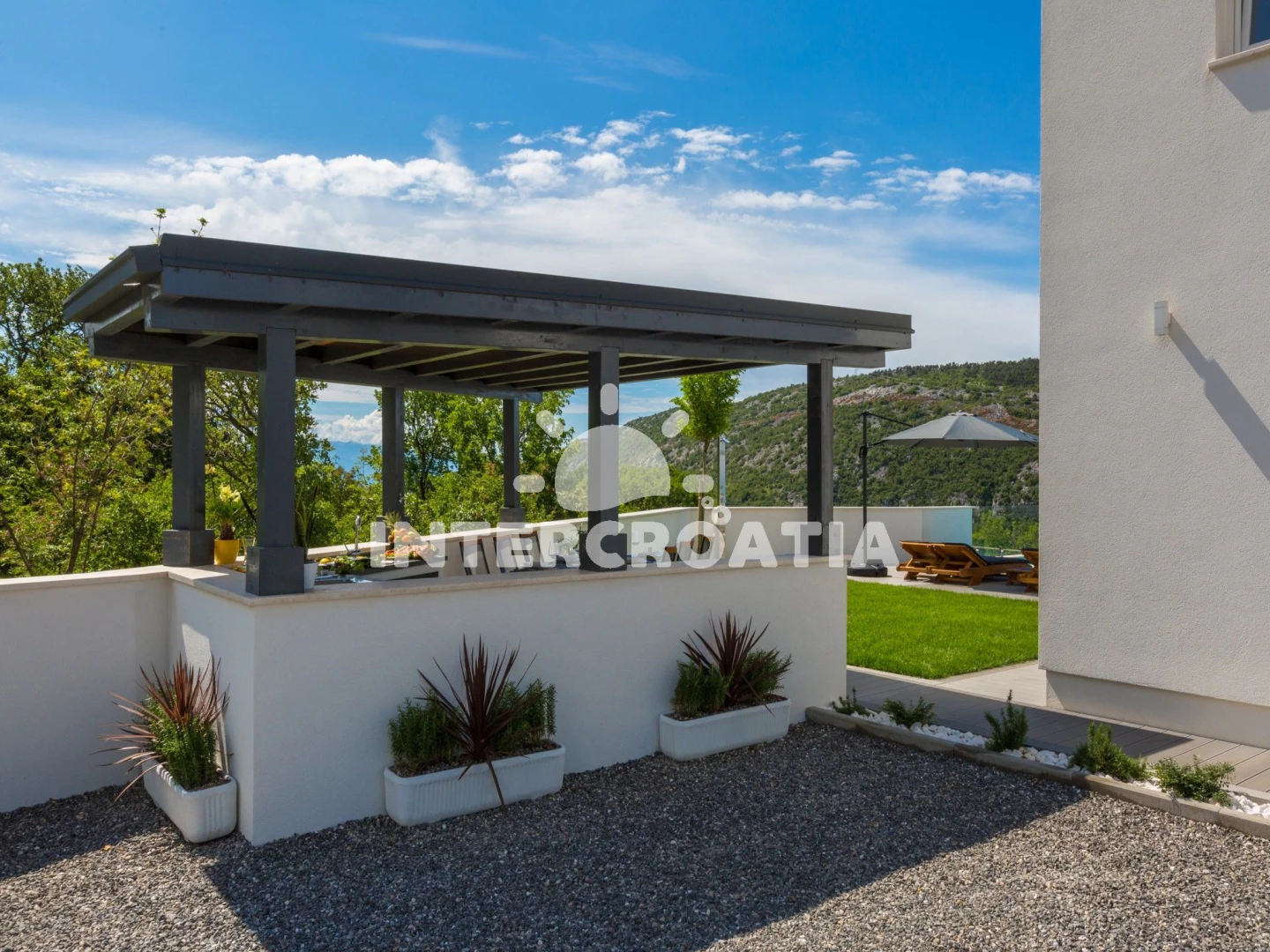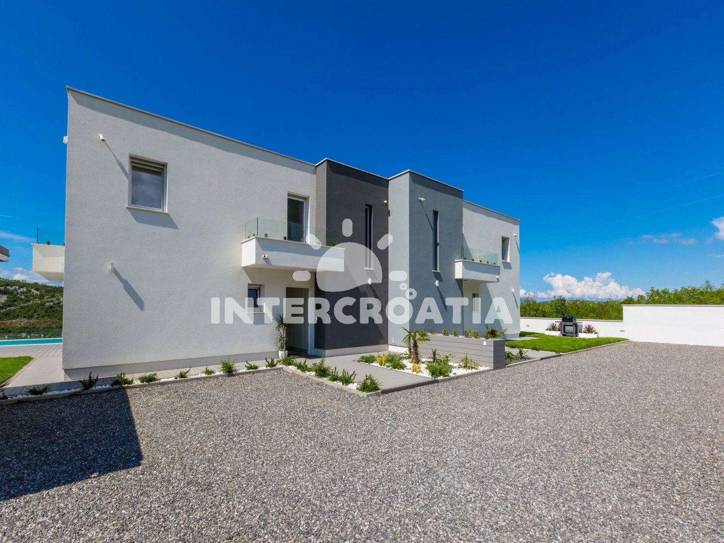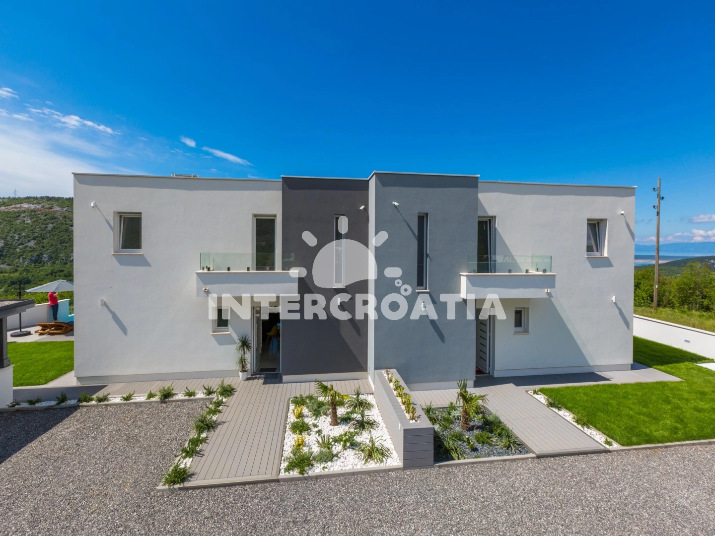 Domek se nachází 6000 m od moře a pláže. Pláž je oblázková a betonové desky. Domek disponuje bazénem s lehátky pro ubytované hosty. U objektu je k dispozici společná zahrada s posezením a grilem.