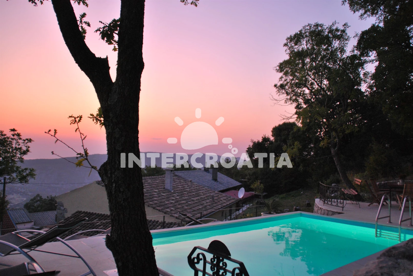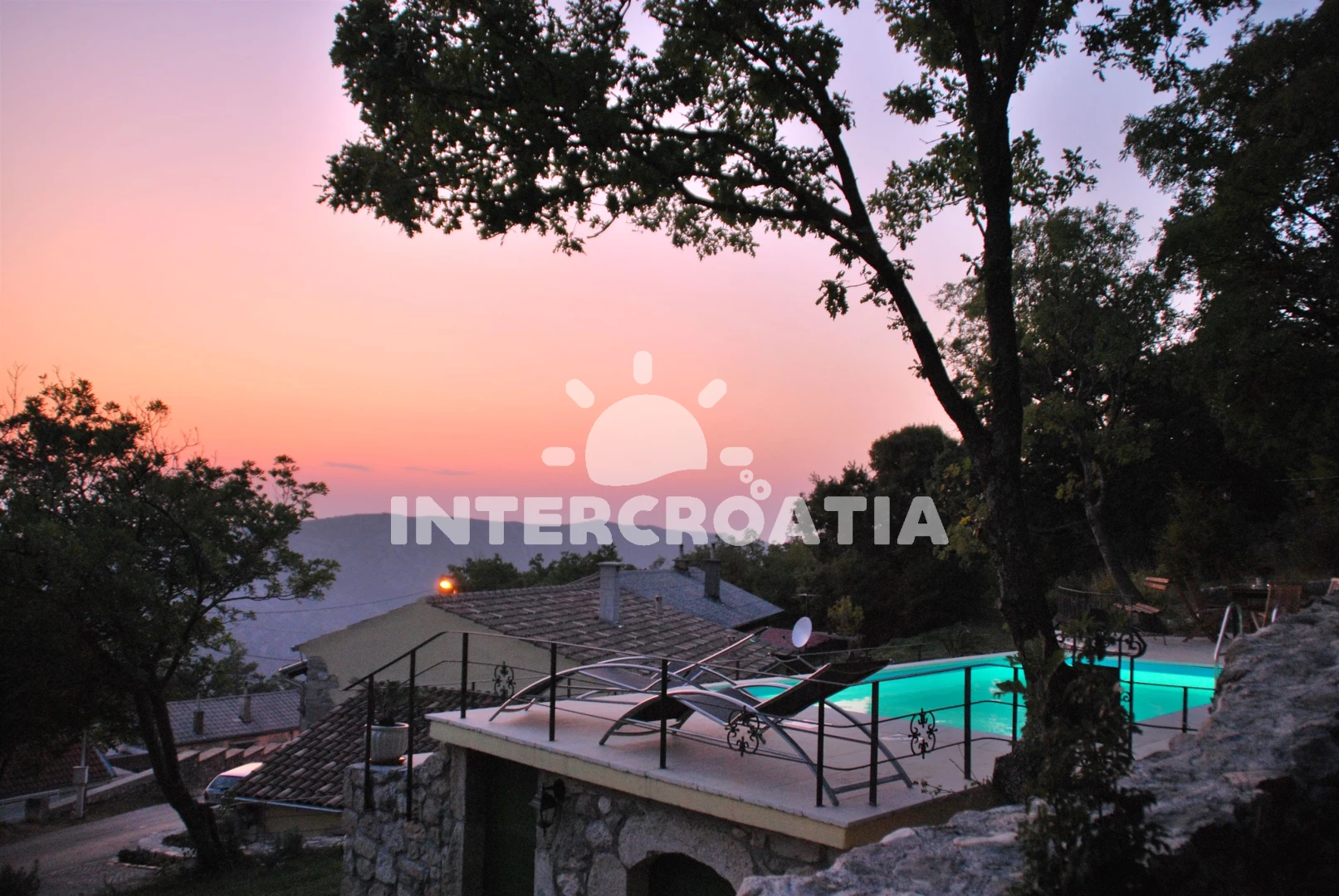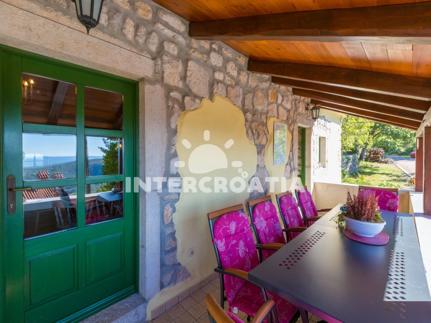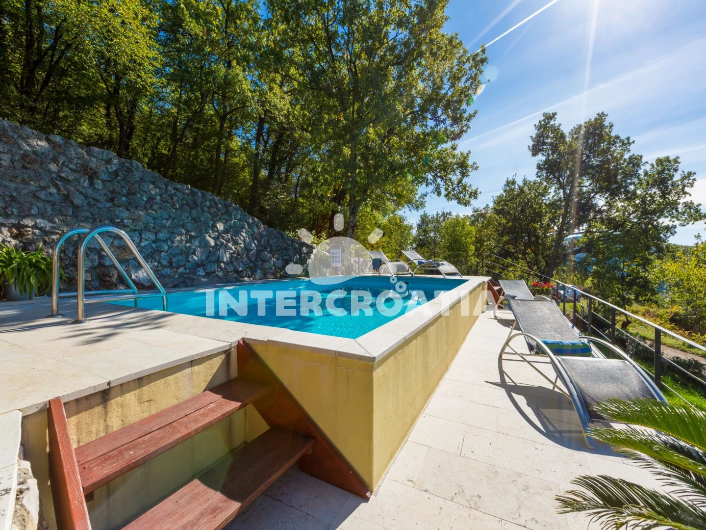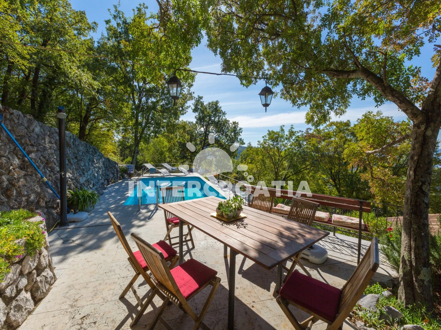 Domek se nachází 6000 m od moře a pláže. Pláž je skalnatá, oblázková, větší kamení a betonové desky. Domek disponuje bazénem s lehátky pro ubytované hosty. U objektu je k dispozici společná zahrada s posezením a grilem. Parkování je před domem.