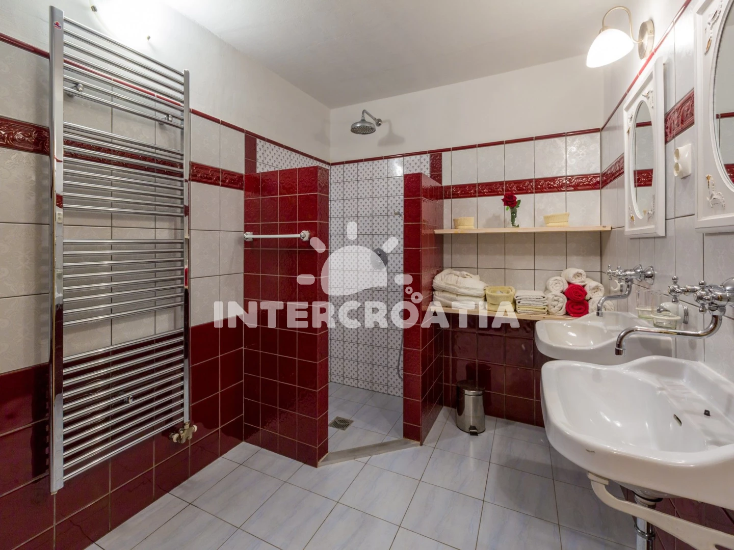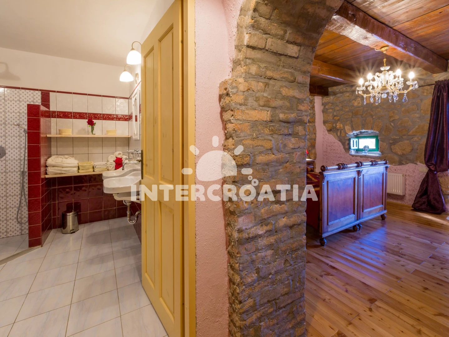 Domek (220 m2). Nachází se ve dvou patrech objektu. Domek má 3 ložnice a je vhodný pro až 6 osob. Kuchyňská linka je vybavena varnou deskou, toustovačem, kávovarem, troubou, myčkou na nádobí, mikrovlnnou troubou, rychlovarnou konvicí, nádobím, lednicí, mrazákem. K dispozici televize se satelitním programem, radio, žehlička. První ložnice s dvoulůžkem. Druhá ložnice s dvoulůžkem. Třetí ložnice s dvoulůžkem. První koupelna se sprchovým koutem, umyvadlem, fénem a WC. Druhá koupelna se sprchovým koutem, umyvadlem, fénem a WC. Dále samostatné WC.