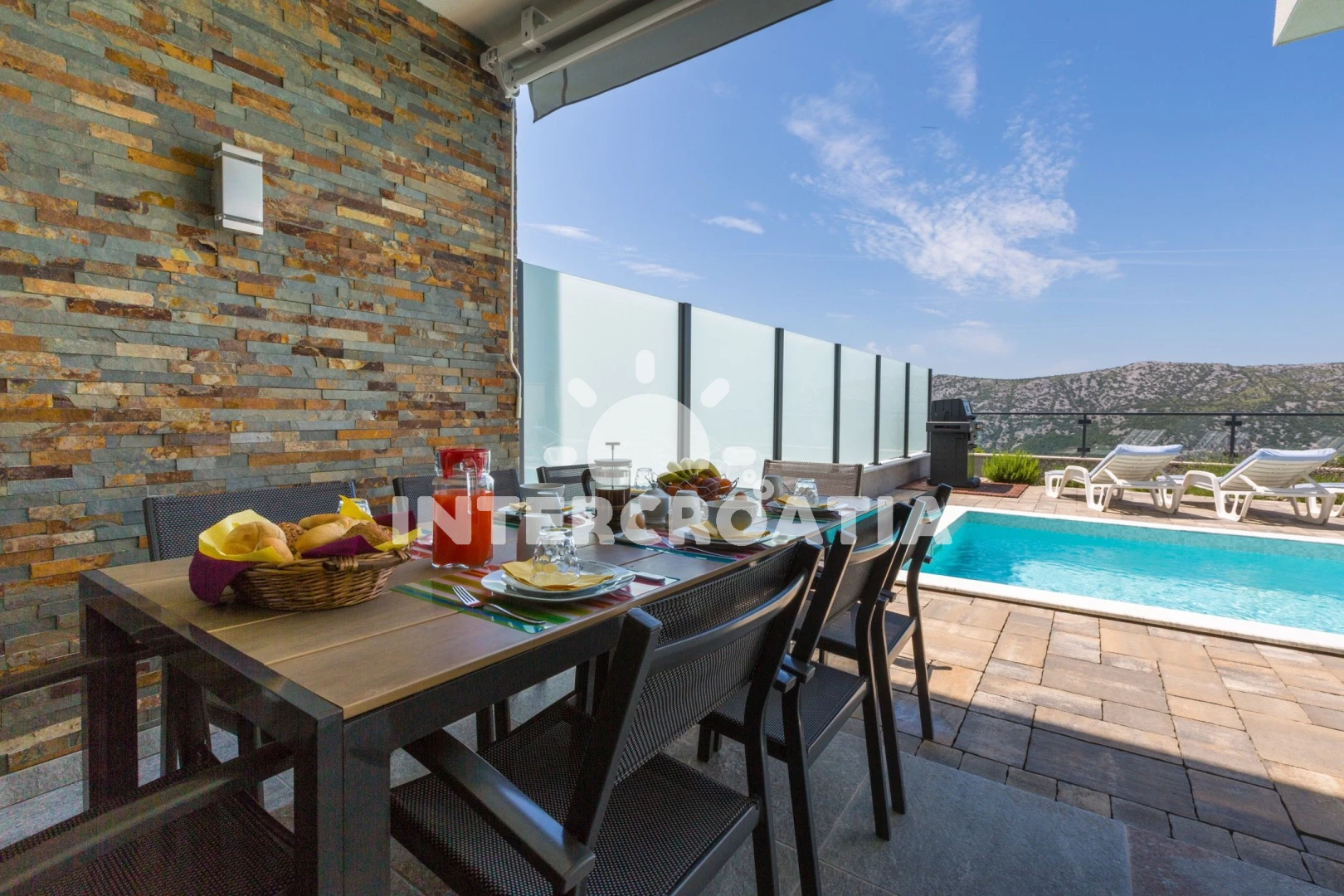 Domek se nachází 5700 m od moře a pláže. Pláž je oblázková a betonové desky. Domek disponuje bazénem s lehátky pro ubytované hosty. U objektu je k dispozici společná zahrada s posezením a grilem. Parkování je před domem.