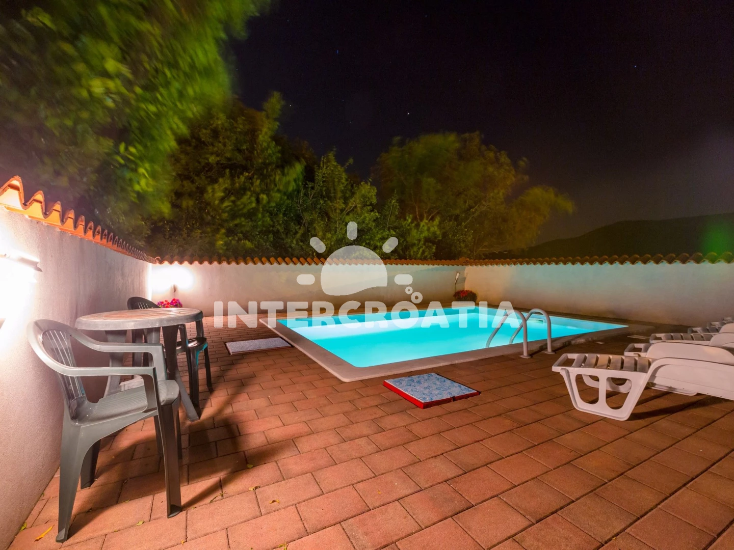 Domek se nachází 5000 m od moře a pláže. Pláž je skalnatá, oblázková, větší kamení a betonové desky. Domek disponuje bazénem s lehátky pro ubytované hosty. K dispozici posilovna. U objektu je k dispozici společná zahrada s posezením a grilem. Parkování je před domem.