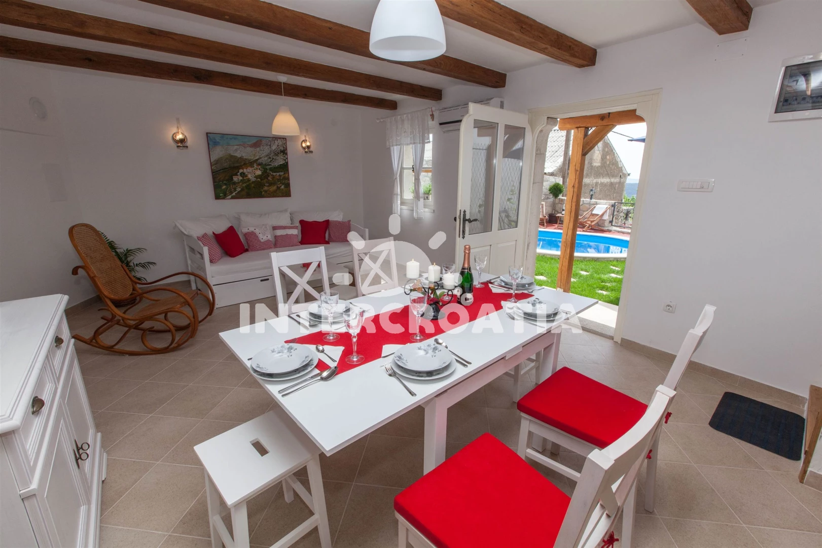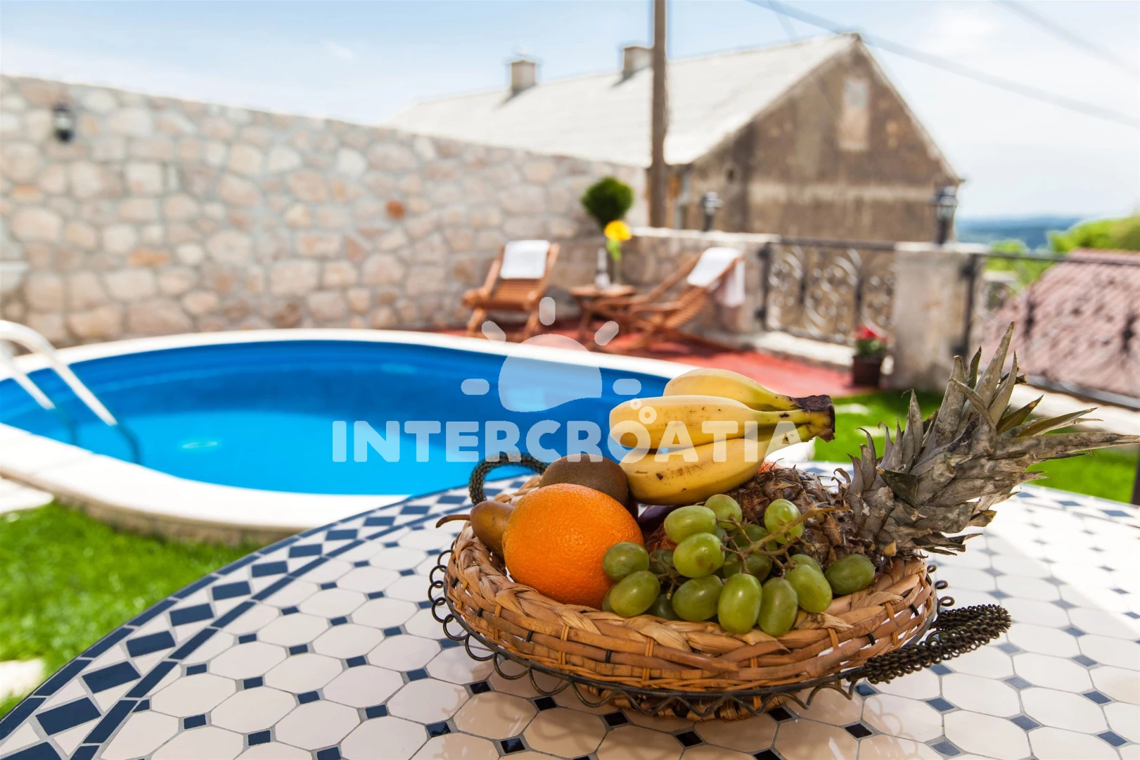 Domek se nachází 6000 m od moře a pláže. Domek disponuje bazénem s lehátky pro ubytované hosty. U objektu je k dispozici společná zahrada s posezením a grilem. Parkování je před domem.