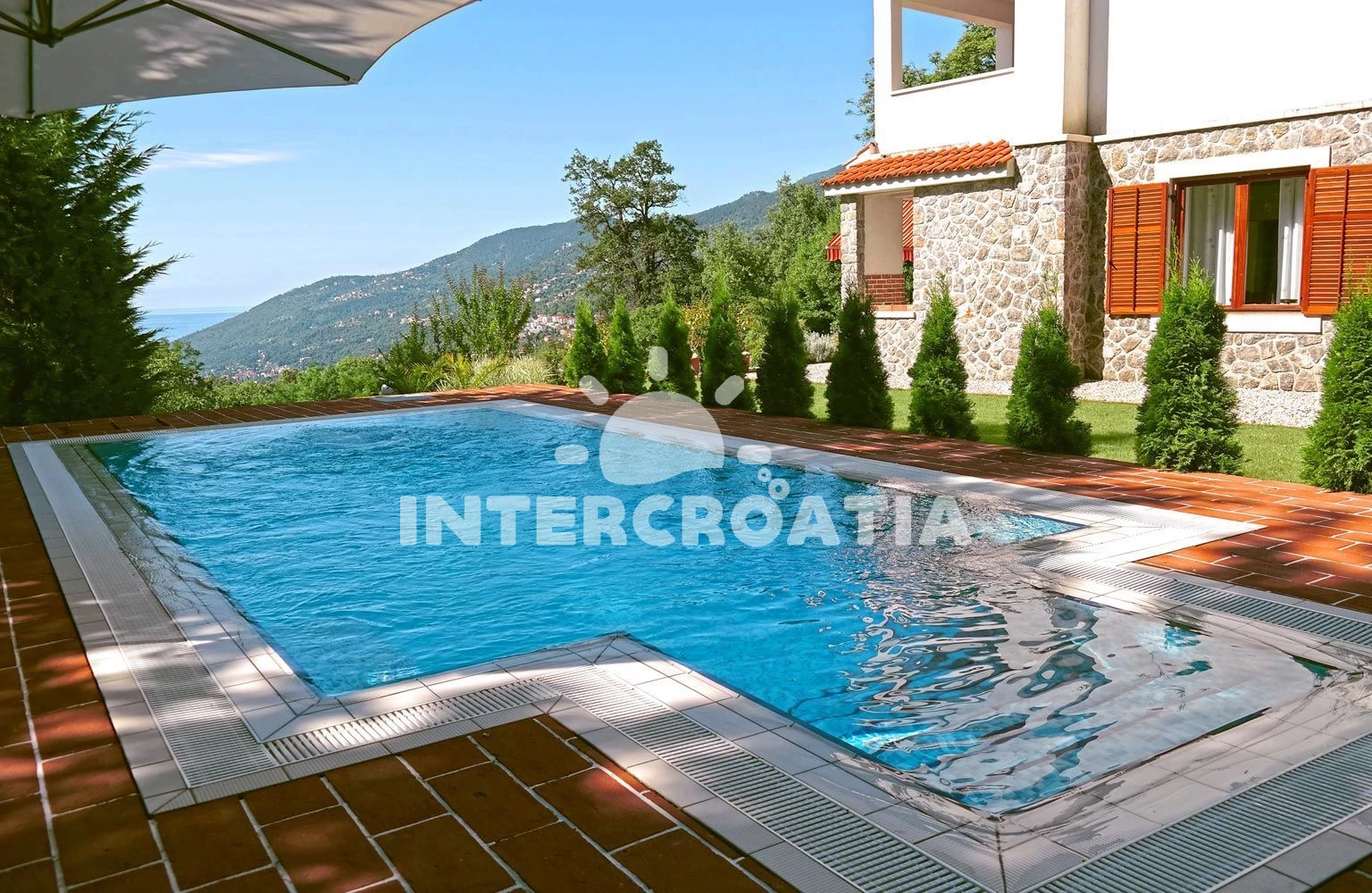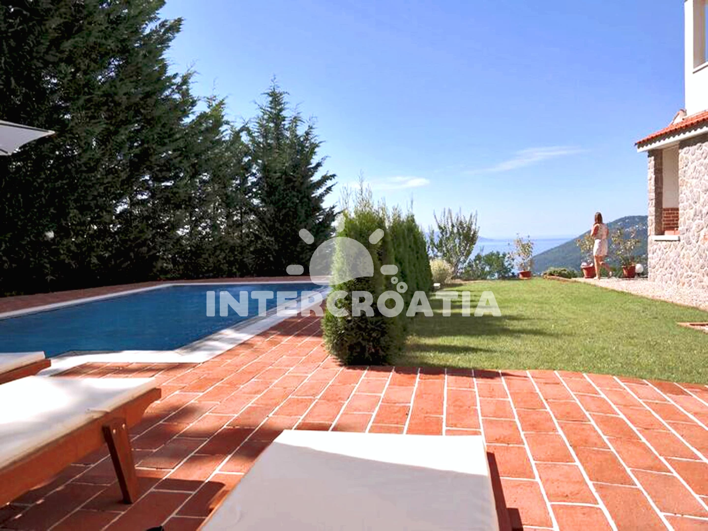 Domek se nachází 4500 m od moře a pláže. Pláž je oblázková a betonové desky. Domek disponuje bazénem s lehátky pro ubytované hosty. K dispozici vířivka. U objektu je k dispozici společná zahrada s posezením a grilem. Parkování je před domem.