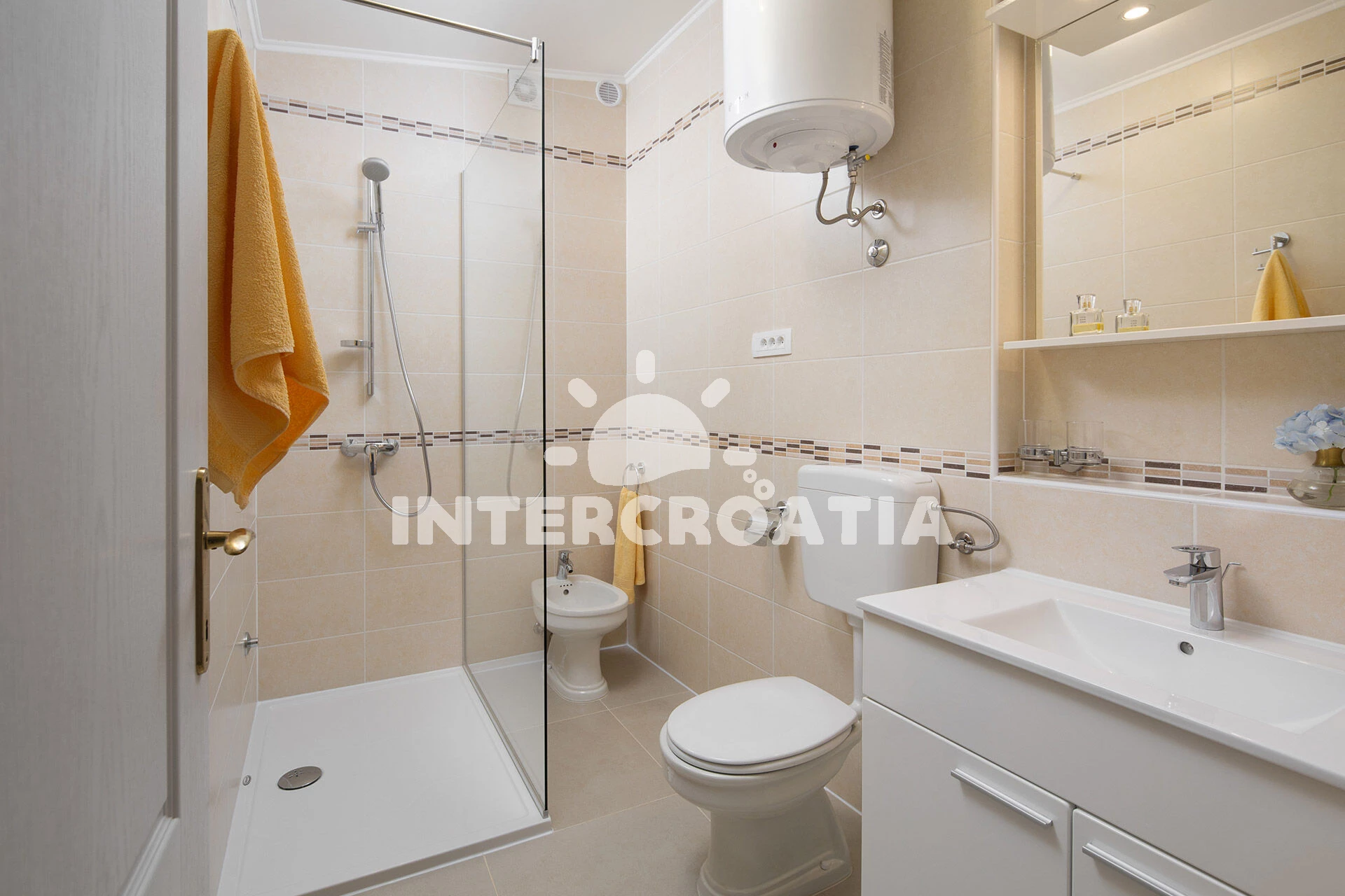 Vzdálenosti: Moře 2,9 km, pláž 3,0 km (oblázková a betonové desky), veřejná doprava 60 m, supermarket 510 m, ambulance 510 m, bar 3,0 km, tenisové kurty 3,0 km, půjčovna motorových člunů 3,0 km, marina 3,0 km, restaurace 3,0 km, pošta 3,0 km, směnárna 3,0 km, centrum 3,0 km, čerpací stanice 5,0 km, lékárna 5,0 km, banka 5,0 km, muzeum 6,0 km, diskotéka 6,0 km, potápění 7,0 km,
