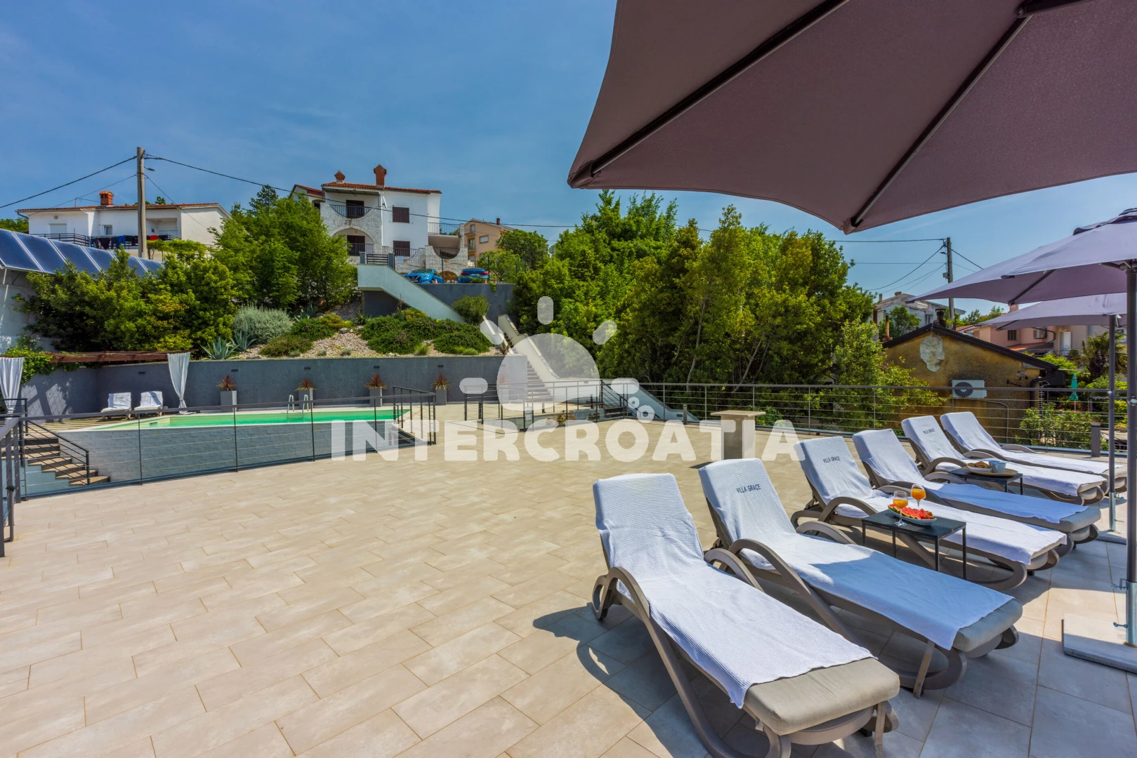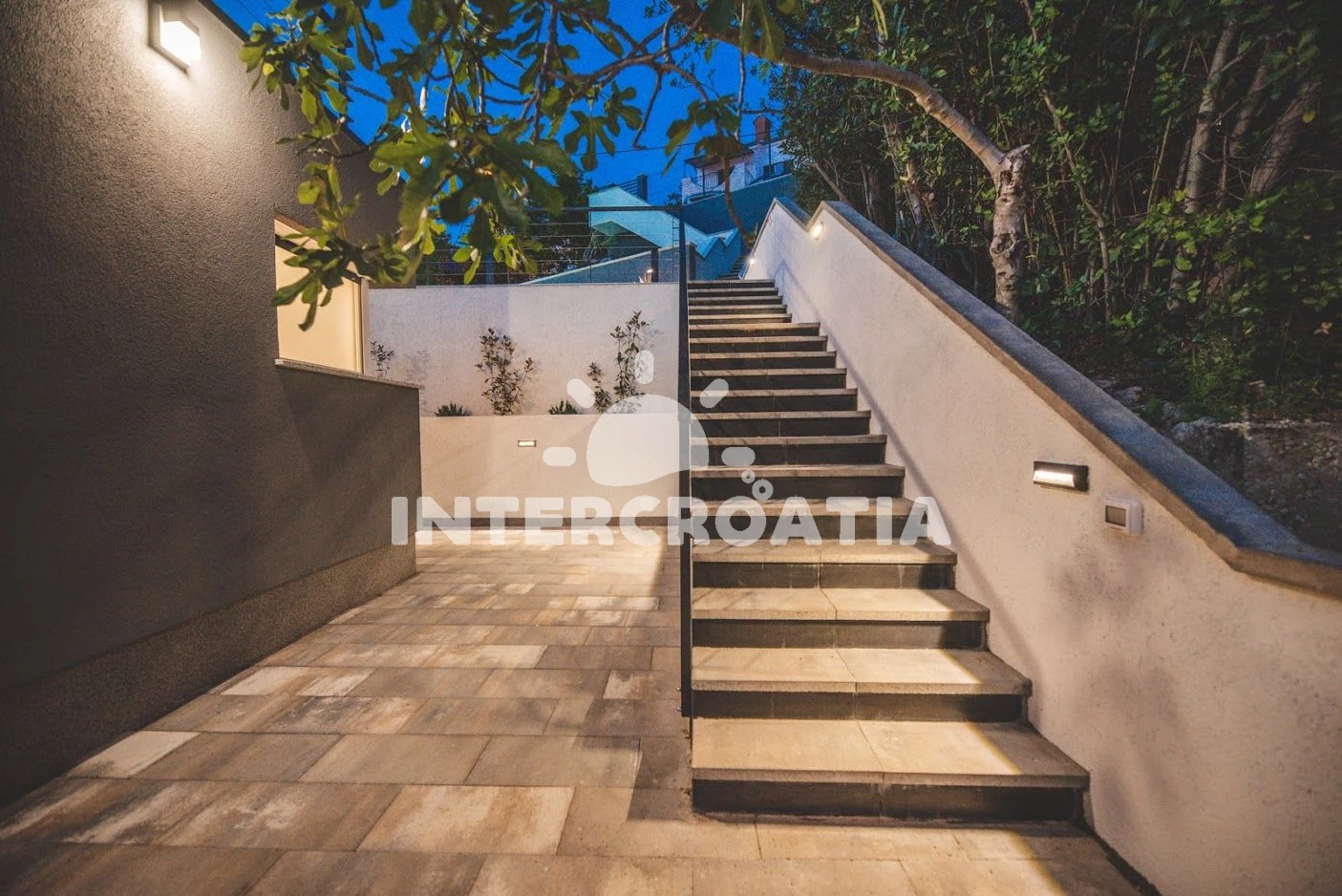 Vzdálenosti: Moře 50 m, pláž 50 m (oblázková a betonové desky), bar 150 m, restaurace 200 m, supermarket 500 m, centrum 1 km, směnárna 1 km, diskotéka 9 km, letiště (Rijeka) 25 km,