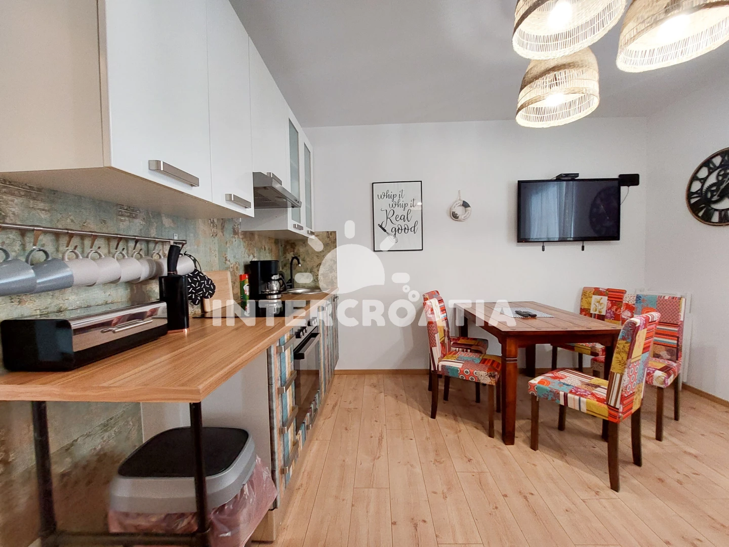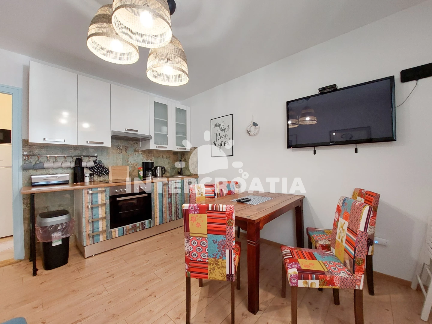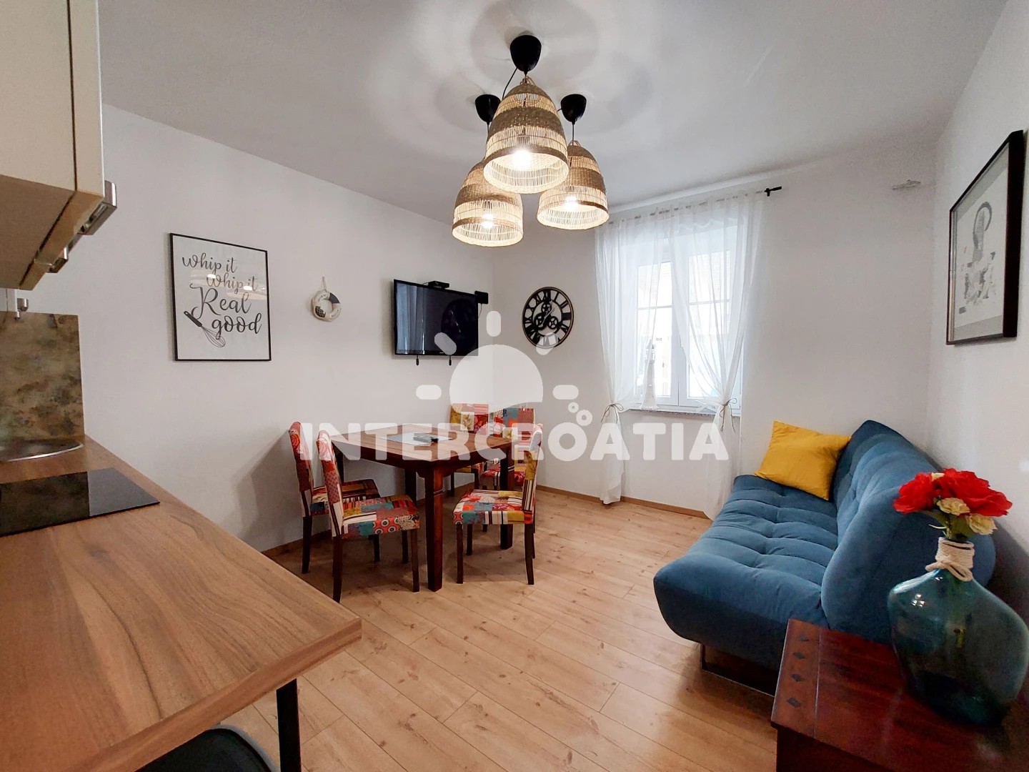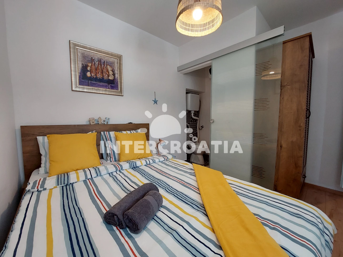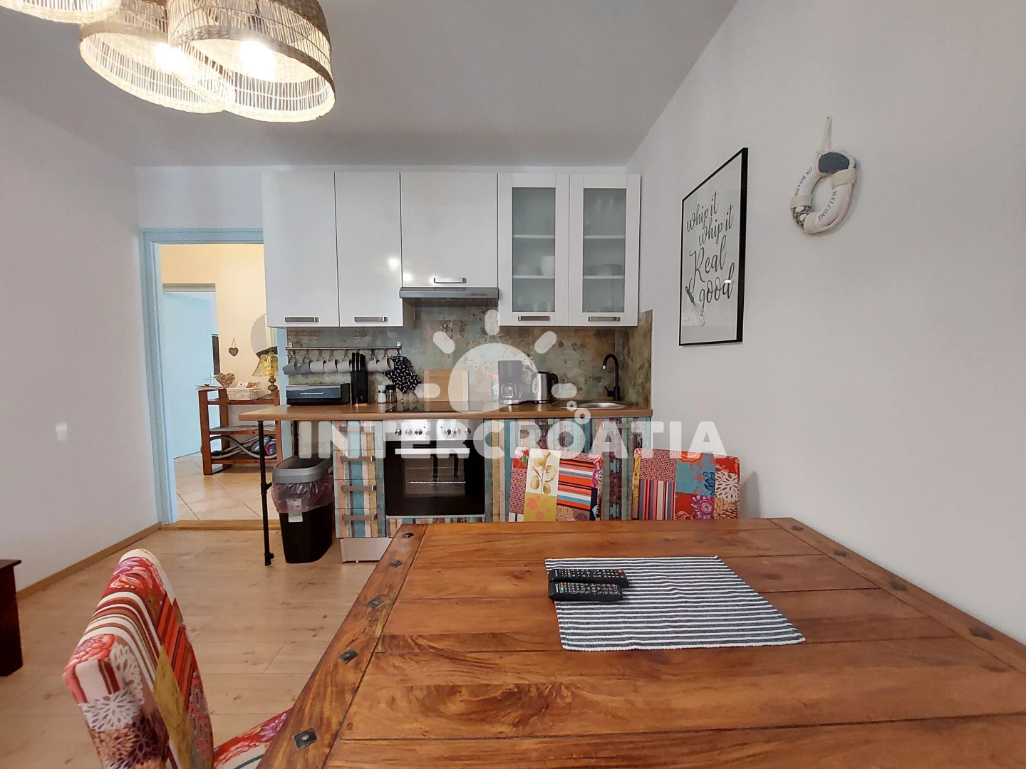Vzdálenosti: Moře 150 m, pláž 150 m (oblázková a betonové desky), supermarket 10 m, bar 10 m, restaurace 40 m, veřejná doprava 50 m, centrum 50 m, směnárna 50 m, letiště (Rijeka) 20 km,