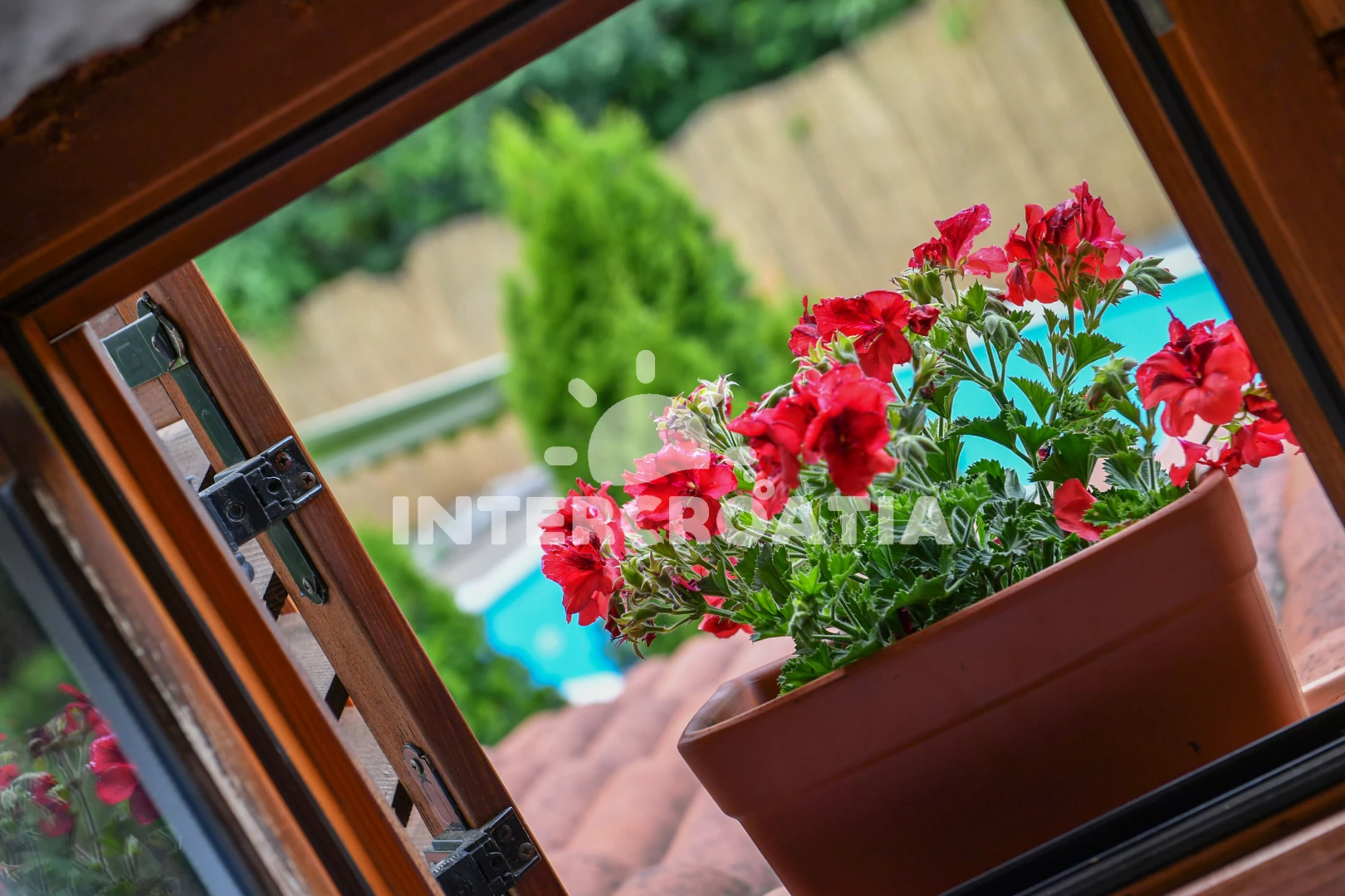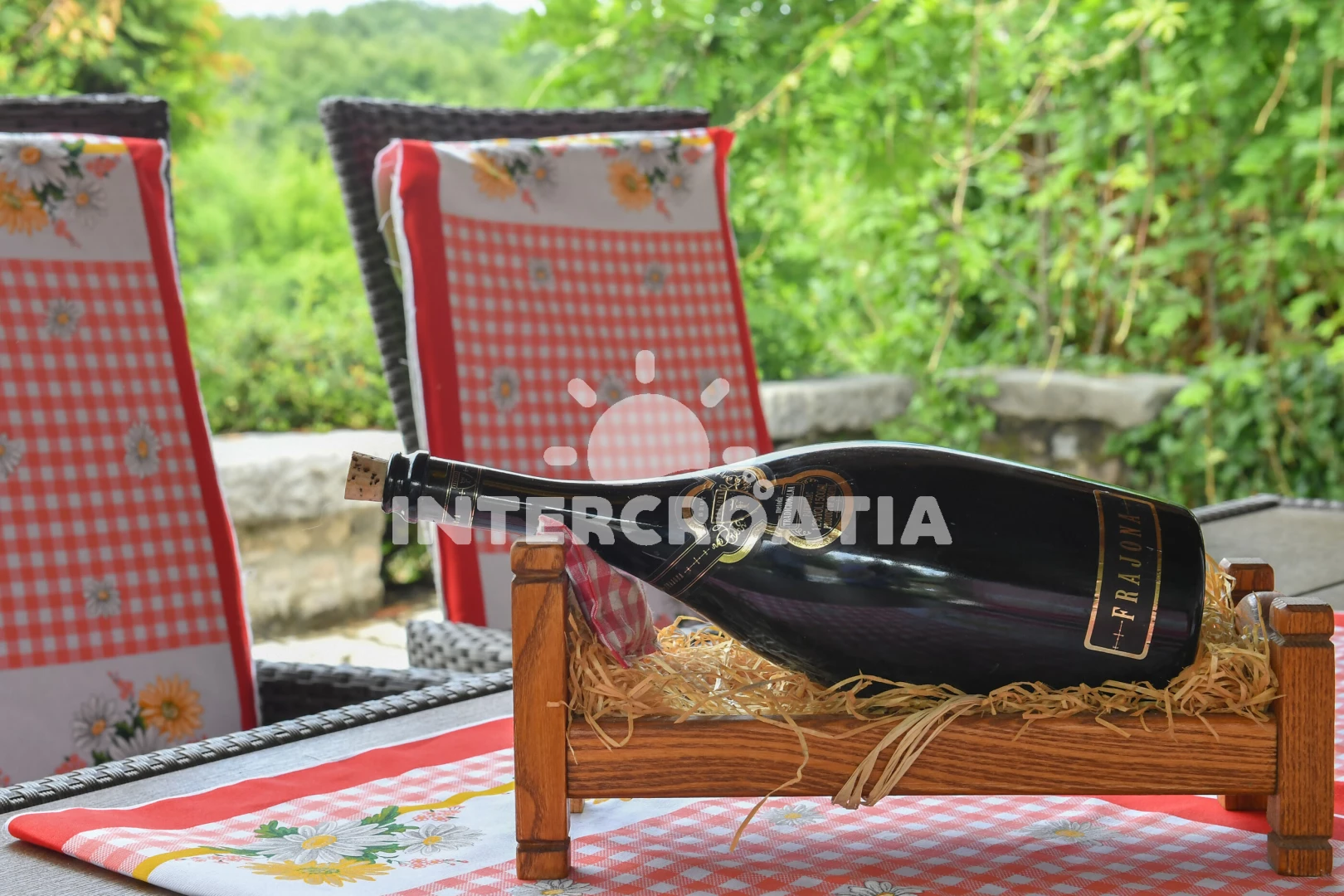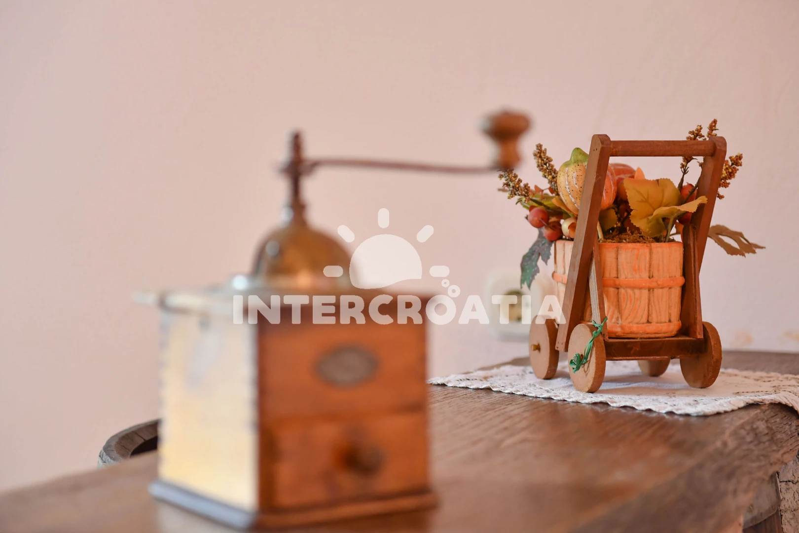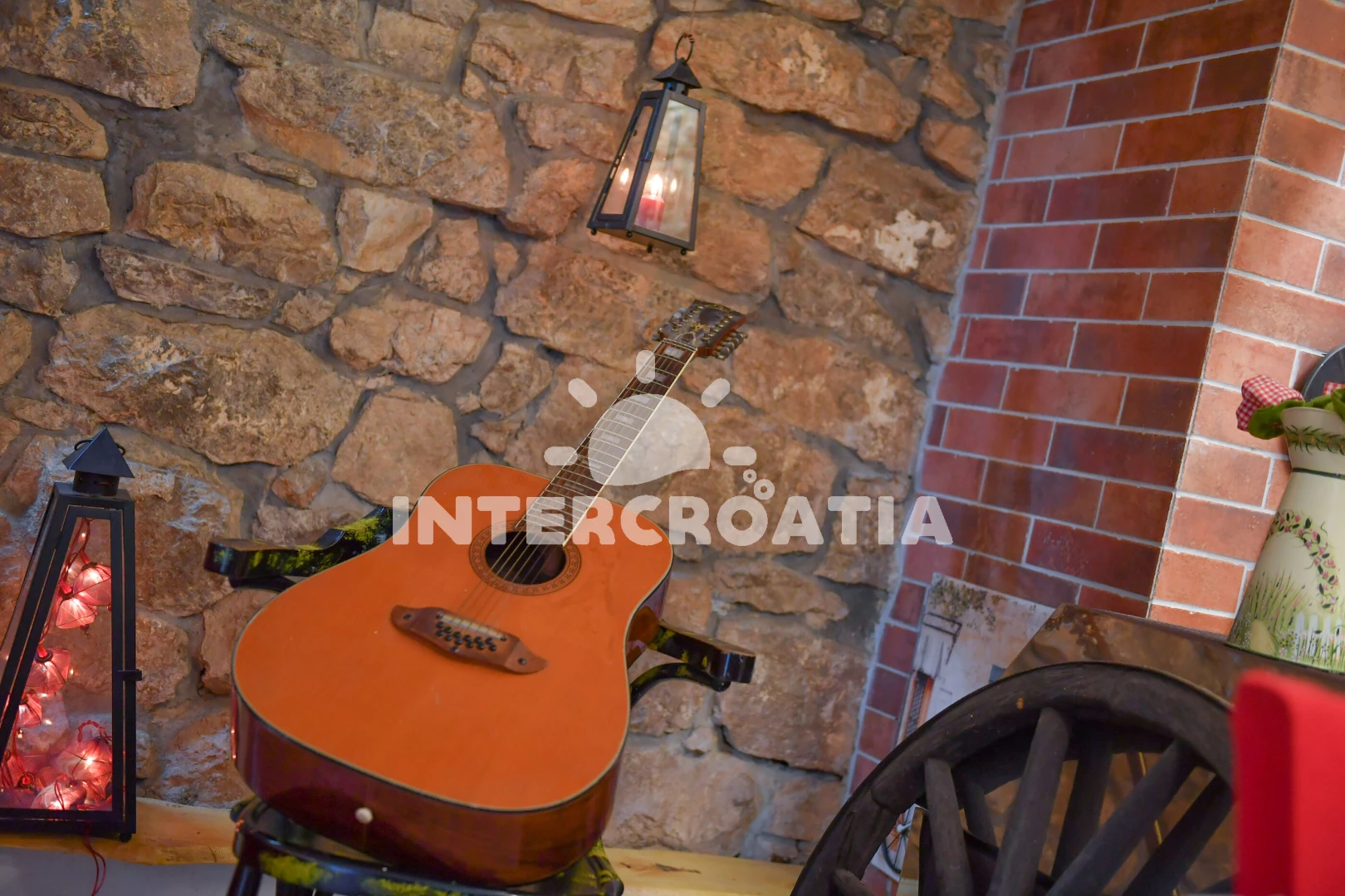 Domek se nachází 12900 m od moře a pláže. Pláž je skalnatá a oblázková. Domek disponuje bazénem s lehátky pro ubytované hosty. U objektu je k dispozici společná zahrada s posezením a grilem. Parkování je před domem.