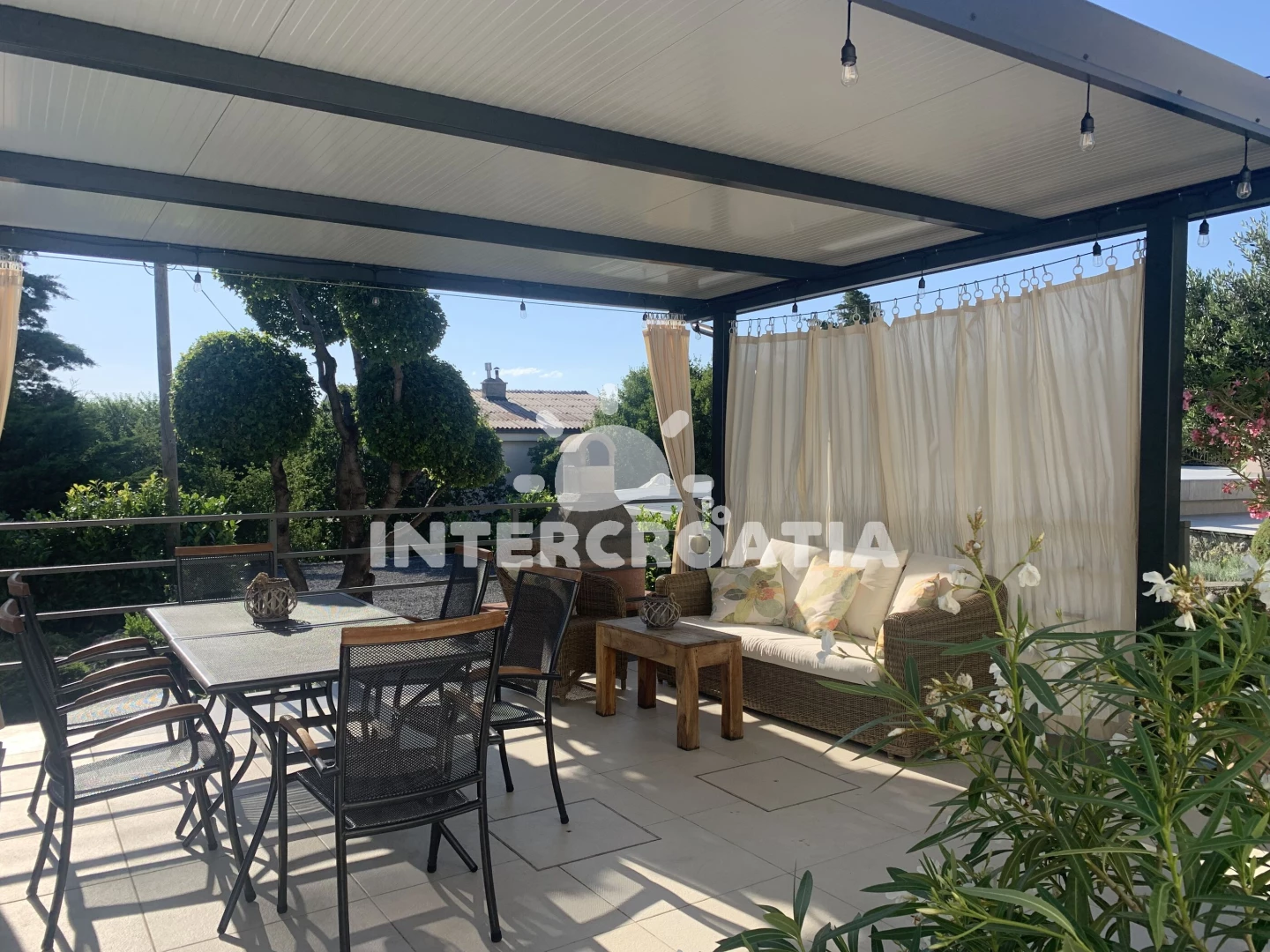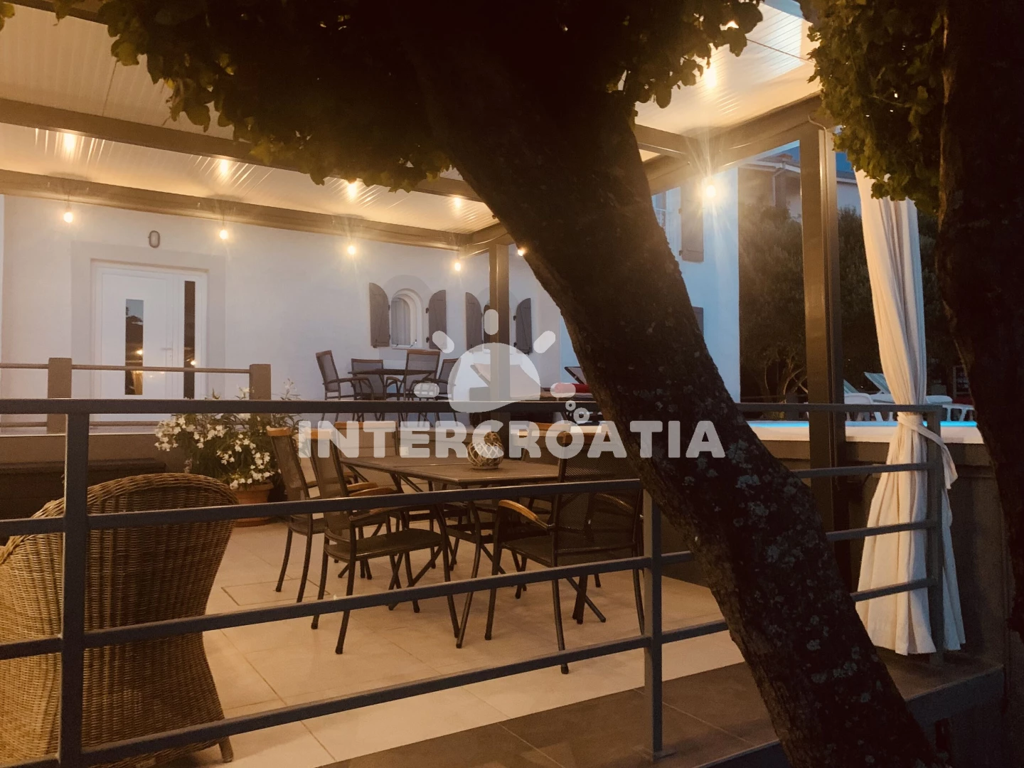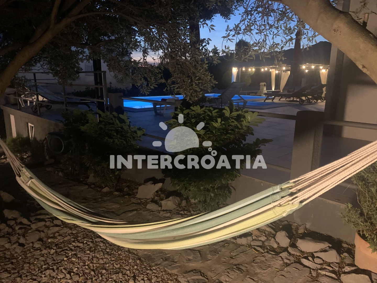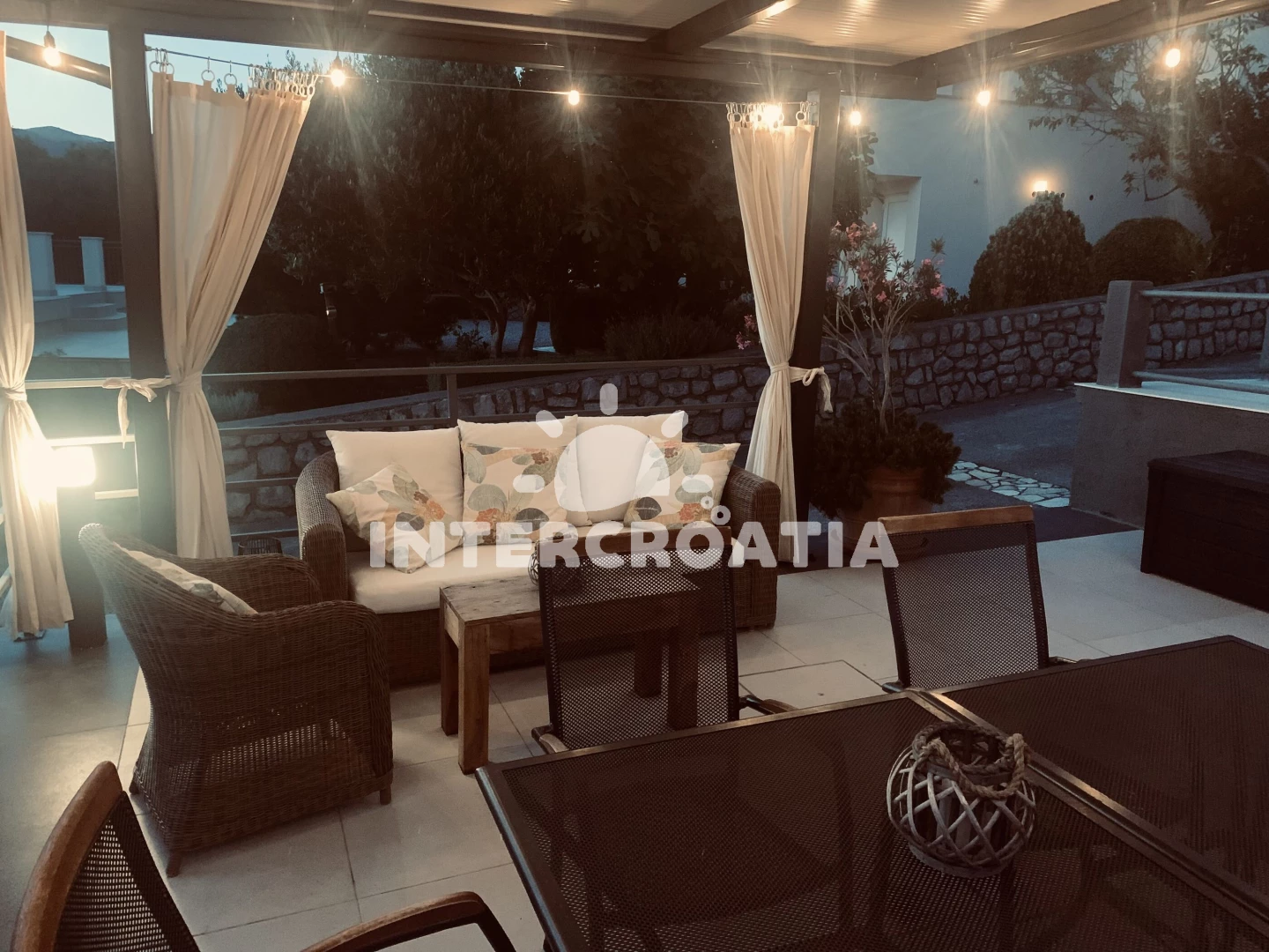 Domek (250 m2) s výhledem na moře. Nachází se ve dvou patrech objektu. Domek má 4 ložnice a je vhodný pro až 10 osob. Kuchyňská linka je vybavena varnou deskou, troubou, kávovarem, myčkou na nádobí, mikrovlnnou troubou, rychlovarnou konvicí, nádobím, lednicí, mrazákem. V obývací místnosti je rozložitelná pohovka (extra lůžko pro 3 osoby). K dispozici televize se satelitním programem. První ložnice s dvoulůžkem. Druhá ložnice s dvoulůžkem. Třetí ložnice s dvoulůžkem. Čtvrtá ložnice s jednolůžkem. První koupelna se sprchovým koutem, umyvadlem, fénem a WC. Druhá koupelna se sprchovým koutem, umyvadlem, fénem a WC. Třetí koupelna se sprchovým koutem, umyvadlem, fénem a WC. Čtvrtá koupelna se sprchovým koutem, umyvadlem, fénem a WC. Dále samostatné WC.