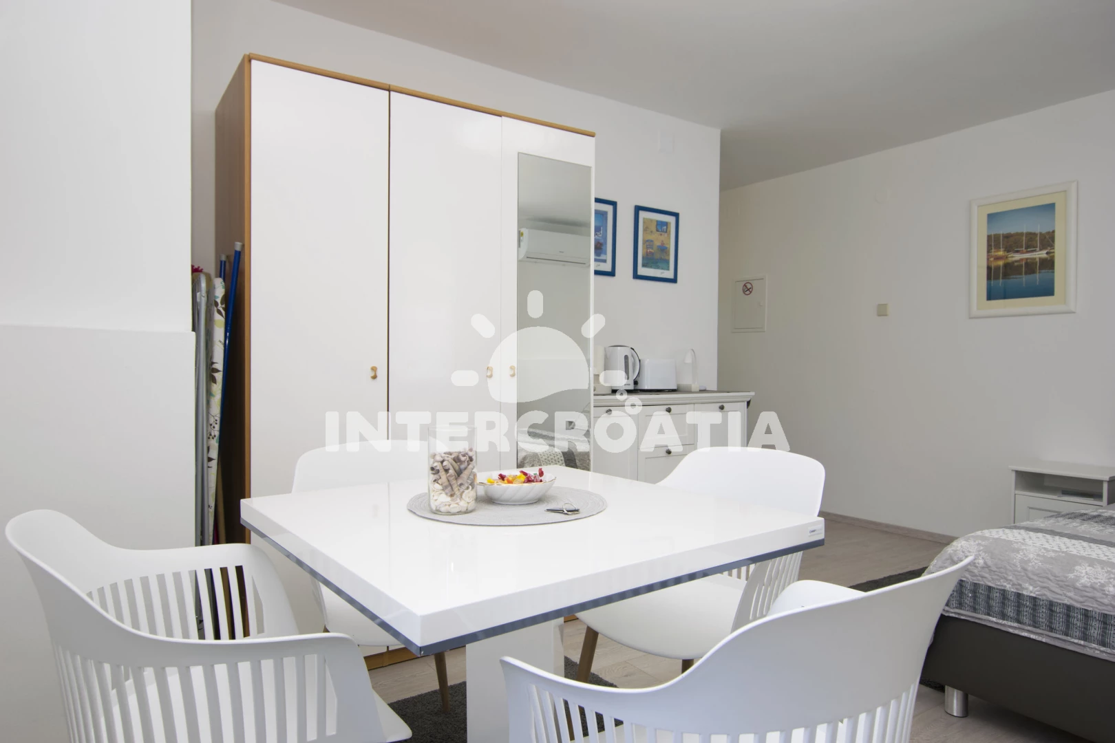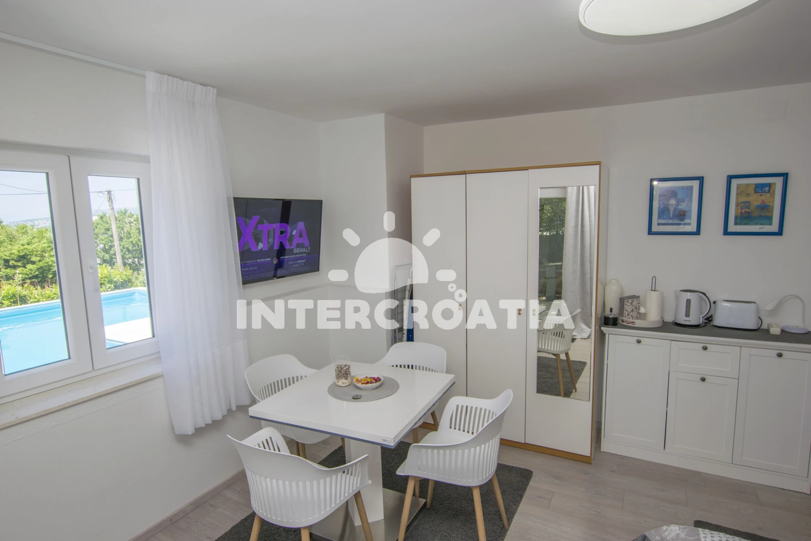 Vzdálenosti: Moře 300 m, pláž 350 m (oblázky), centrum 600 m, bar 600 m, restaurace 600 m, půjčovna motorových člunů 600 m, veřejná doprava 950 m, supermarket 8 km, lékárna 8 km, ambulance 8 km, čerpací stanice 8 km, banka 8 km, pošta 8 km, marina 8 km, letiště (Rijeka) 40 km,