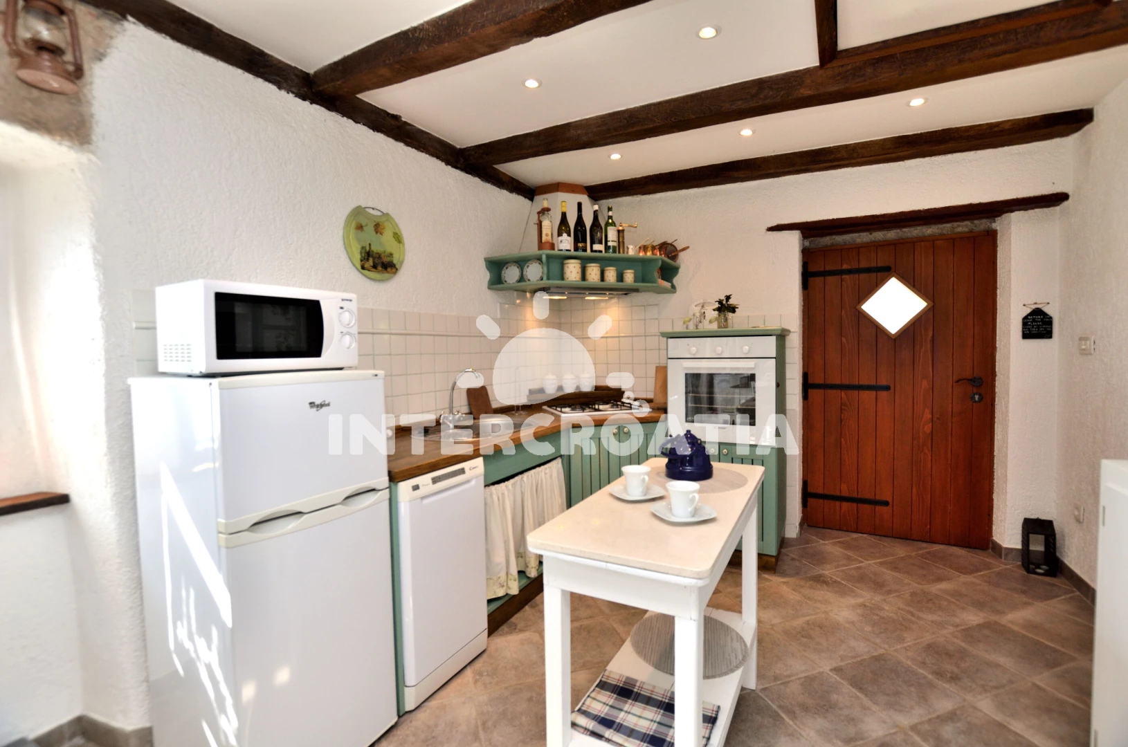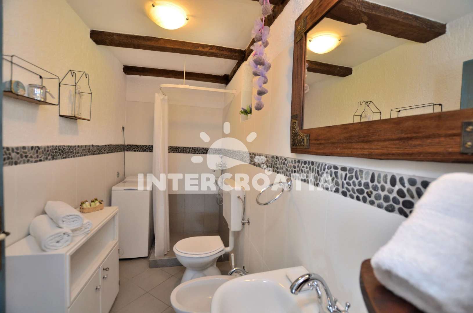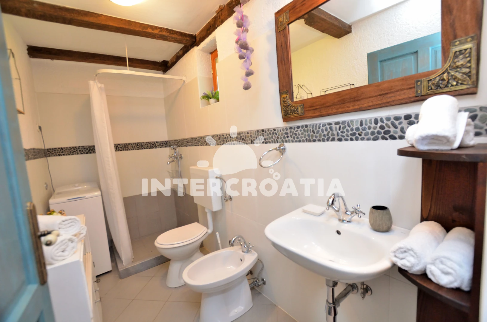 Vzdálenosti: Moře 4 km, pláž 8 km (oblázky), veřejná doprava 1,2 km, centrum 1,2 km, supermarket 1,2 km, muzeum 5 km, banka 5 km, směnárna 5 km, tenisové kurty 5 km, čerpací stanice 5 km, lékárna 5 km, ambulance 5 km, pošta 5 km, restaurace 5 km, bar 5 km, kotviště pro čluny 5 km, marina 10 km, potápění 13 km, diskotéka 13 km, trajekt (Rijeka) 35 km, letiště (Rijeka) 55 km, park Plitvice 80 km,