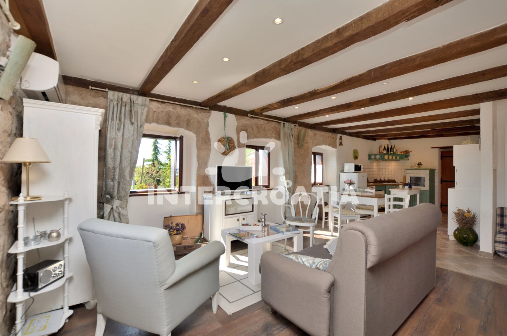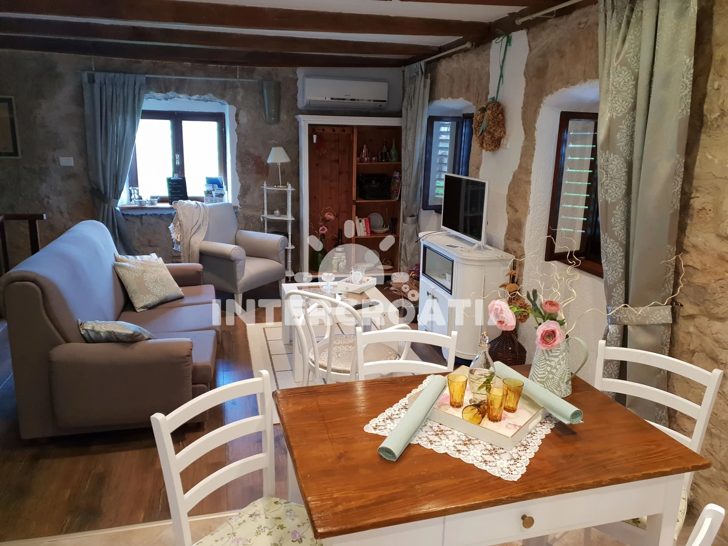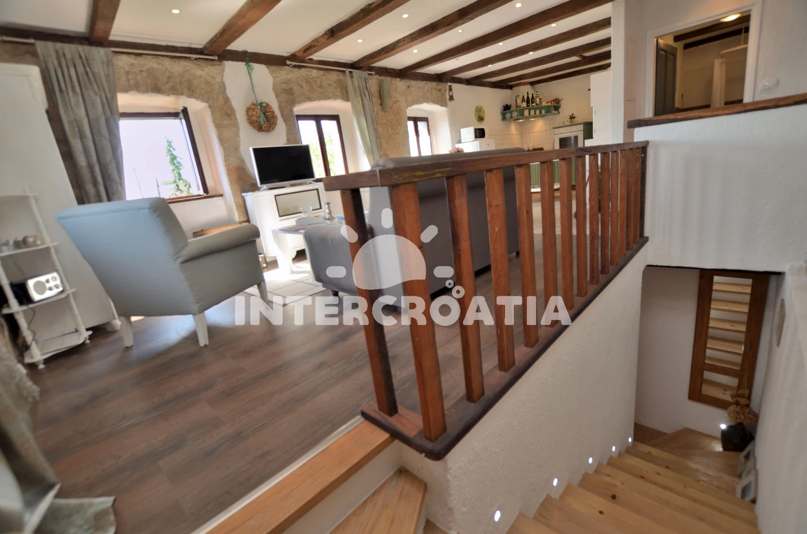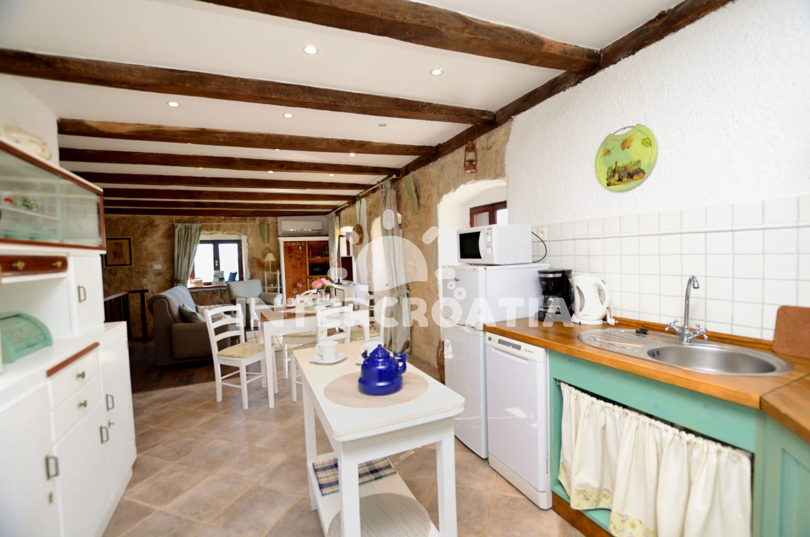 Vzdálenosti: Moře 4 km, pláž 8 km (oblázky), veřejná doprava 1,2 km, centrum 1,2 km, supermarket 1,2 km, muzeum 5 km, banka 5 km, směnárna 5 km, tenisové kurty 5 km, čerpací stanice 5 km, lékárna 5 km, ambulance 5 km, pošta 5 km, restaurace 5 km, bar 5 km, kotviště pro čluny 5 km, marina 10 km, potápění 13 km, diskotéka 13 km, trajekt (Rijeka) 35 km, letiště (Rijeka) 55 km, park Plitvice 80 km,