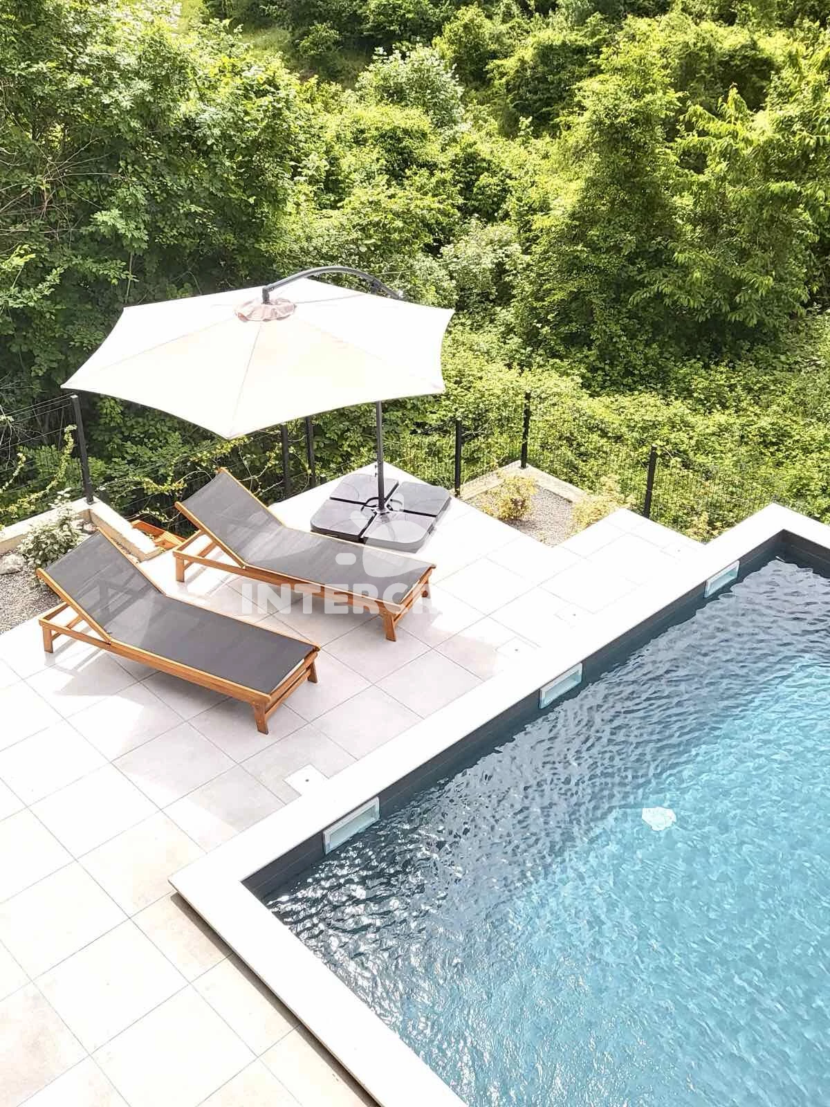Domek se nachází 9500 m od moře a pláže. Pláž je oblázková a betonové desky. Domek disponuje bazénem s lehátky pro ubytované hosty. K dispozici vířivka. U objektu je k dispozici společná zahrada s posezením a grilem. Parkování je před domem.
