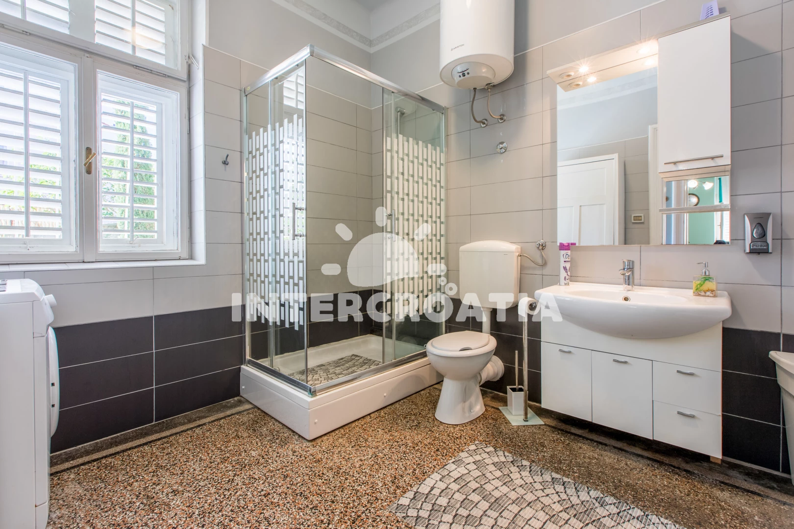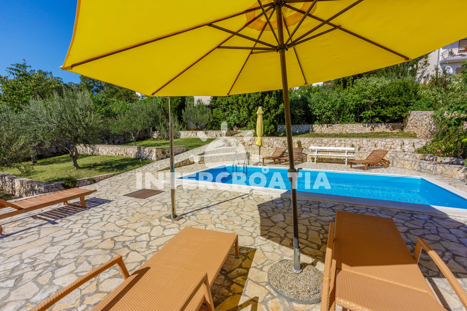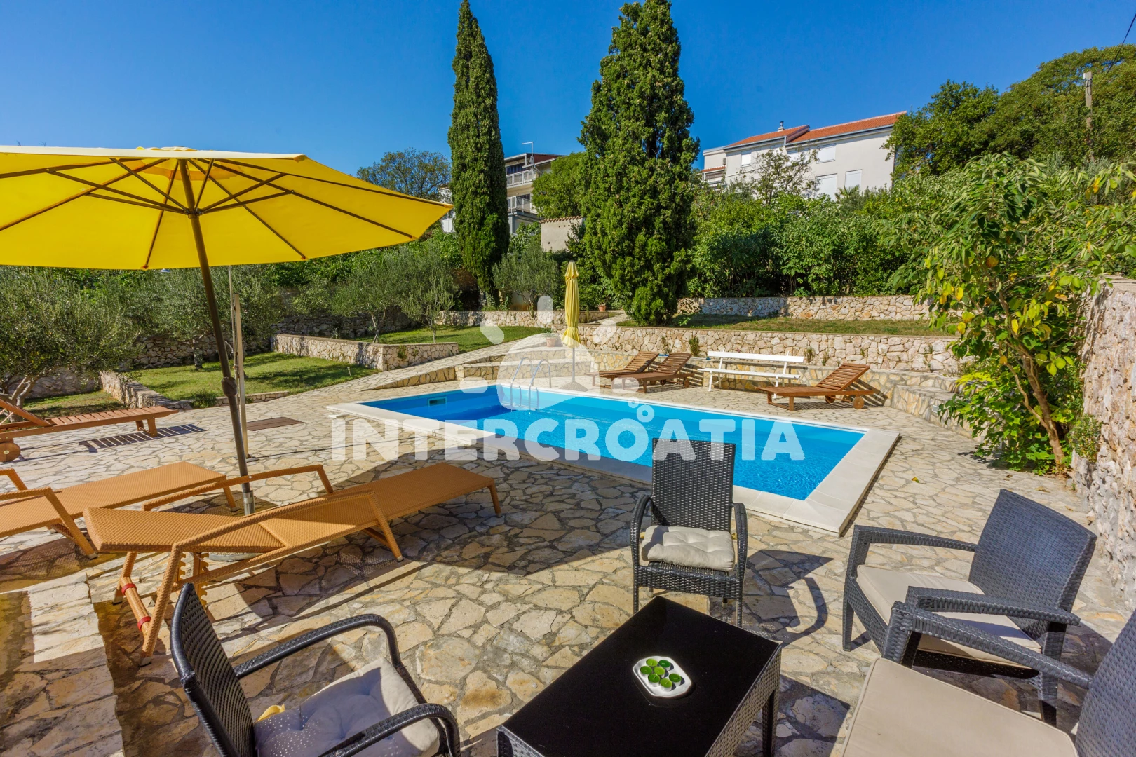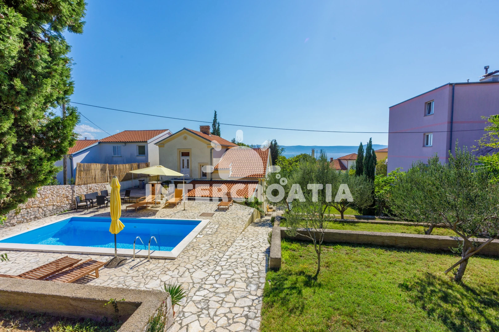 Vzdálenosti: Moře 100 m, pláž 100 m (skalnatá, oblázková a betonové desky), bar 50 m, restaurace 50 m, ambulance 100 m, směnárna 100 m, pošta 100 m, tenisové kurty 100 m, centrum 150 m, potápění 200 m, čerpací stanice 200 m, veřejná doprava 250 m, supermarket 250 m, lékárna 250 m, banka 300 m, půjčovna kol 400 m, marina 400 m, kotviště pro čluny 400 m, muzeum 12 km, letiště (Rijeka) 35 km,