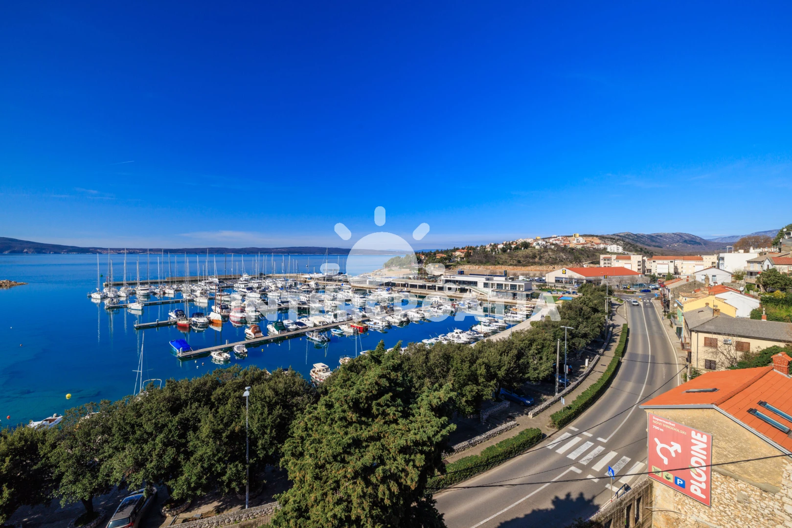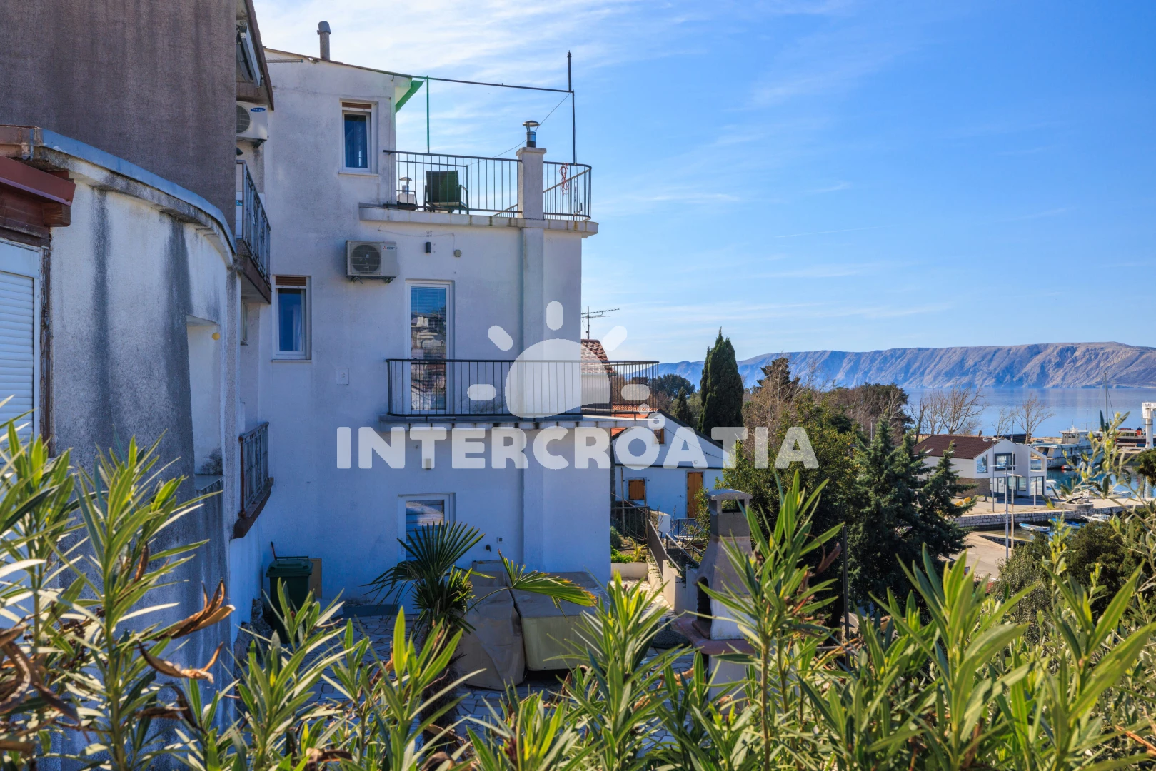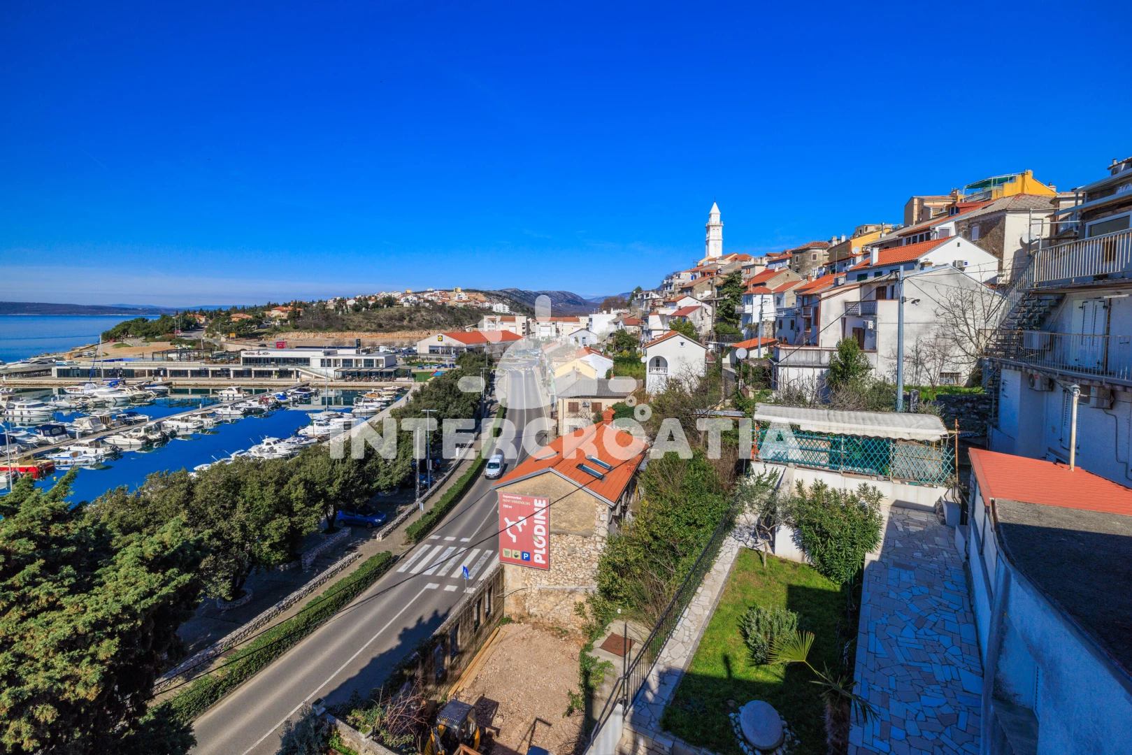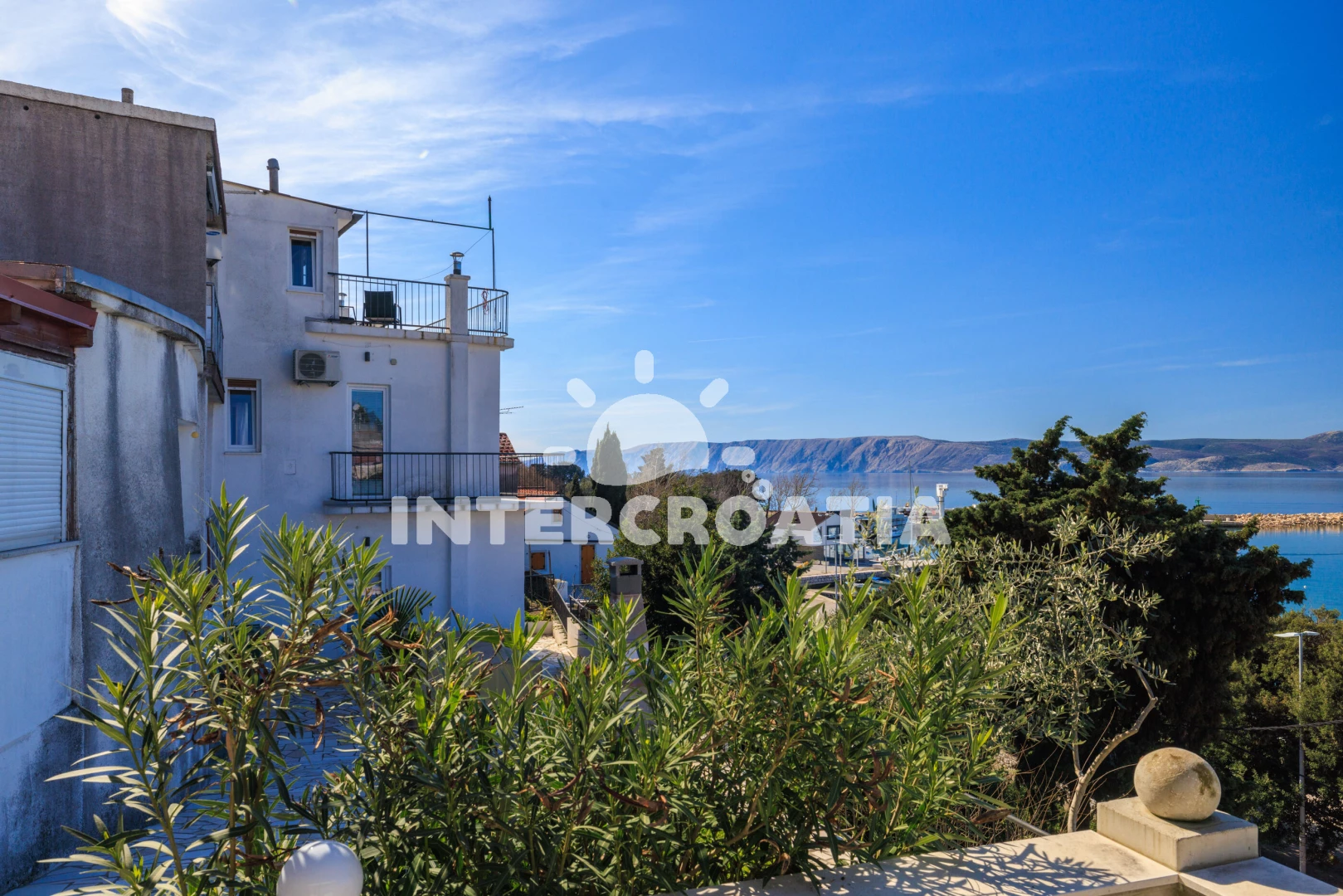 Vzdálenosti: Moře 50 m, pláž 300 m (betonové desky, skalnatá a větší kamení), marina 100 m, čerpací stanice 150 m, půjčovna motorových člunů 150 m, restaurace 250 m, centrum 450 m, supermarket 450 m, ambulance 450 m, směnárna 450 m, banka 450 m, lékárna 500 m, pošta 500 m, bar 500 m, tenisové kurty 750 m, letiště (Rijeka) 35 km,