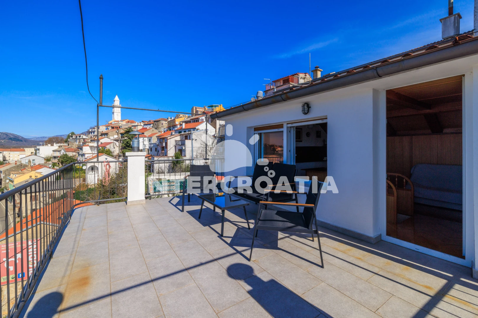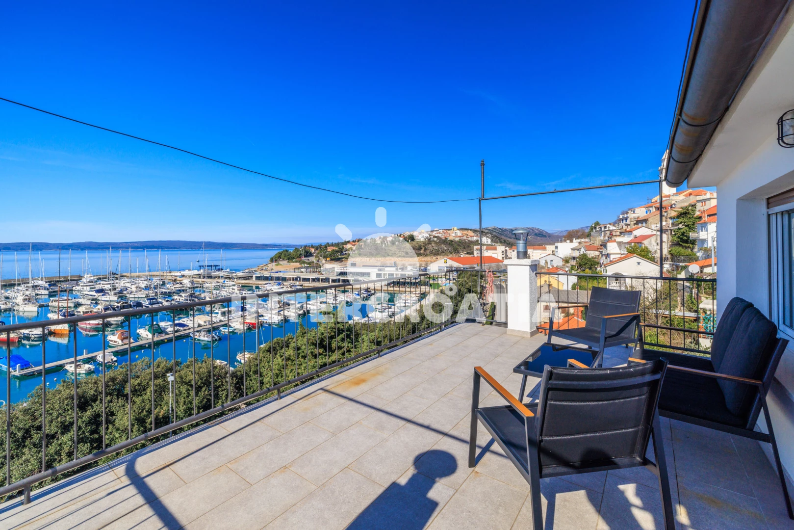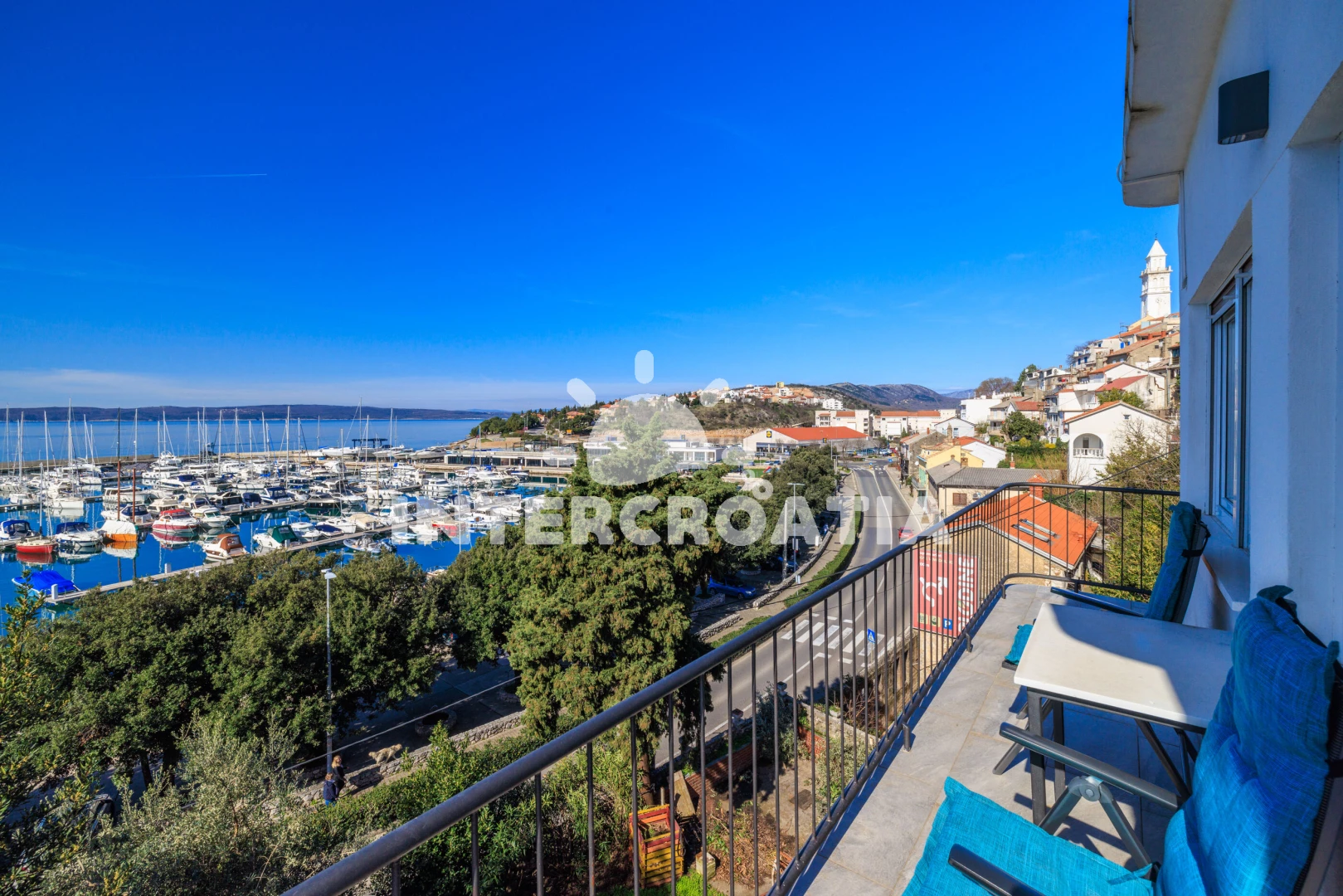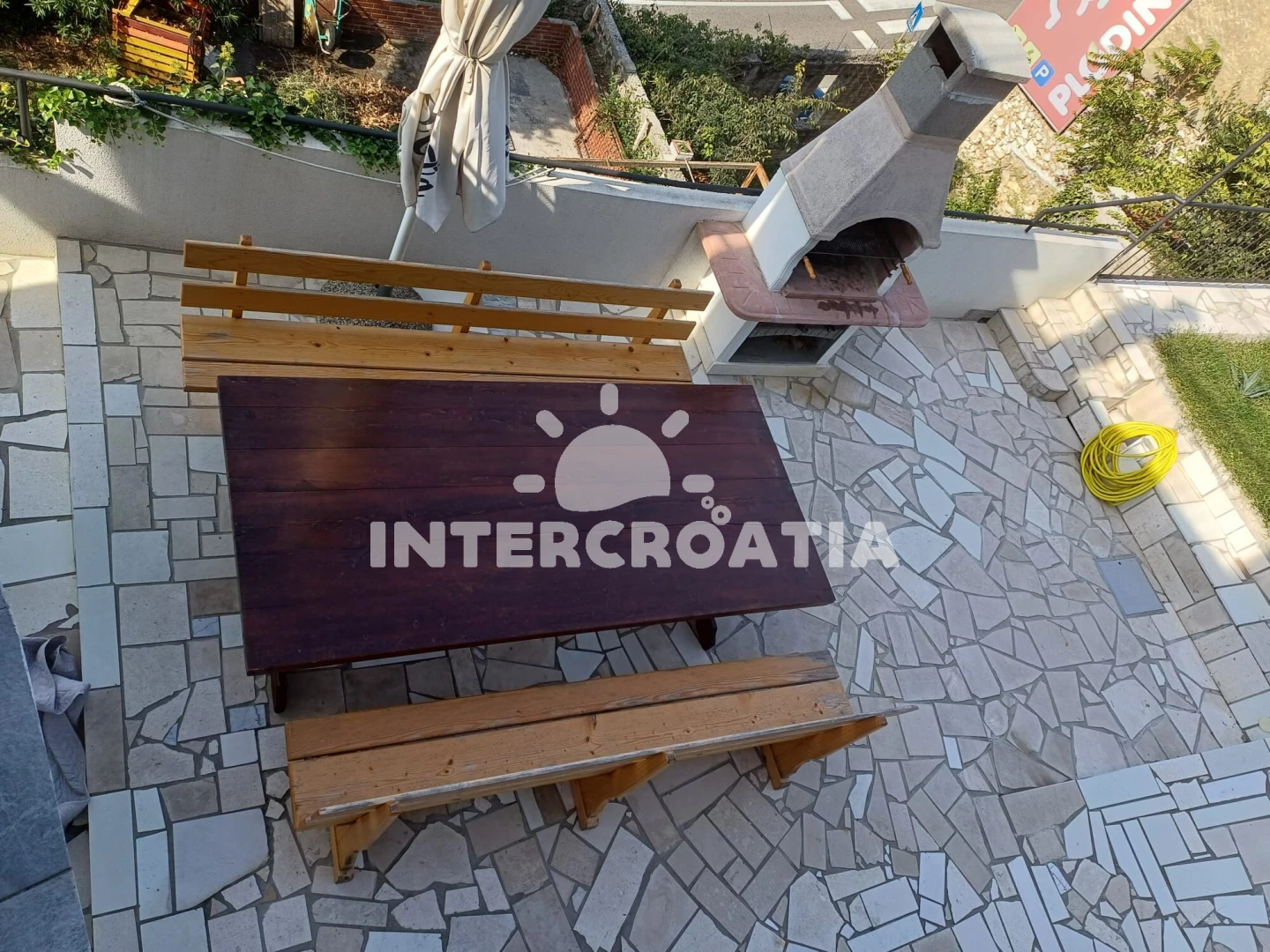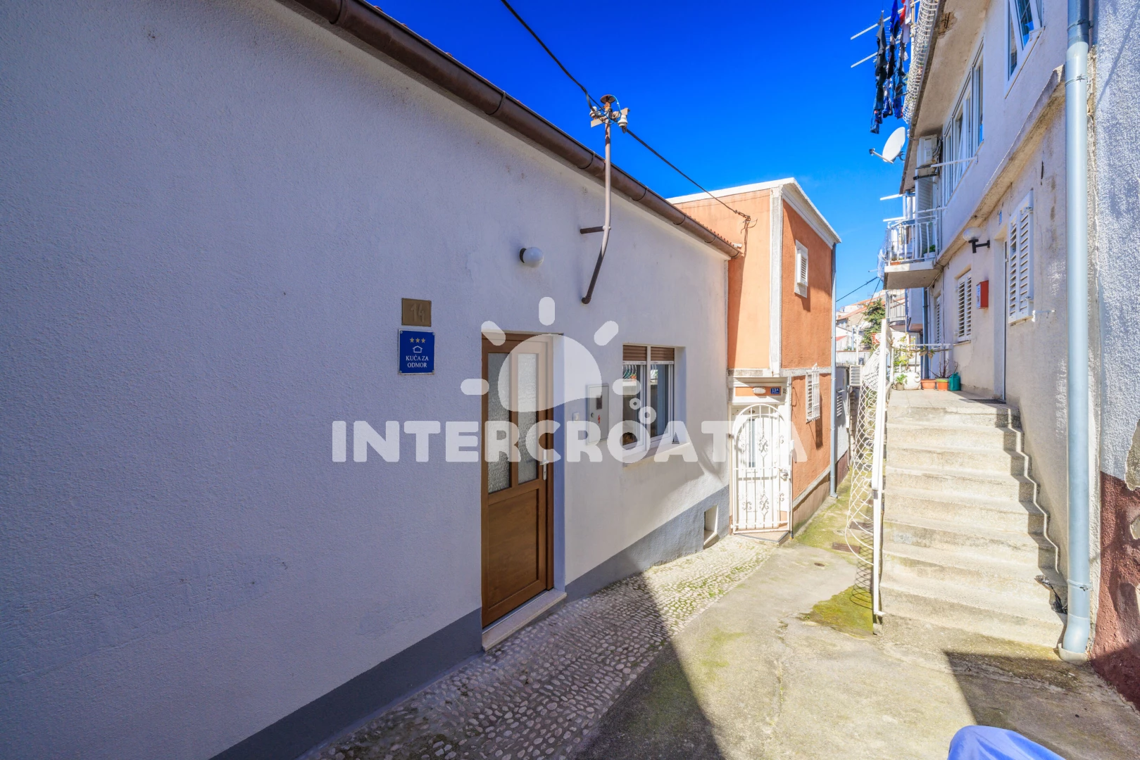 Vzdálenosti: Moře 50 m, pláž 300 m (betonové desky, skalnatá a větší kamení), marina 100 m, čerpací stanice 150 m, půjčovna motorových člunů 150 m, restaurace 250 m, centrum 450 m, supermarket 450 m, ambulance 450 m, směnárna 450 m, banka 450 m, lékárna 500 m, pošta 500 m, bar 500 m, tenisové kurty 750 m, letiště (Rijeka) 35 km,