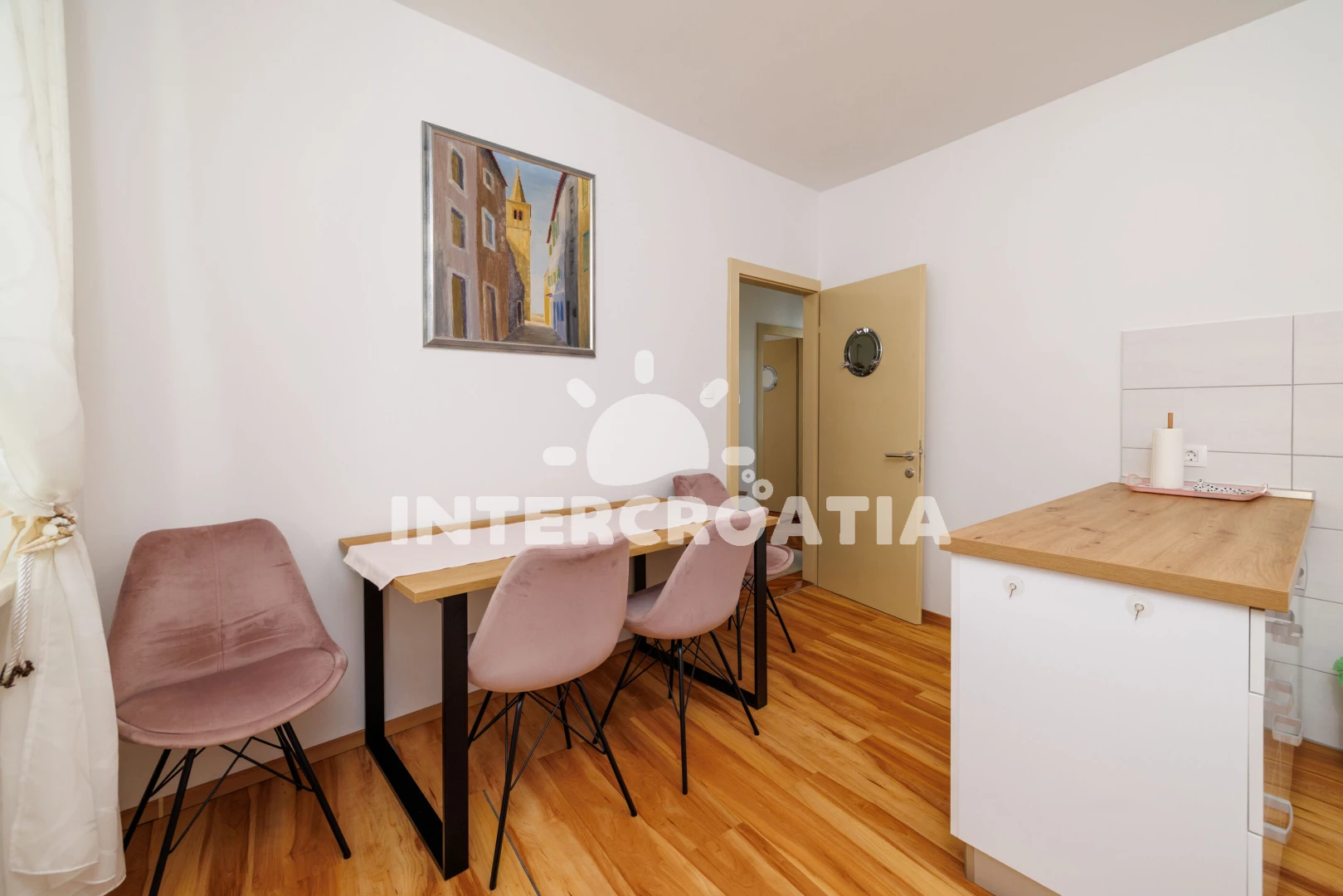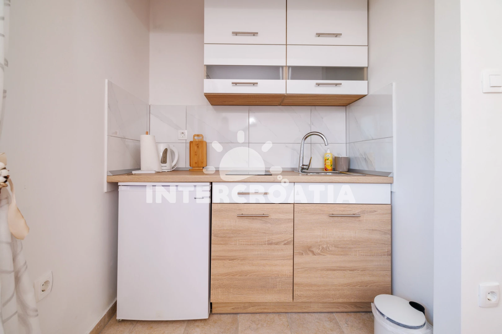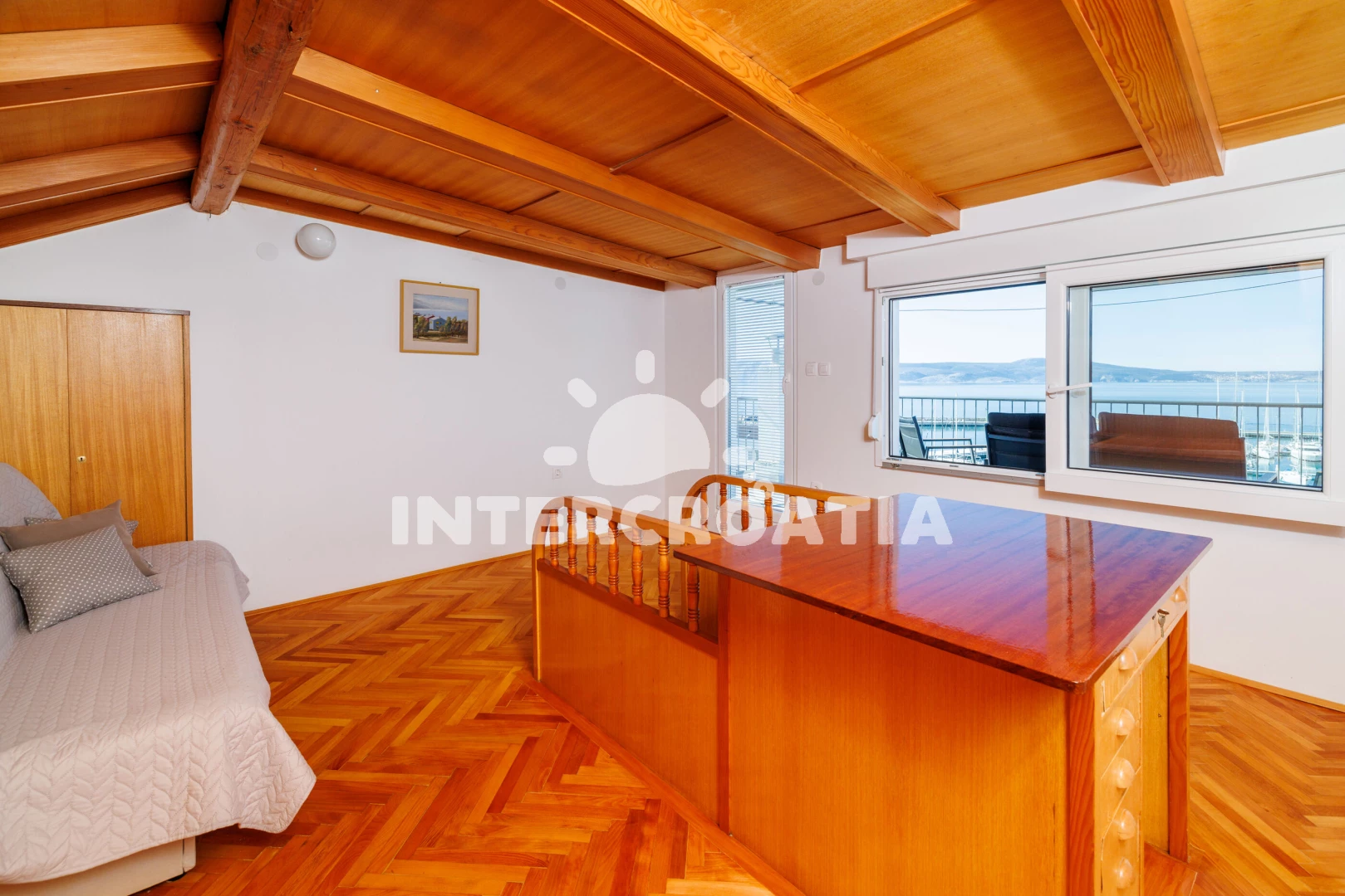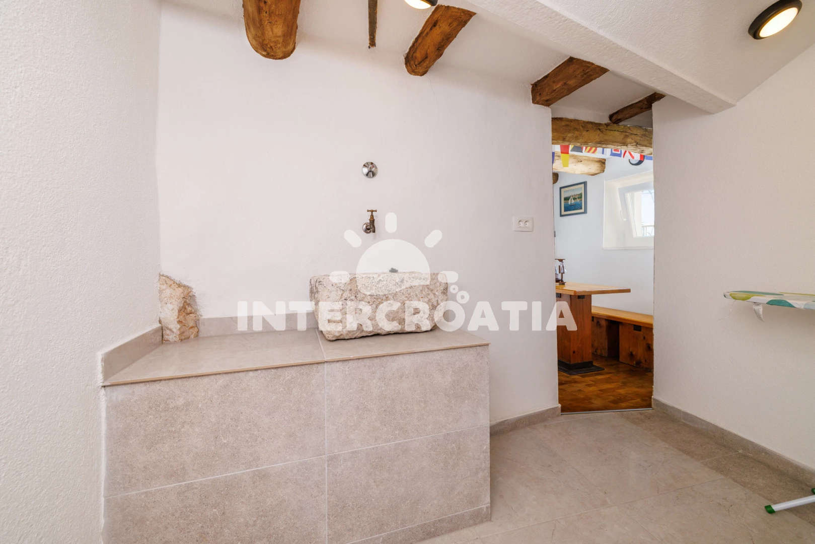 Vzdálenosti: Moře 50 m, pláž 300 m (betonové desky, skalnatá a větší kamení), marina 100 m, čerpací stanice 150 m, půjčovna motorových člunů 150 m, restaurace 250 m, centrum 450 m, supermarket 450 m, ambulance 450 m, směnárna 450 m, banka 450 m, lékárna 500 m, pošta 500 m, bar 500 m, tenisové kurty 750 m, letiště (Rijeka) 35 km,