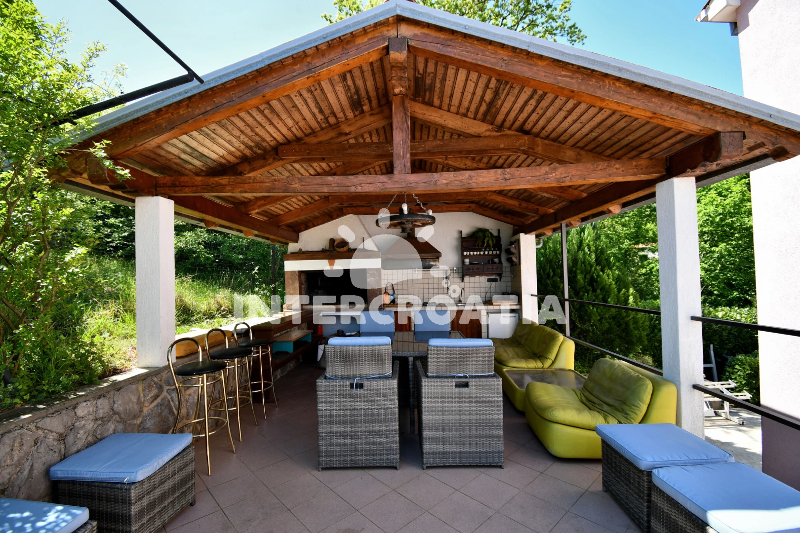 Vzdálenosti: Moře 2,2 km, pláž 8,4 km (oblázky), supermarket 200 m, veřejná doprava 200 m, bar 200 m, restaurace 1 km, marina 8,4 km, centrum 10 km, pošta 10 km, banka 10 km, směnárna 10 km, čerpací stanice 10 km, ambulance 10 km, lékárna 10 km, trajekt (Rijeka) 22 km, letiště (Rijeka) 45 km, park Plitvice 78 km,