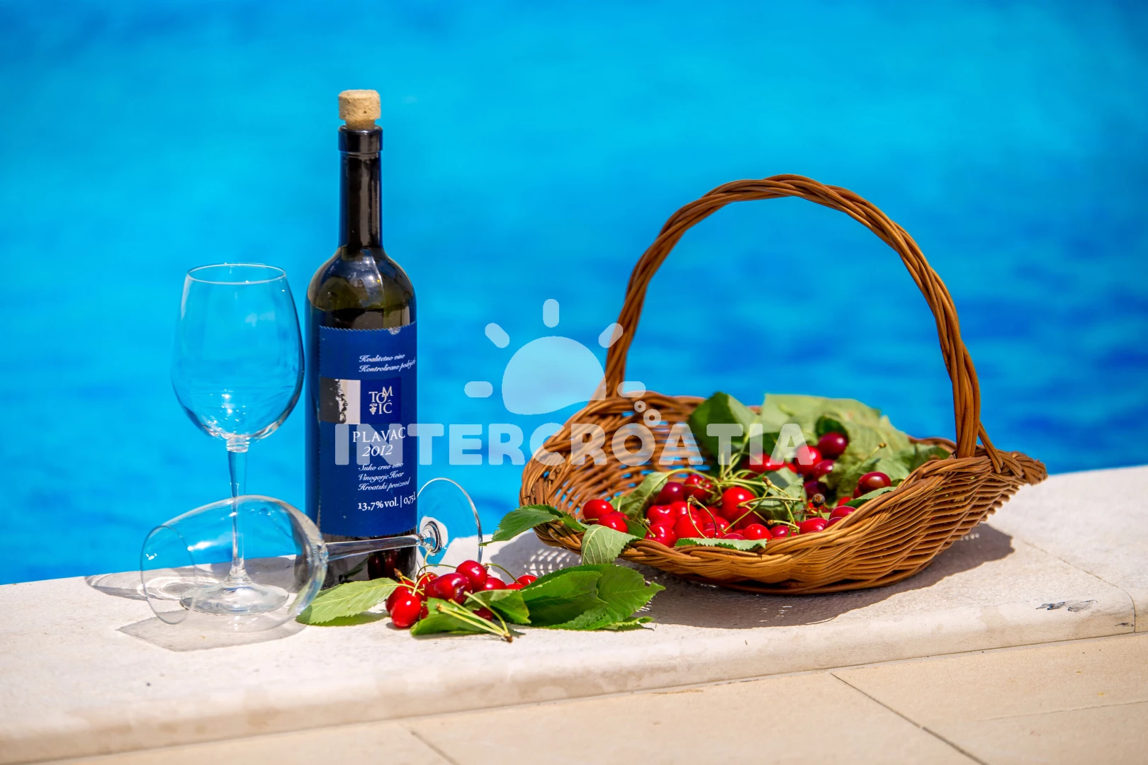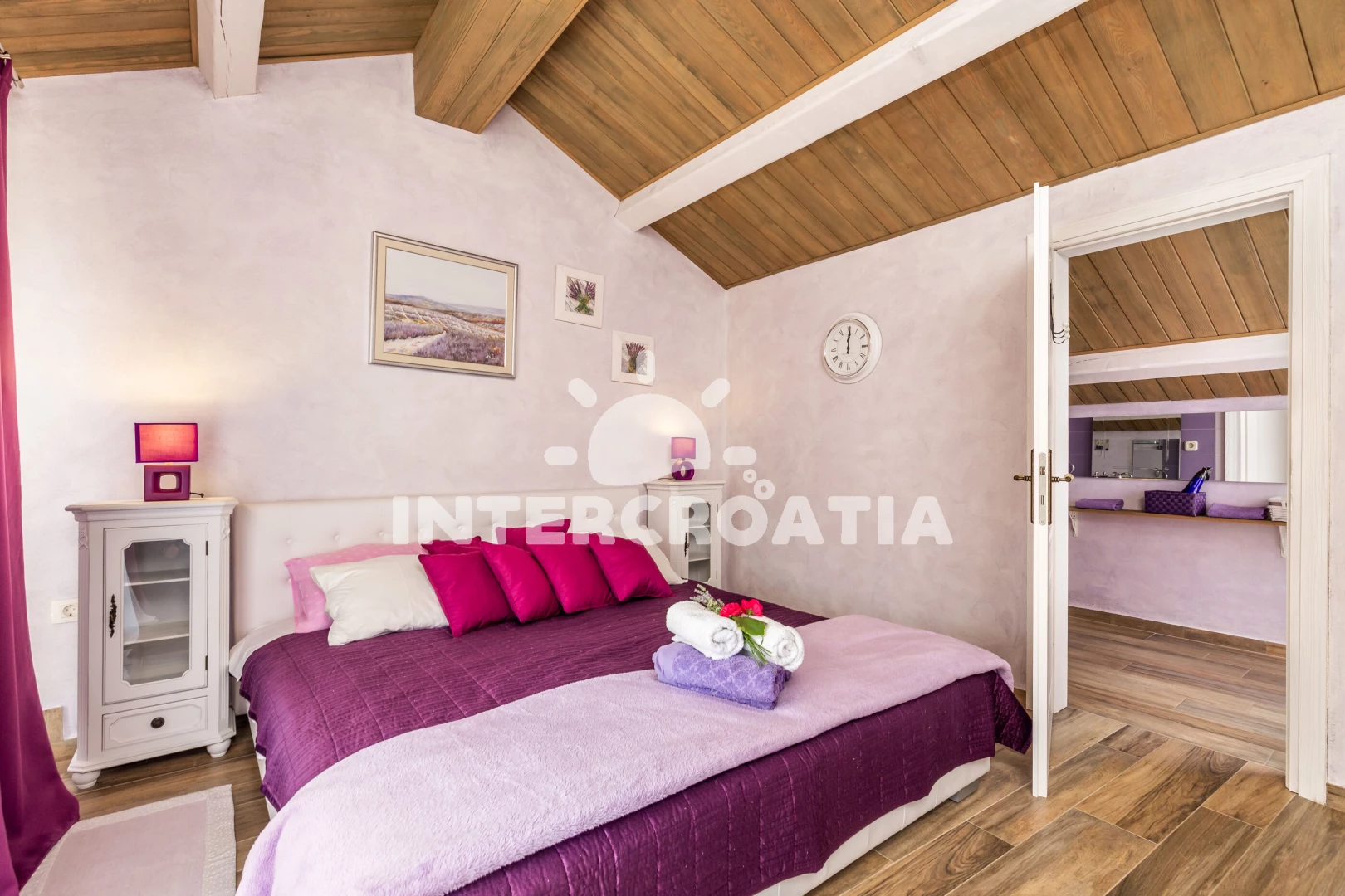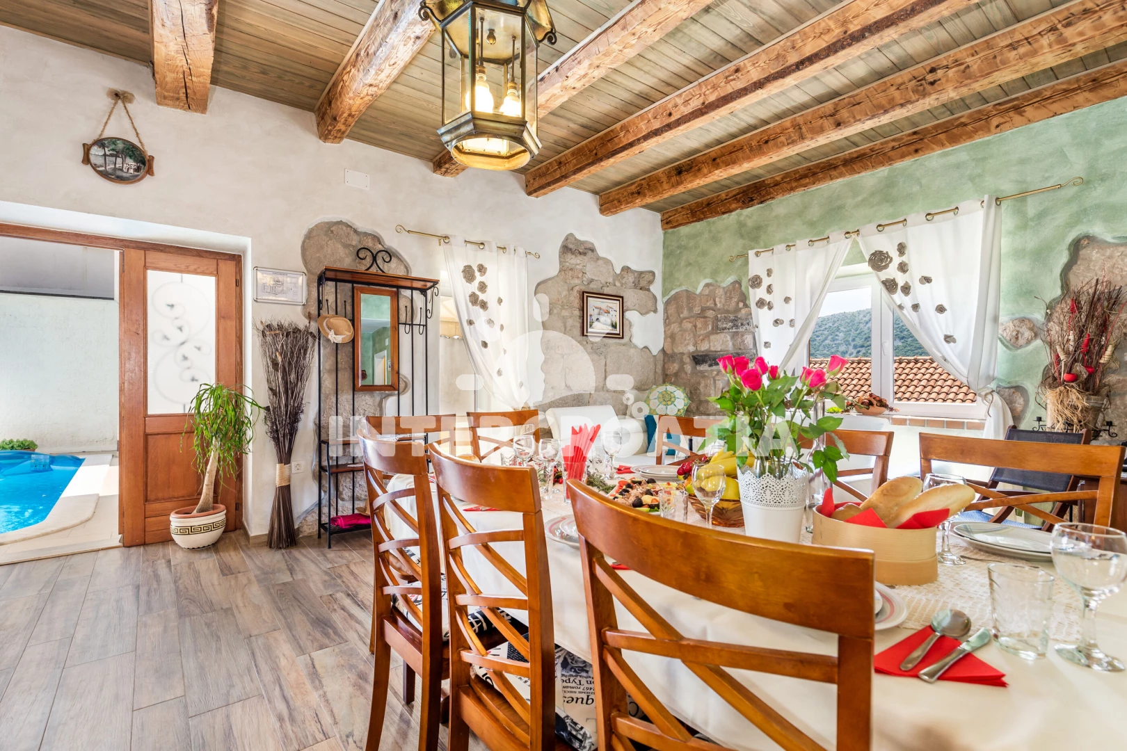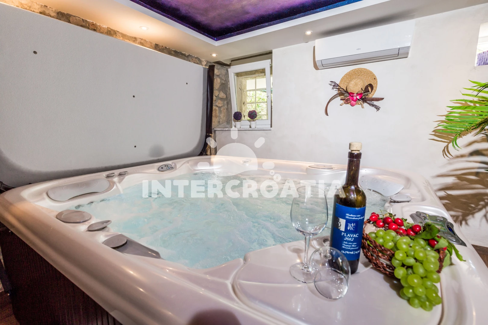 Domek se nachází 5000 m od moře a pláže. Pláž je oblázková a větší kamení. Domek disponuje bazénem s lehátky pro ubytované hosty. K dispozici vířivka. U objektu je k dispozici společná zahrada s posezením a grilem. Parkování je před domem.