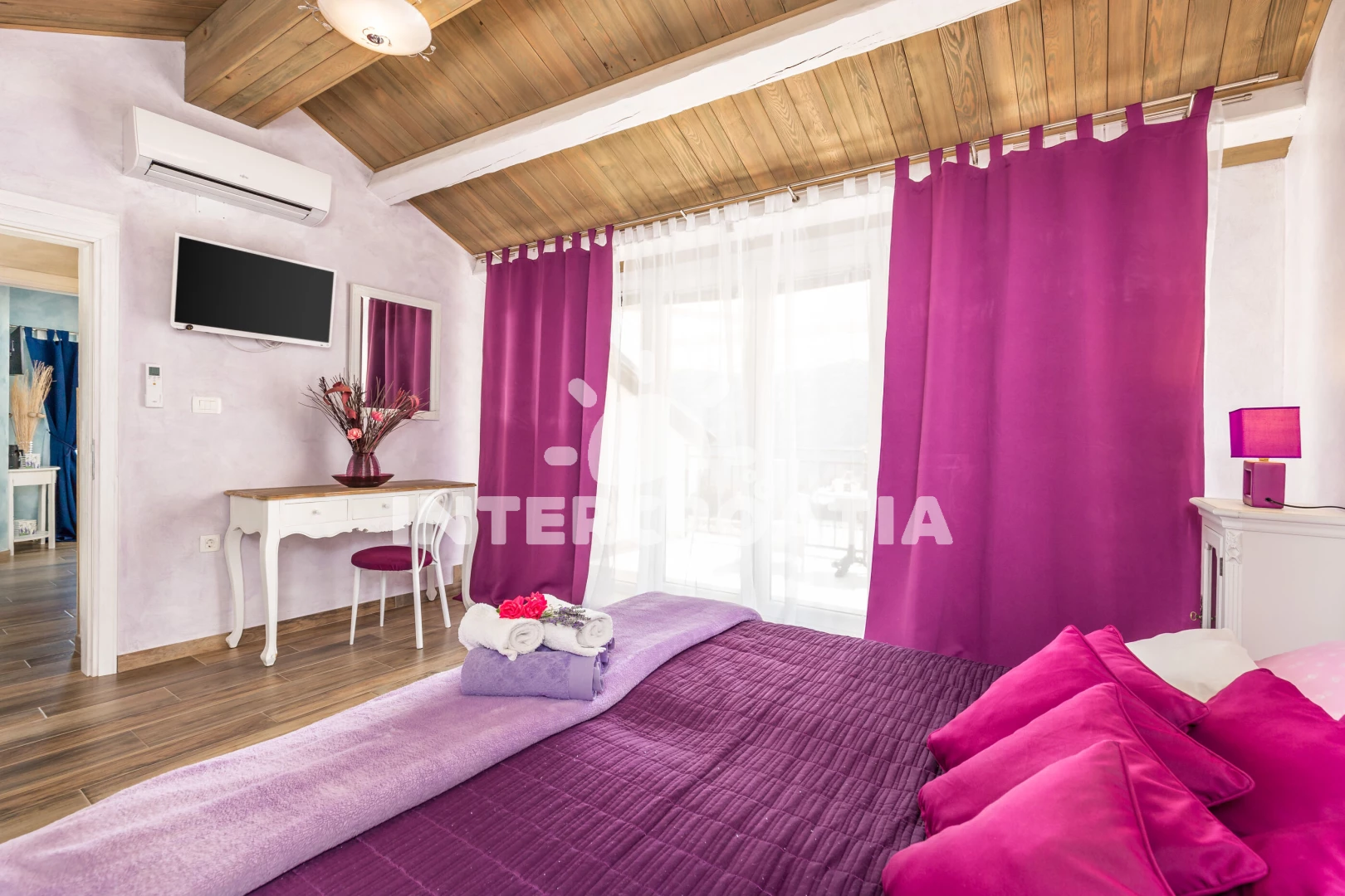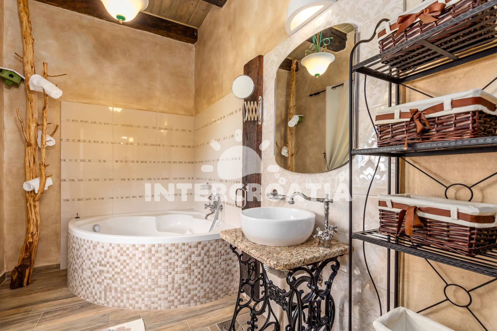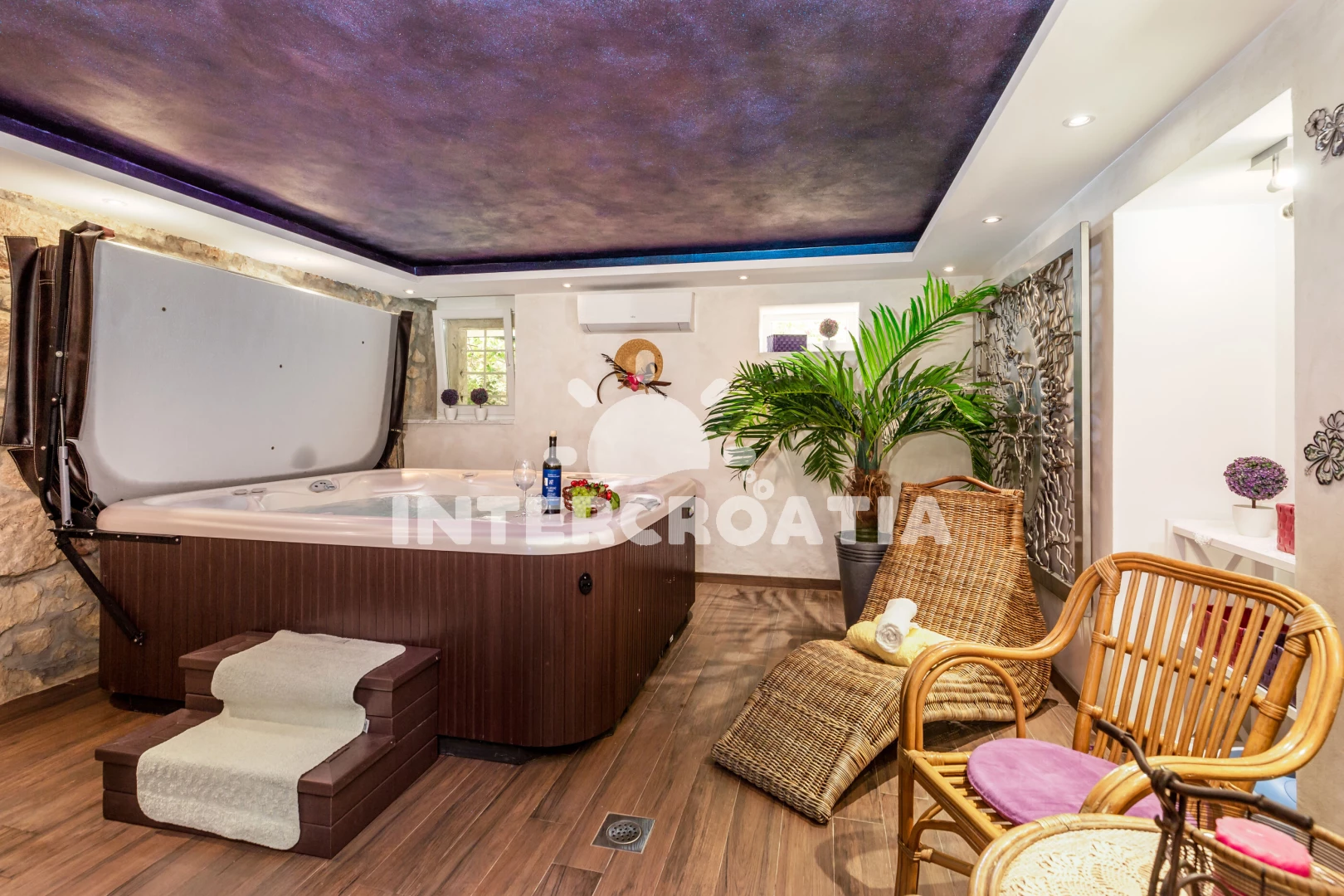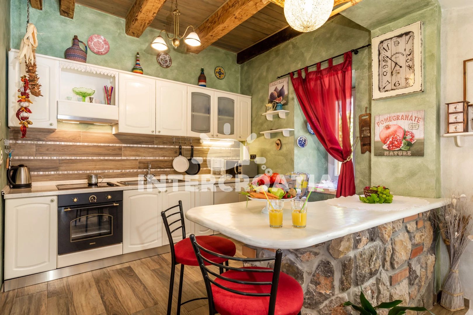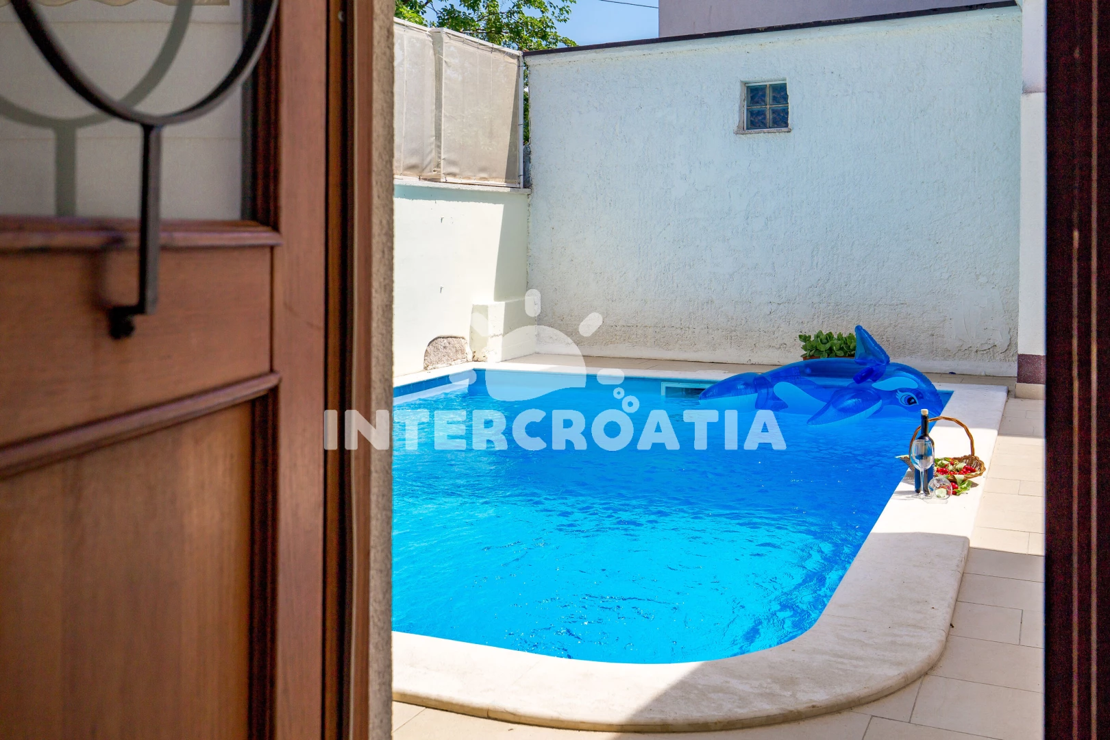Domek se nachází 5000 m od moře a pláže. Pláž je oblázková a větší kamení. Domek disponuje bazénem s lehátky pro ubytované hosty. K dispozici vířivka. U objektu je k dispozici společná zahrada s posezením a grilem. Parkování je před domem.