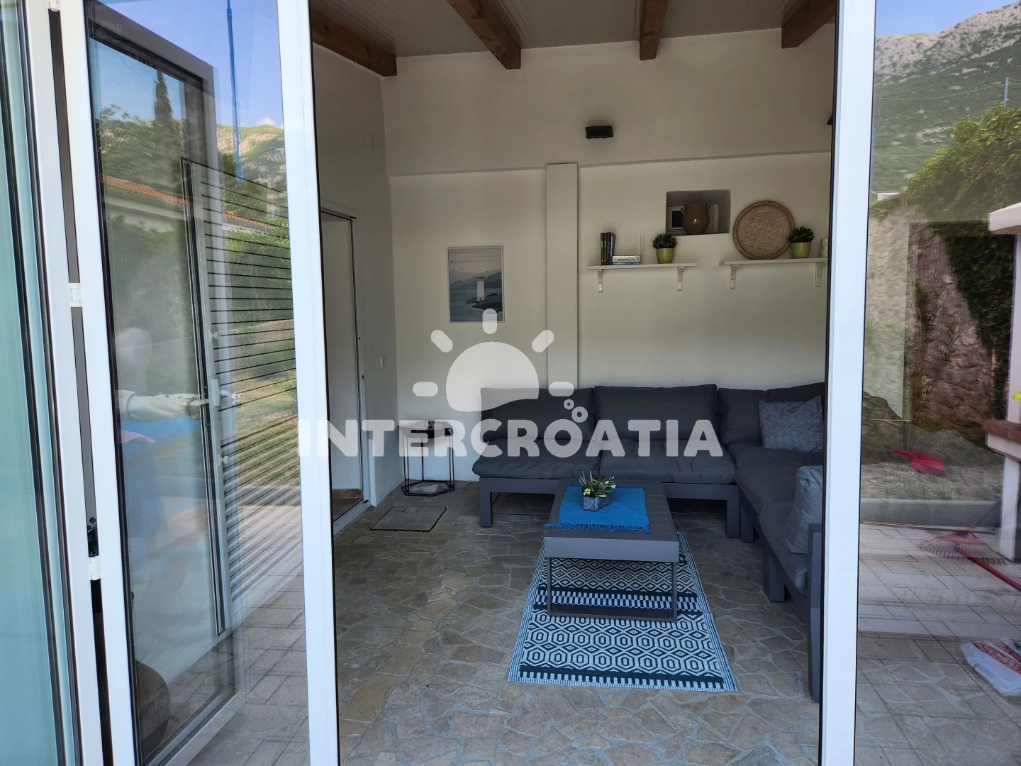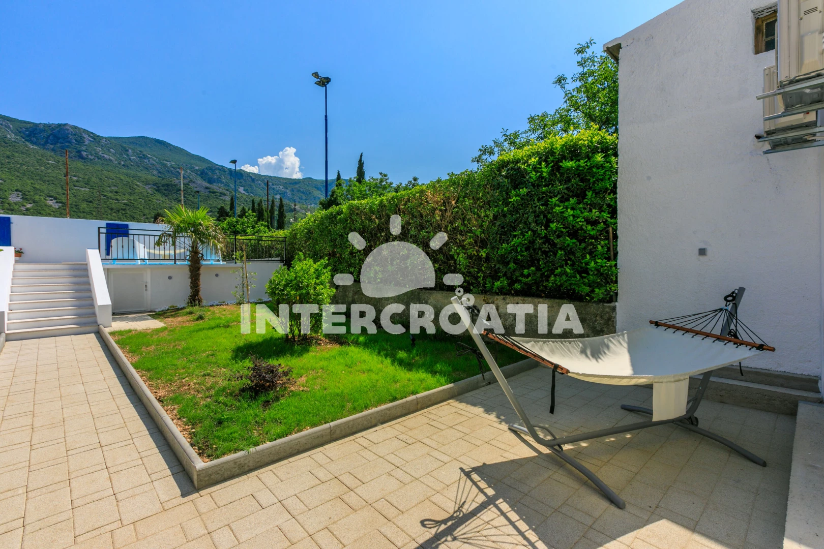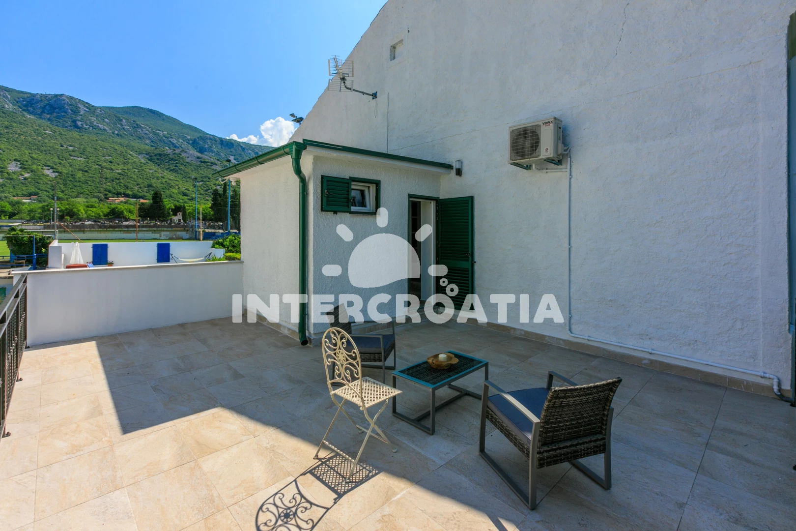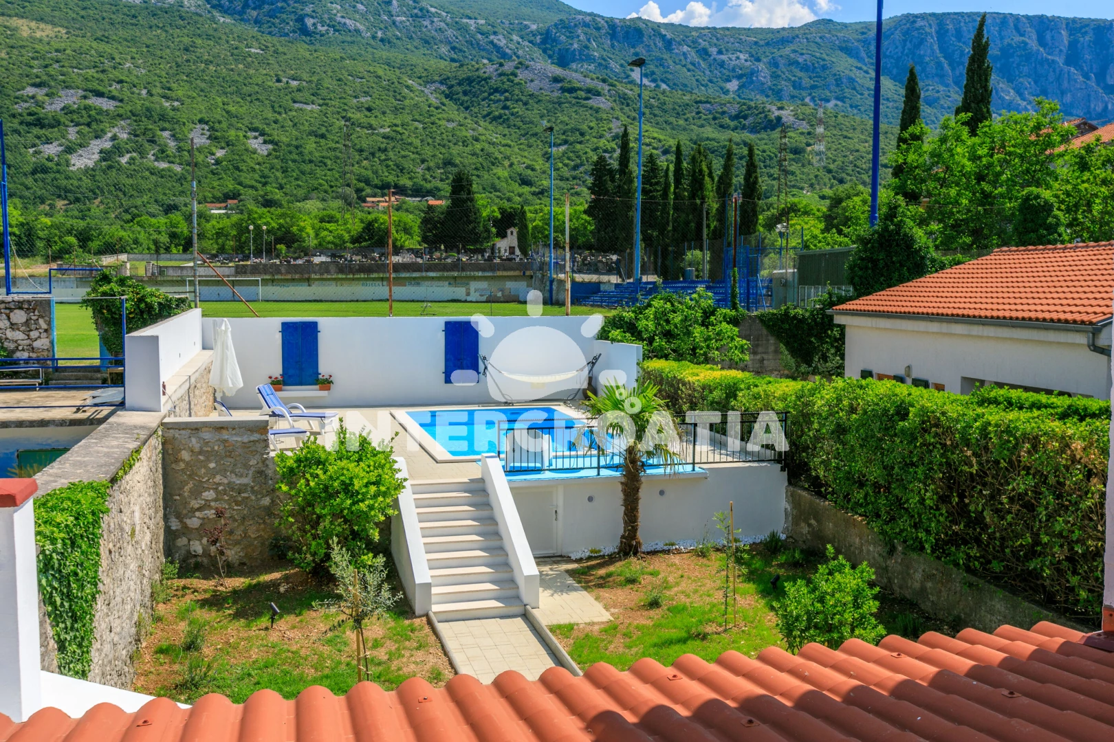 Domek se nachází 6200 m od moře a pláže. Pláž je oblázková a betonové desky. Domek disponuje bazénem s lehátky pro ubytované hosty. U objektu je k dispozici společná zahrada s posezením a grilem. Parkování je před domem.
