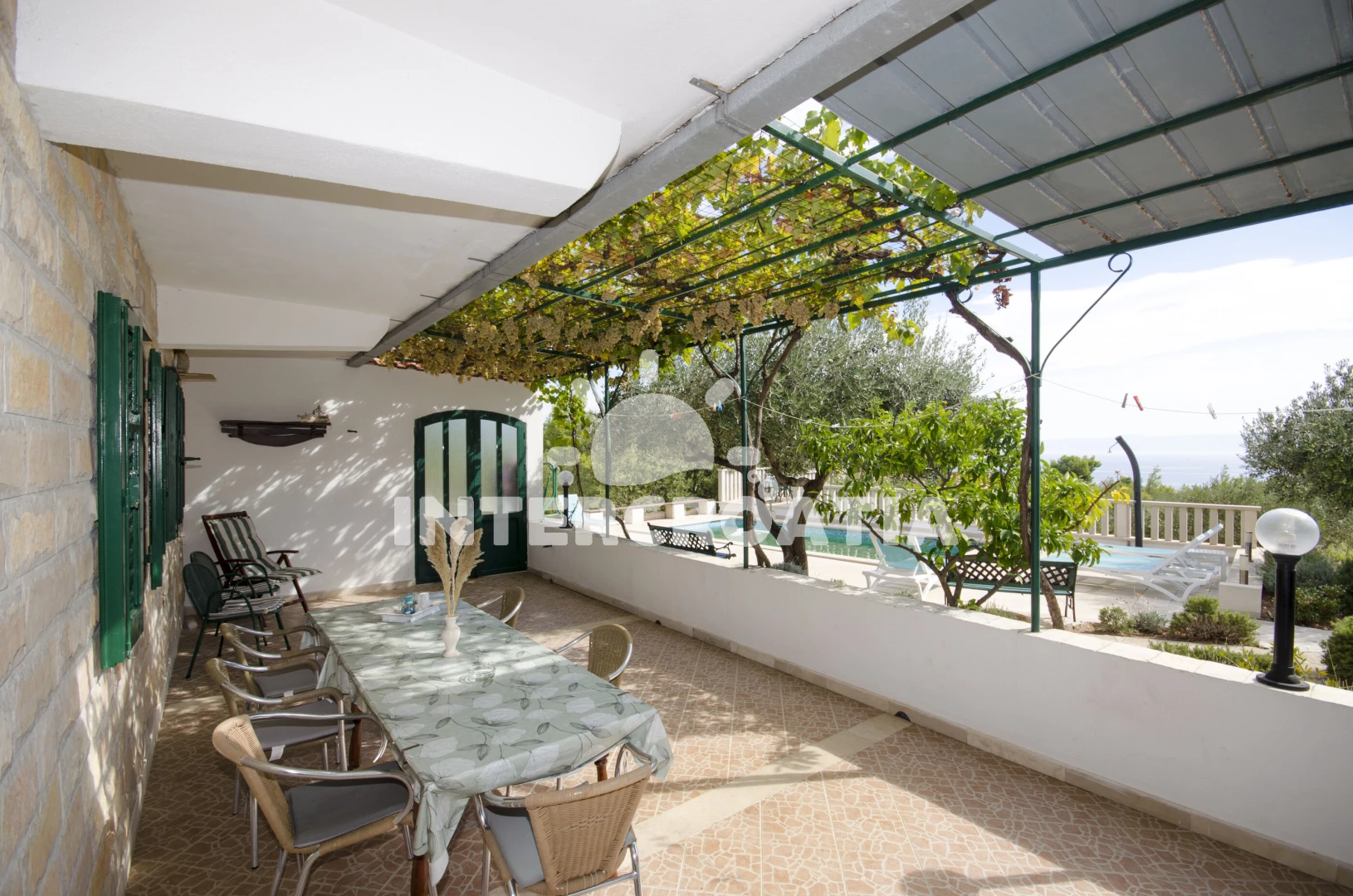 Domek se nachází 300 m od moře a pláže. Pláž je skalnatá a oblázková. Domek disponuje bazénem s lehátky pro ubytované hosty. U objektu je k dispozici společná zahrada s posezením a grilem. Parkování je před domem.