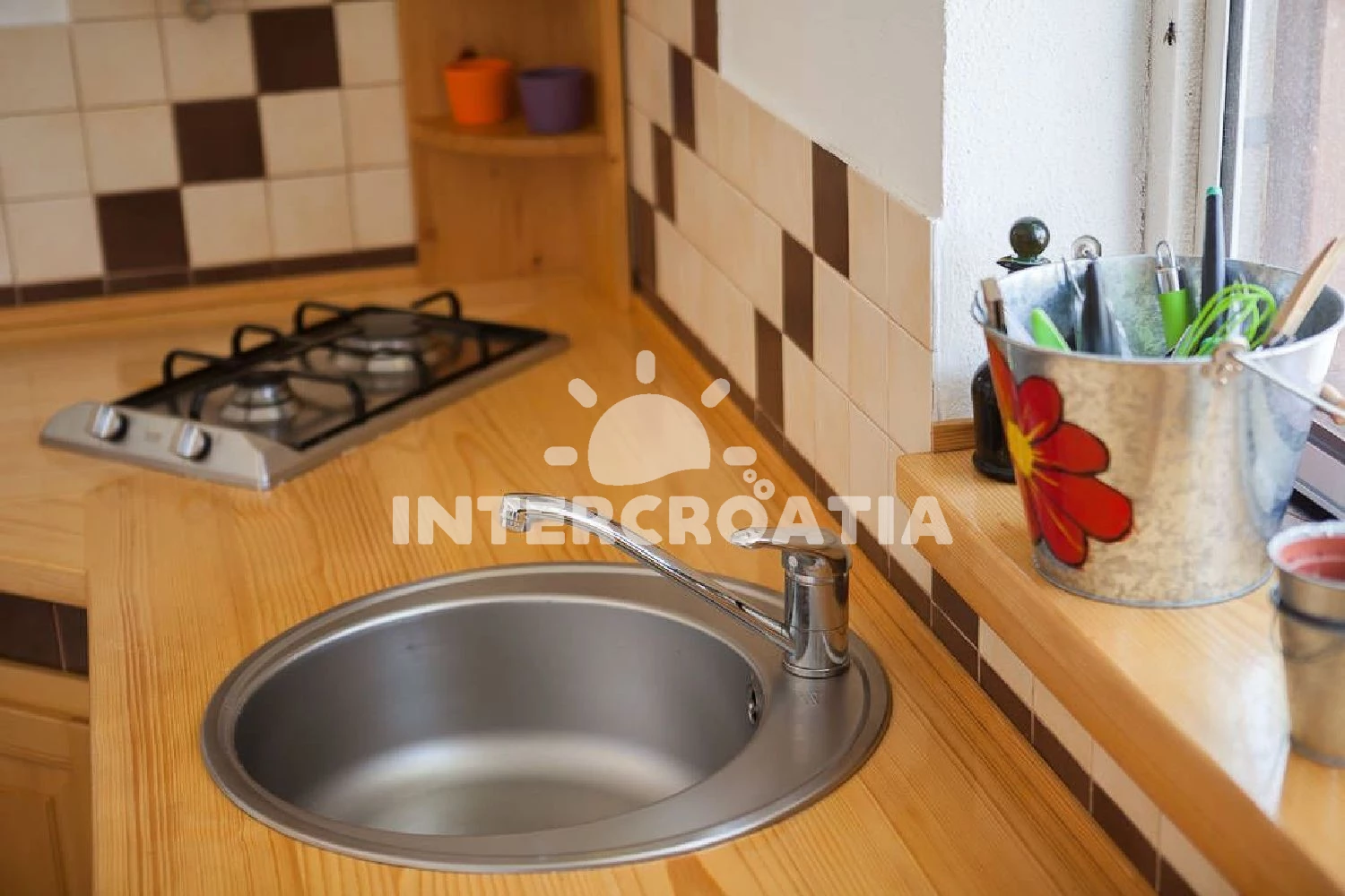 Domek se nachází 30 m od moře a pláže. Pláž je skalnatá, oblázková a betonové desky. U objektu je k dispozici společná zahrada s posezením a grilem. Parkování je 150m - 300 m od domu.