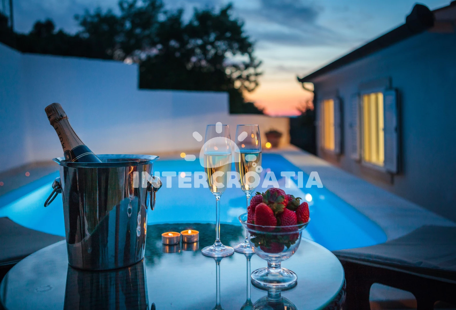Domek se nachází 7000 m od moře a pláže. Pláž je oblázková. Domek disponuje bazénem s lehátky pro ubytované hosty. U objektu je k dispozici společná zahrada s posezením a grilem.