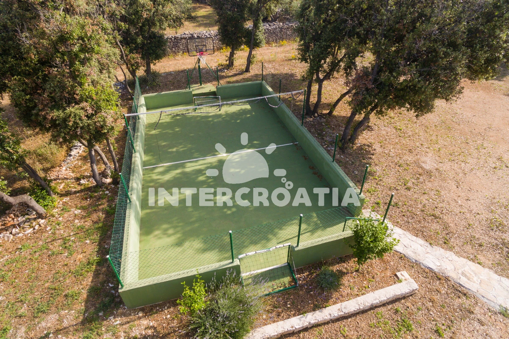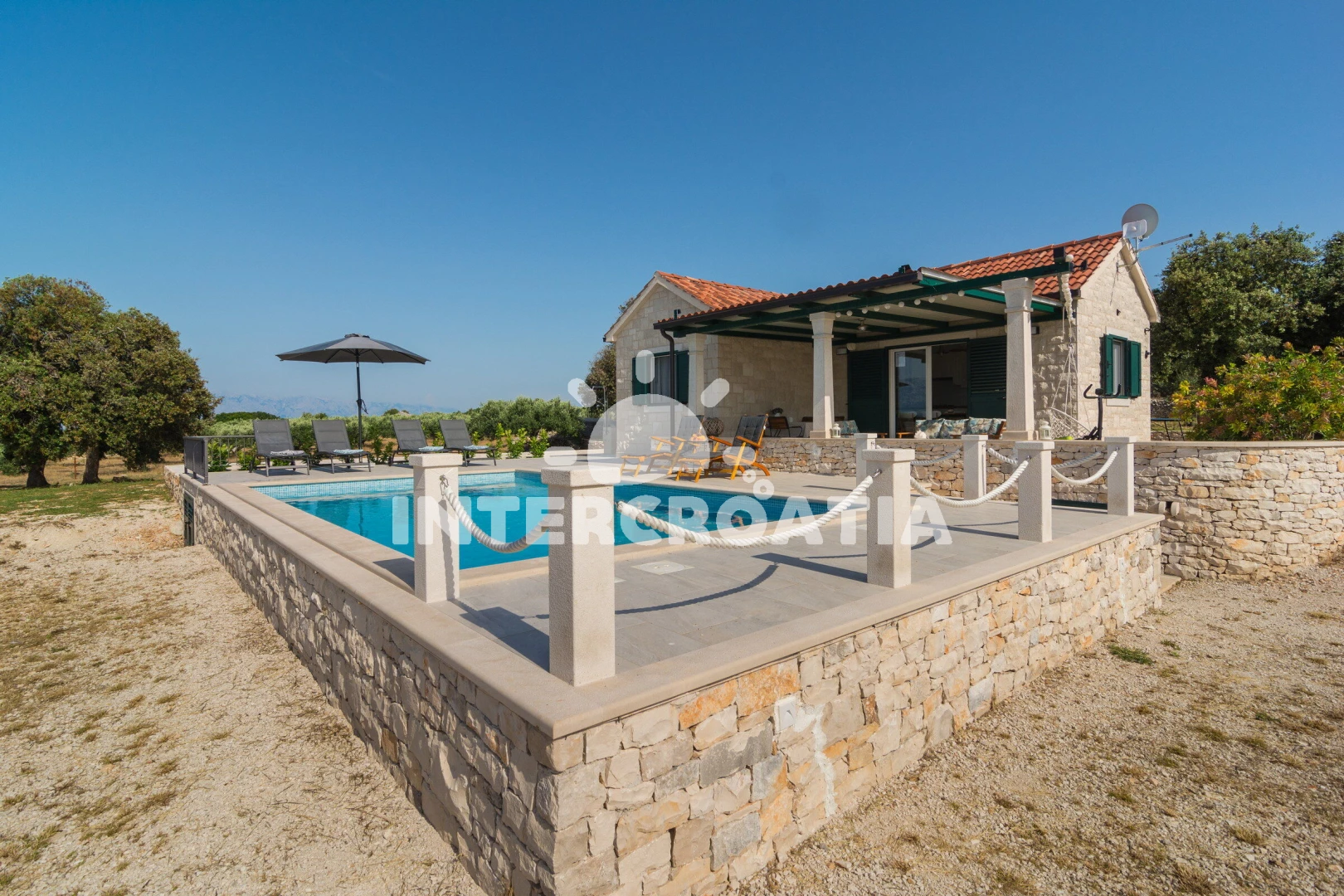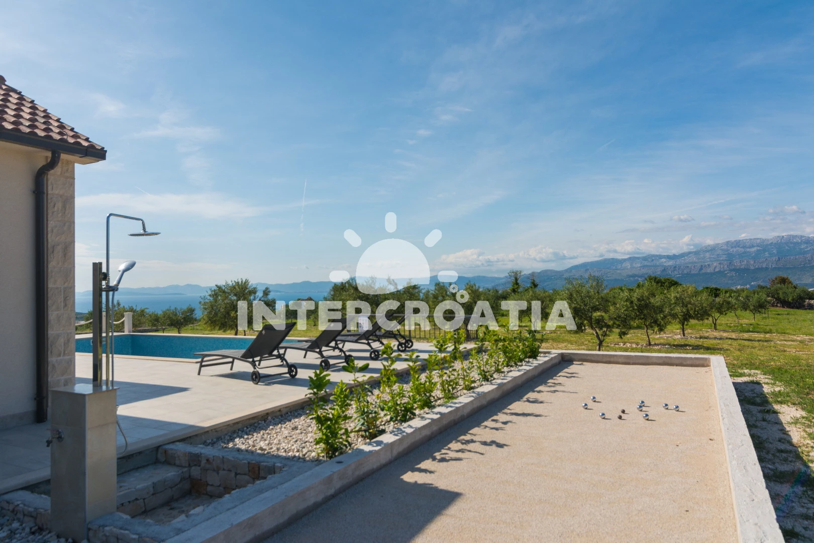 Vzdálenosti: Moře 1,2 km, pláž 1,2 km (oblázková a betonové desky), supermarket 1 km, bar 1,1 km, tenisové kurty 1,2 km, centrum 1,5 km, veřejná doprava 1,5 km, půjčovna kol 2 km, restaurace 2 km, pošta 2,2 km, směnárna 2,2 km, lékárna 2,2 km, banka 11 km, ambulance 11 km, diskotéka 11 km, potápění 11 km, čerpací stanice 11 km, trajekt (Supetar) 11 km, letiště (Bol (otok Brač)) 30 km,