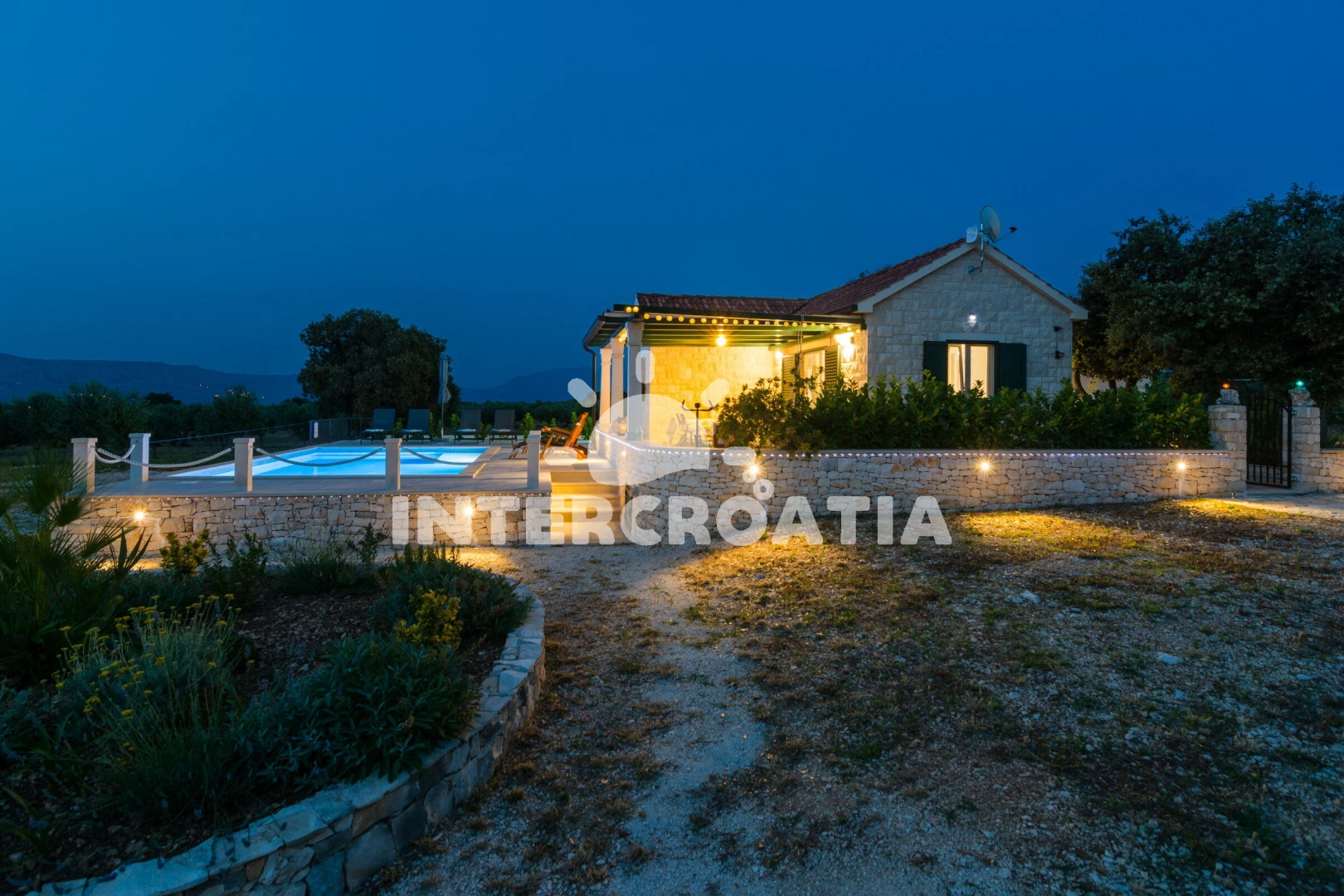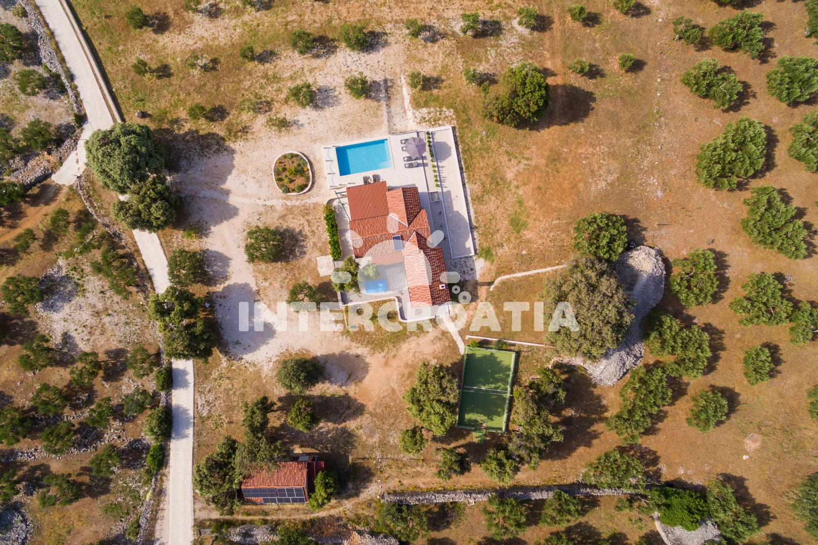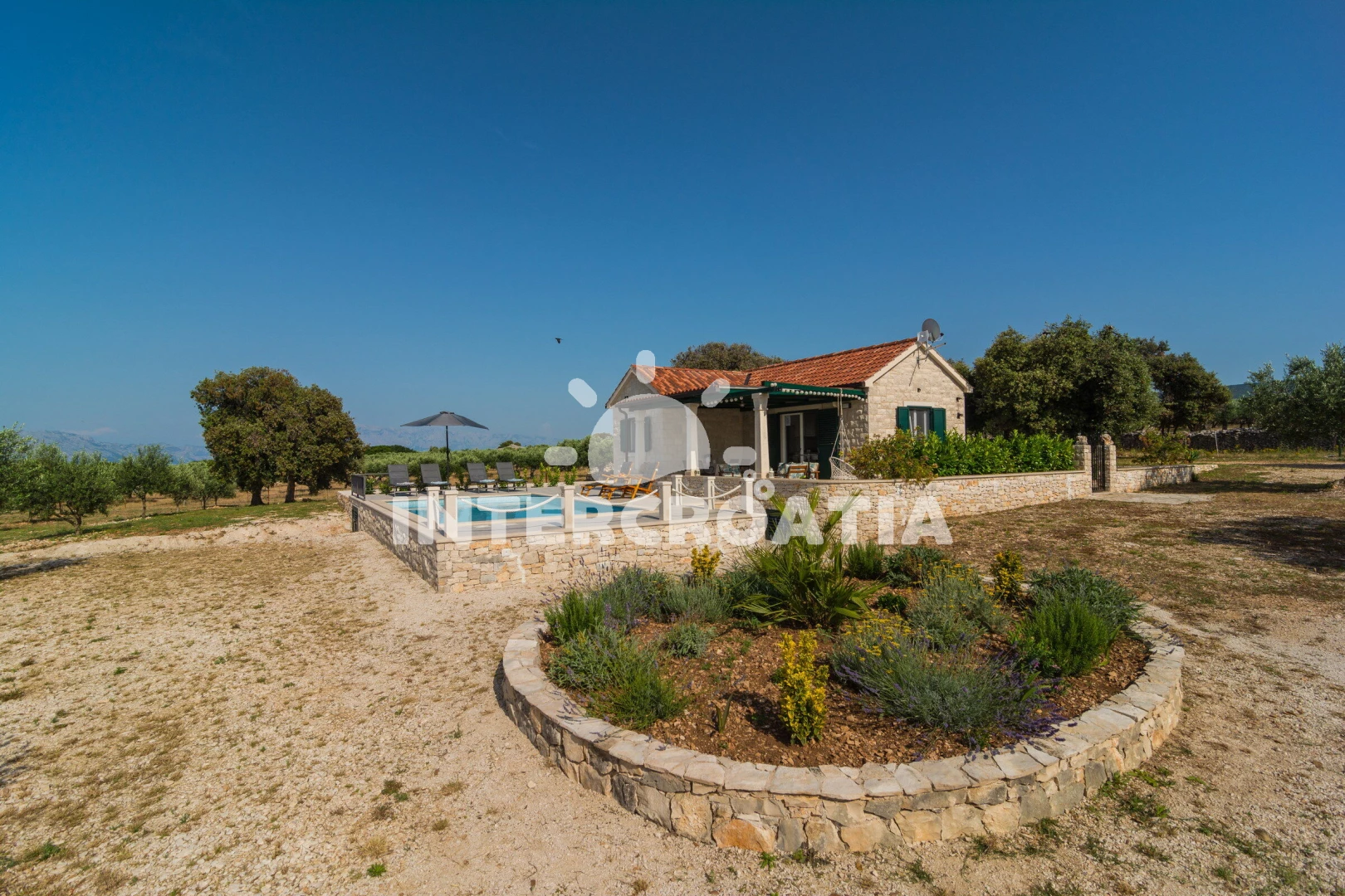 Vzdálenosti: Moře 1,2 km, pláž 1,2 km (oblázková a betonové desky), supermarket 1 km, bar 1,1 km, tenisové kurty 1,2 km, centrum 1,5 km, veřejná doprava 1,5 km, půjčovna kol 2 km, restaurace 2 km, pošta 2,2 km, směnárna 2,2 km, lékárna 2,2 km, banka 11 km, ambulance 11 km, diskotéka 11 km, potápění 11 km, čerpací stanice 11 km, trajekt (Supetar) 11 km, letiště (Bol (otok Brač)) 30 km,