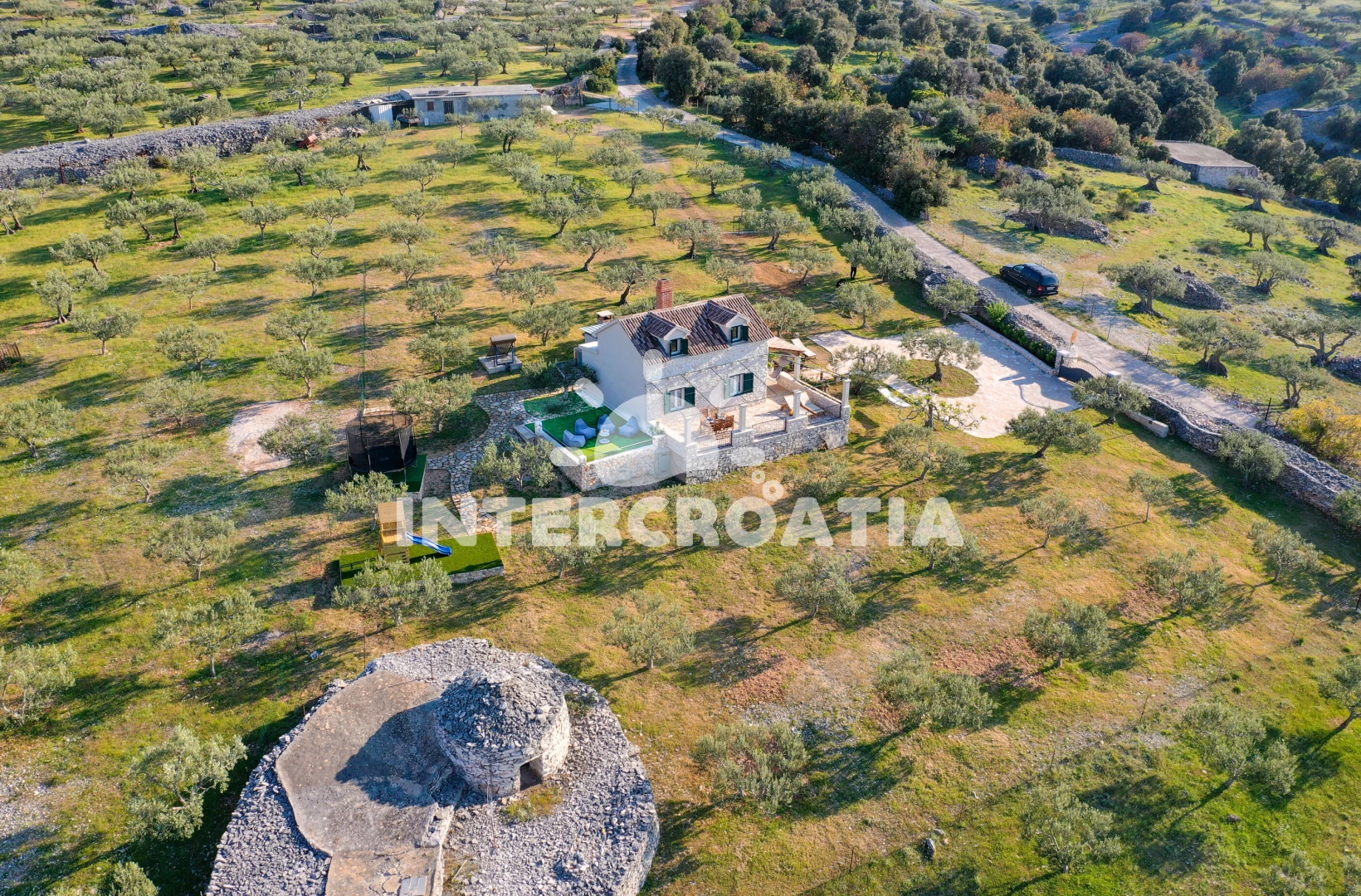 Vzdálenosti: Moře 900 m, pláž 900 m (písčitá a kamenitá), restaurace 900 m, bar 900 m, centrum 4 km, tenisové kurty 4 km, kotviště pro čluny 4 km, půjčovna kol 4 km, pošta 4 km, půjčovna motorových člunů 4 km, směnárna 4 km, ambulance 4 km, lékárna 4 km, veřejná doprava 4 km, supermarket 4 km, muzeum 6 km, čerpací stanice 14 km, trajekt (Supetar) 14 km, diskotéka 14 km, potápění 14 km, banka 14 km, marina 25 km, letiště (Bol (otok Brač)) 30 km,