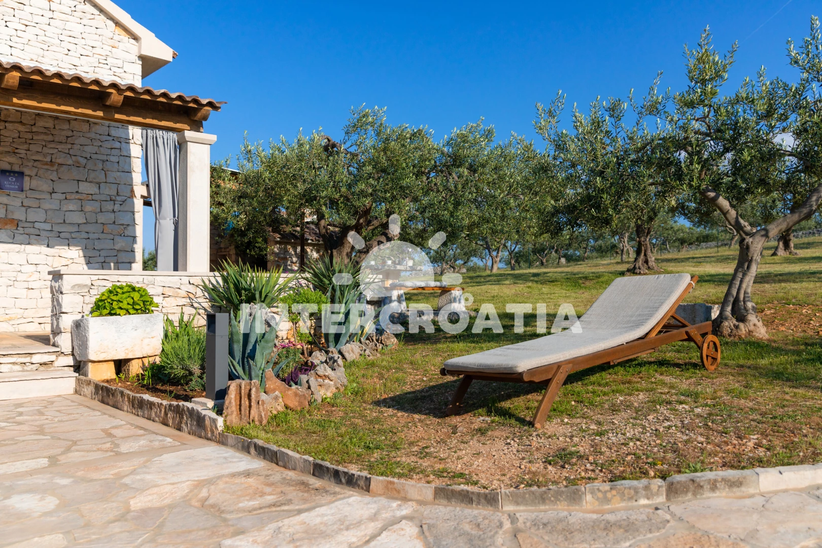 Domek se nachází 900 m od moře a pláže. Pláž je písčitá a kamenitá. Domek disponuje bazénem s lehátky pro ubytované hosty. U objektu je k dispozici společná zahrada s posezením a grilem. Parkování je před domem.