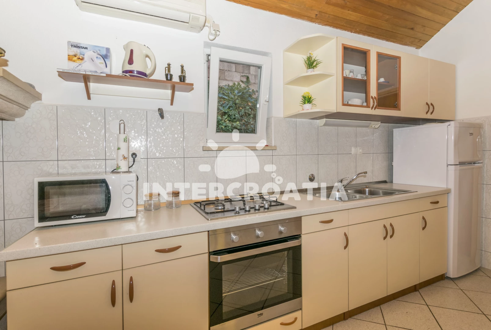 Domek se nachází 400 m od moře a pláže. Pláž je skalnatá a oblázková. U objektu je k dispozici společná zahrada s posezením a grilem. Parkování je před domem.