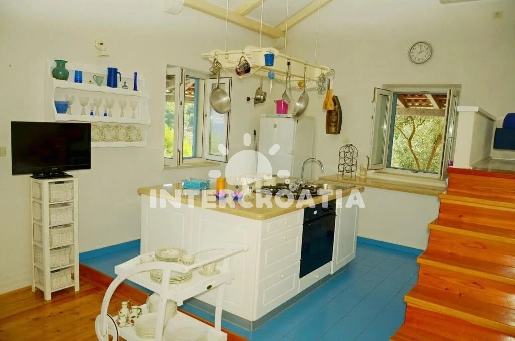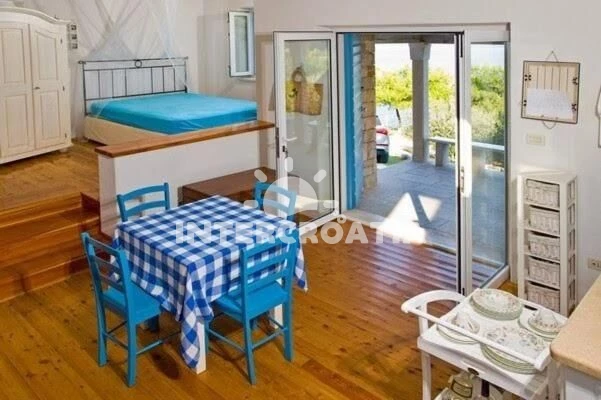 Domek (50 m2) s výhledem na moře. Kuchyňská linka je vybavena varnou deskou, troubou, nádobím, lednicí. V obývací místnosti je rozložitelná pohovka (extra lůžko pro 6 osob). K dispozici televize. Koupelna se sprchovým koutem, umyvadlem, WC.