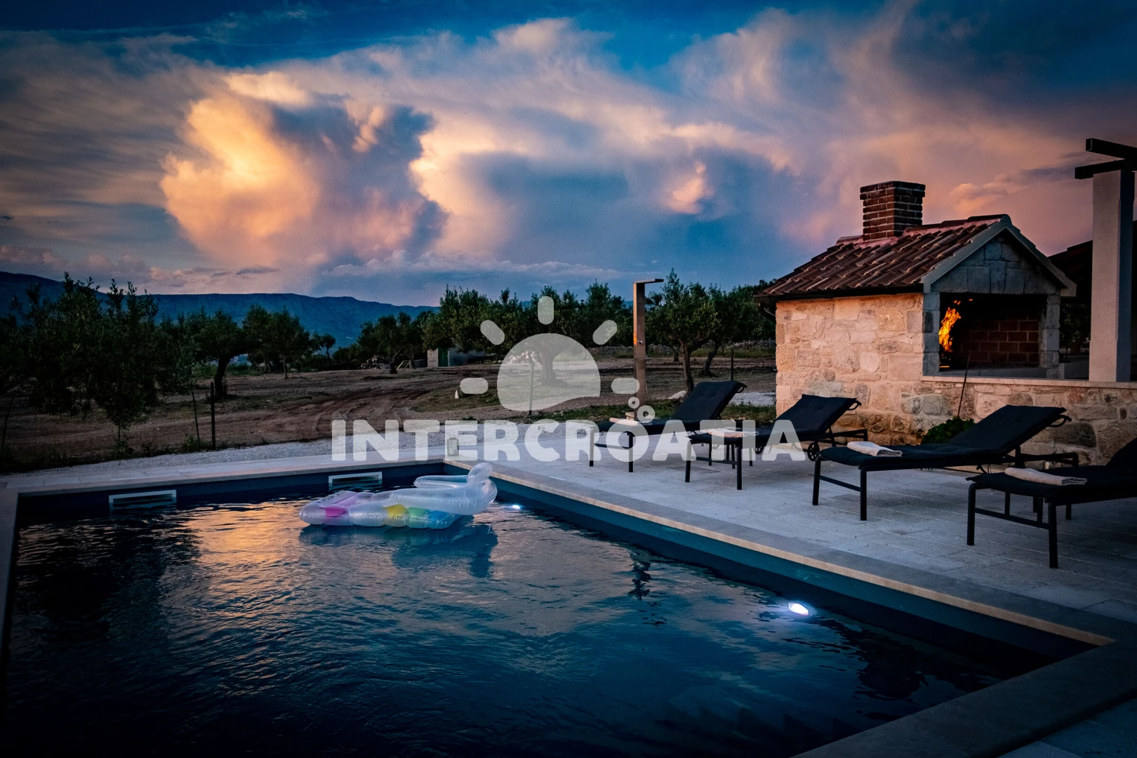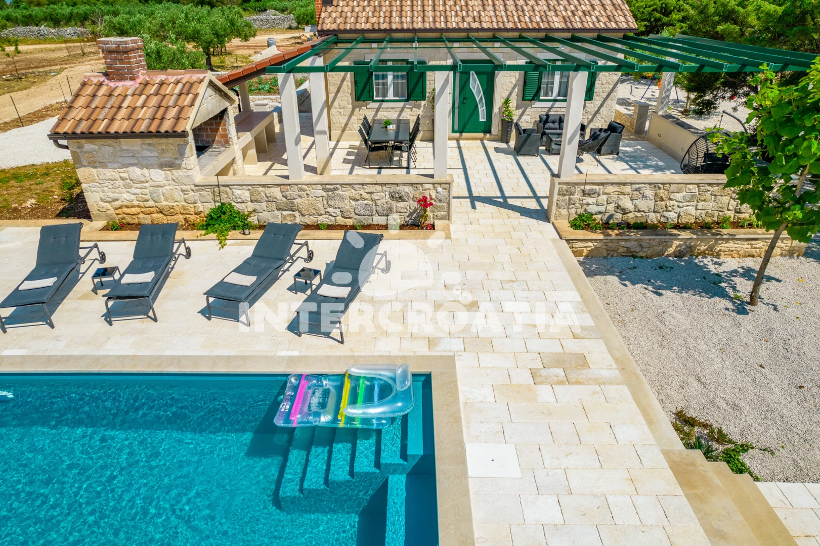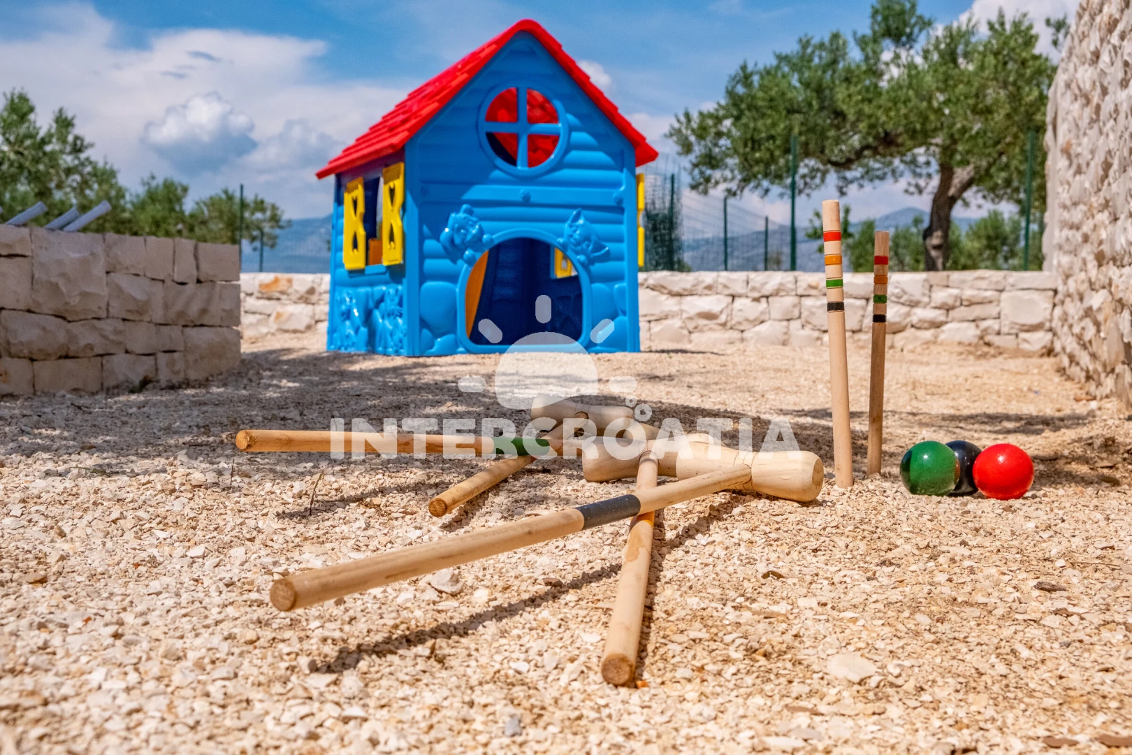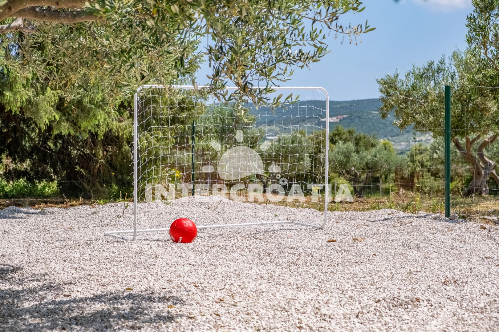 Domek se nachází 3000 m od moře a pláže. Pláž je skalnatá a oblázková. Domek disponuje bazénem s lehátky pro ubytované hosty. U objektu je k dispozici společná zahrada s posezením a grilem. Parkování je před domem.