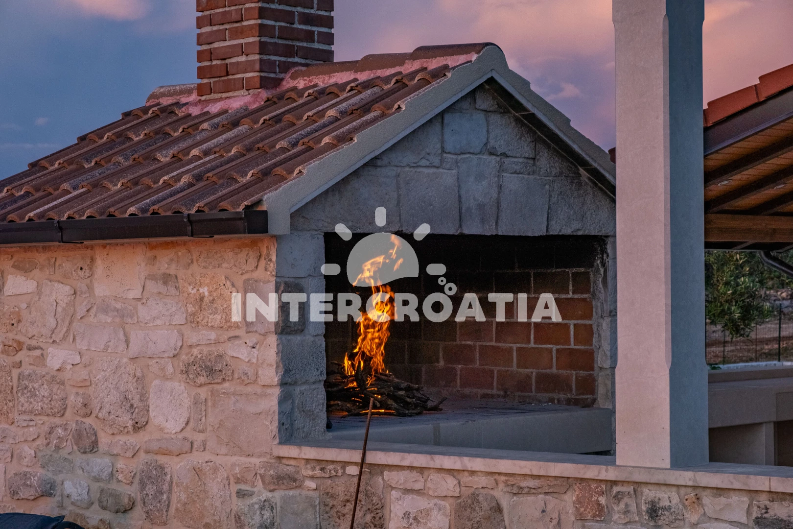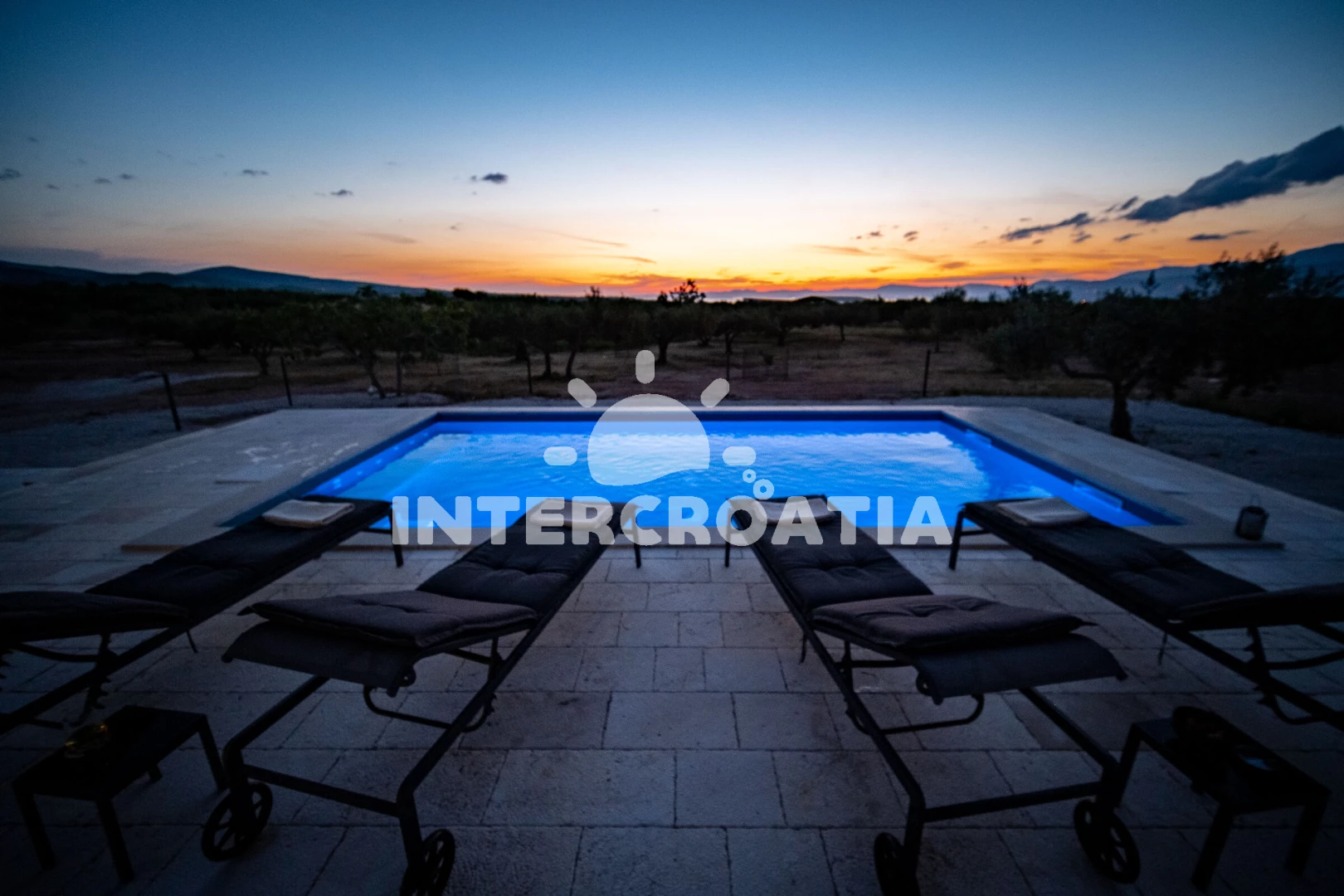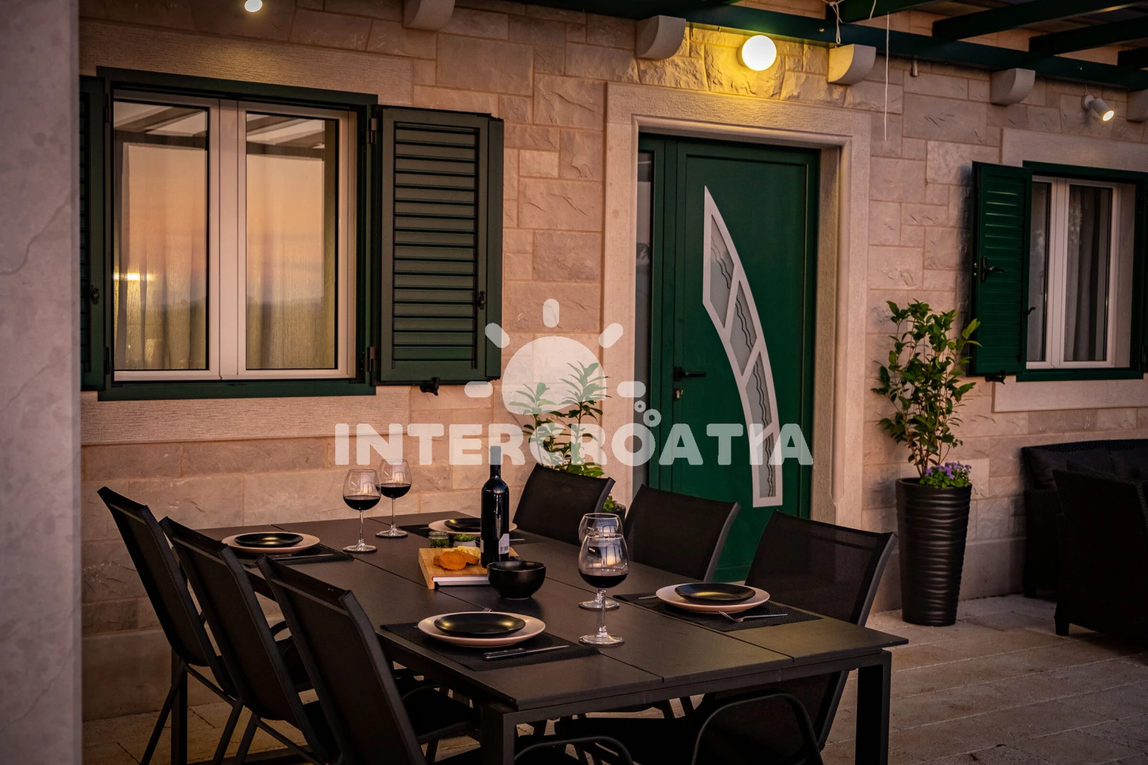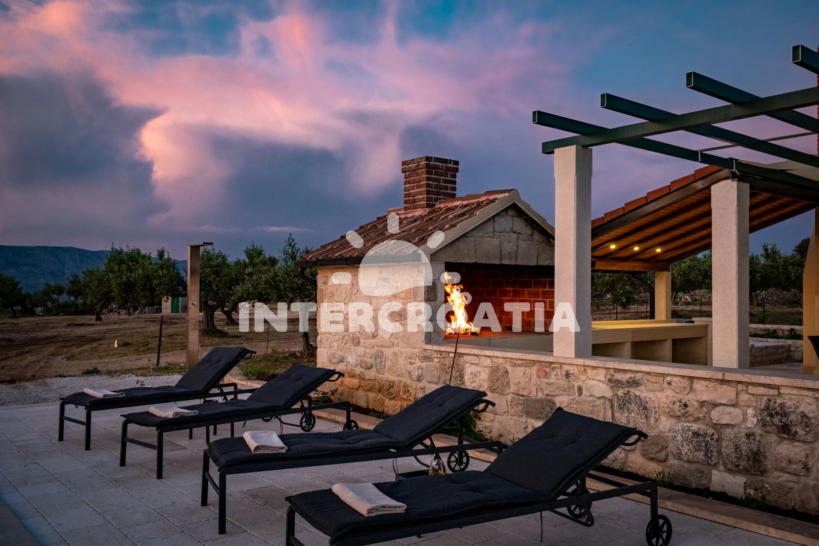 Domek se nachází 3000 m od moře a pláže. Pláž je skalnatá a oblázková. Domek disponuje bazénem s lehátky pro ubytované hosty. U objektu je k dispozici společná zahrada s posezením a grilem. Parkování je před domem.