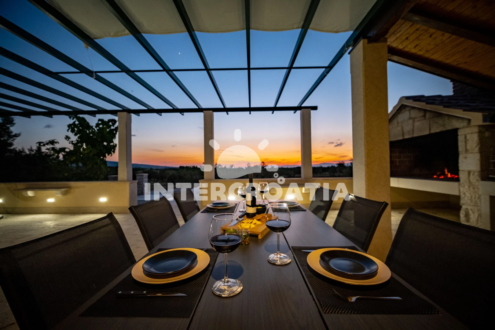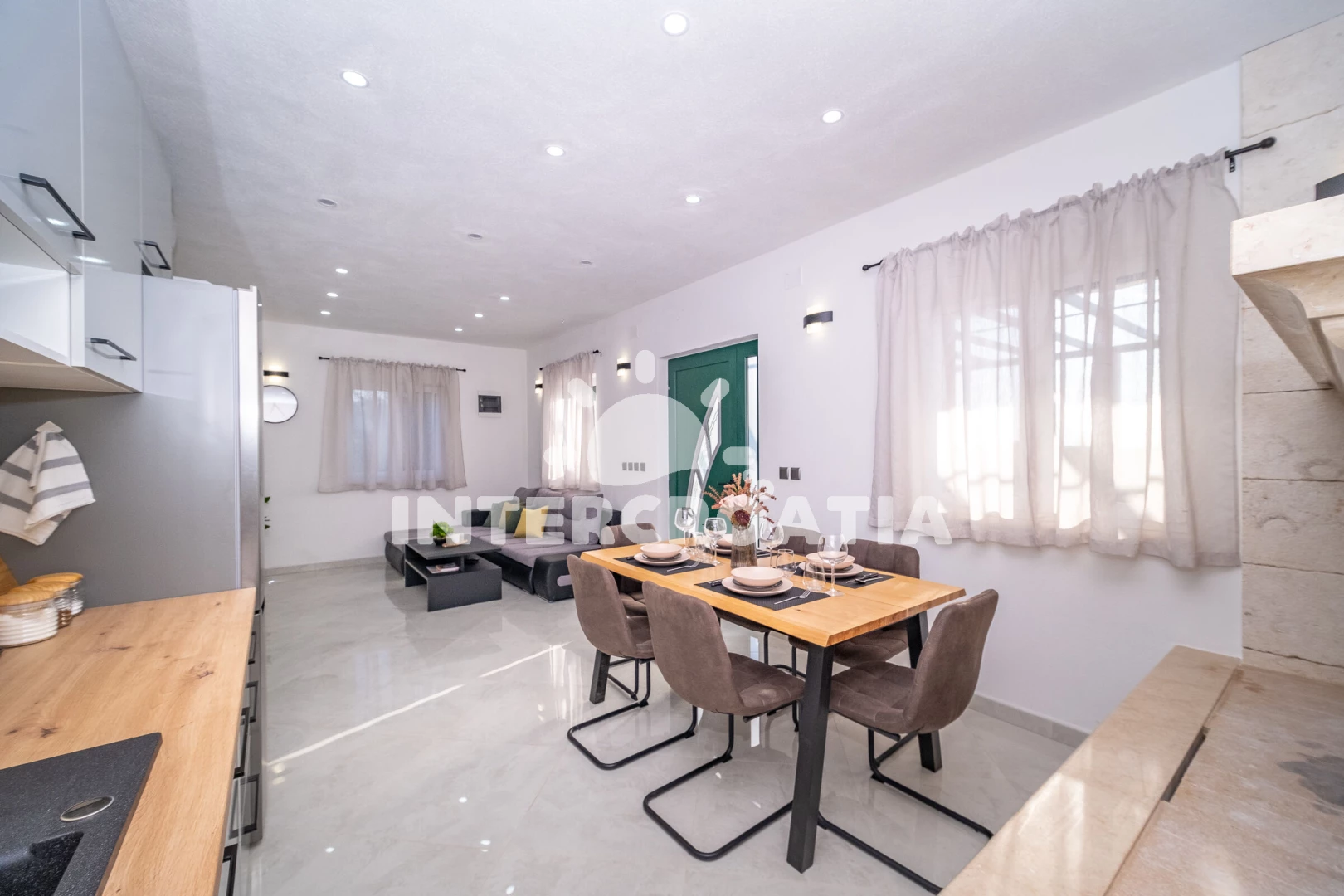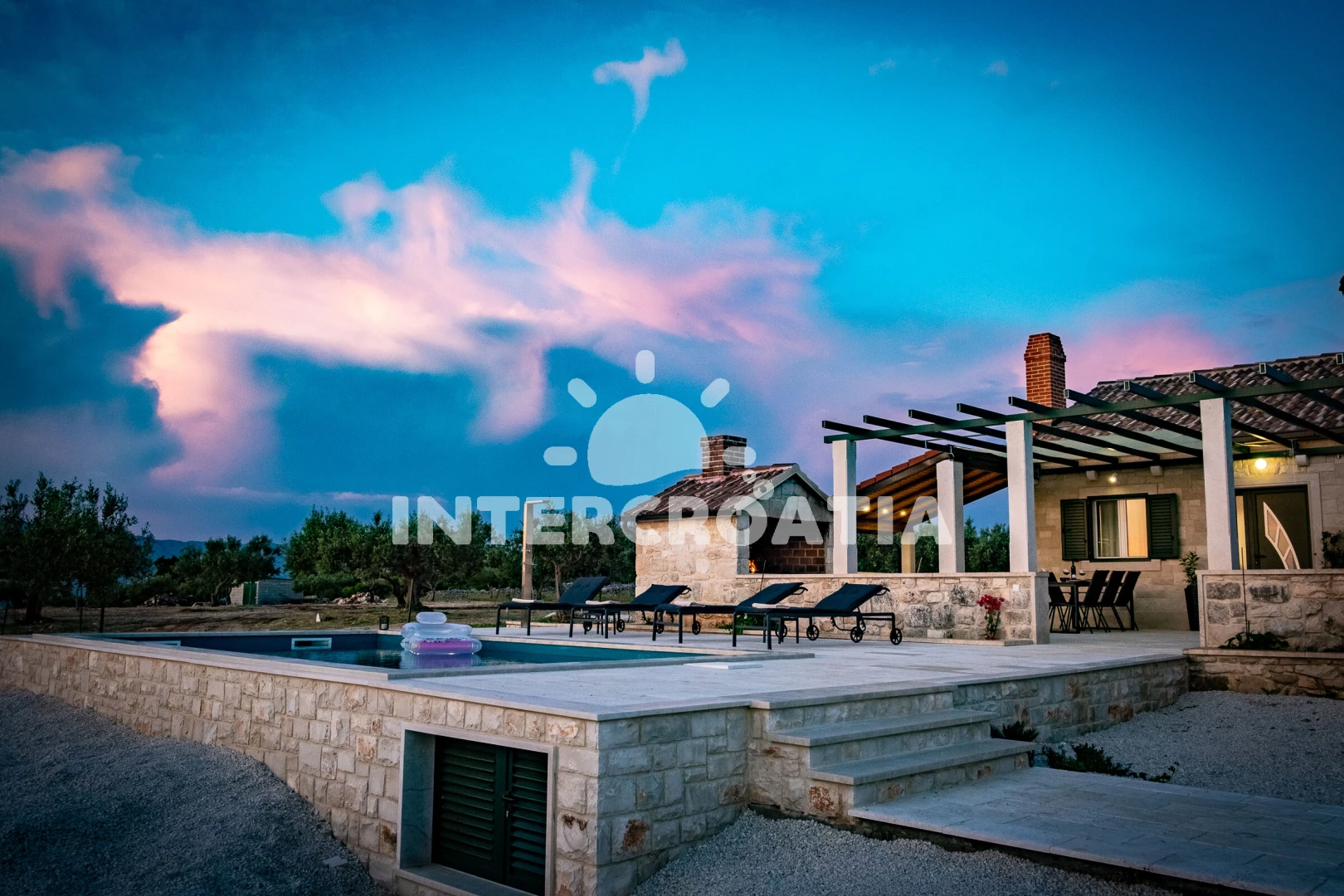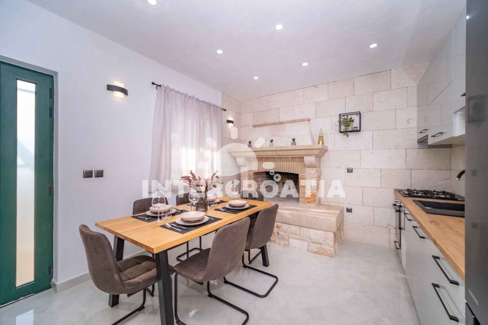 Domek se nachází 3000 m od moře a pláže. Pláž je skalnatá a oblázková. Domek disponuje bazénem s lehátky pro ubytované hosty. U objektu je k dispozici společná zahrada s posezením a grilem. Parkování je před domem.