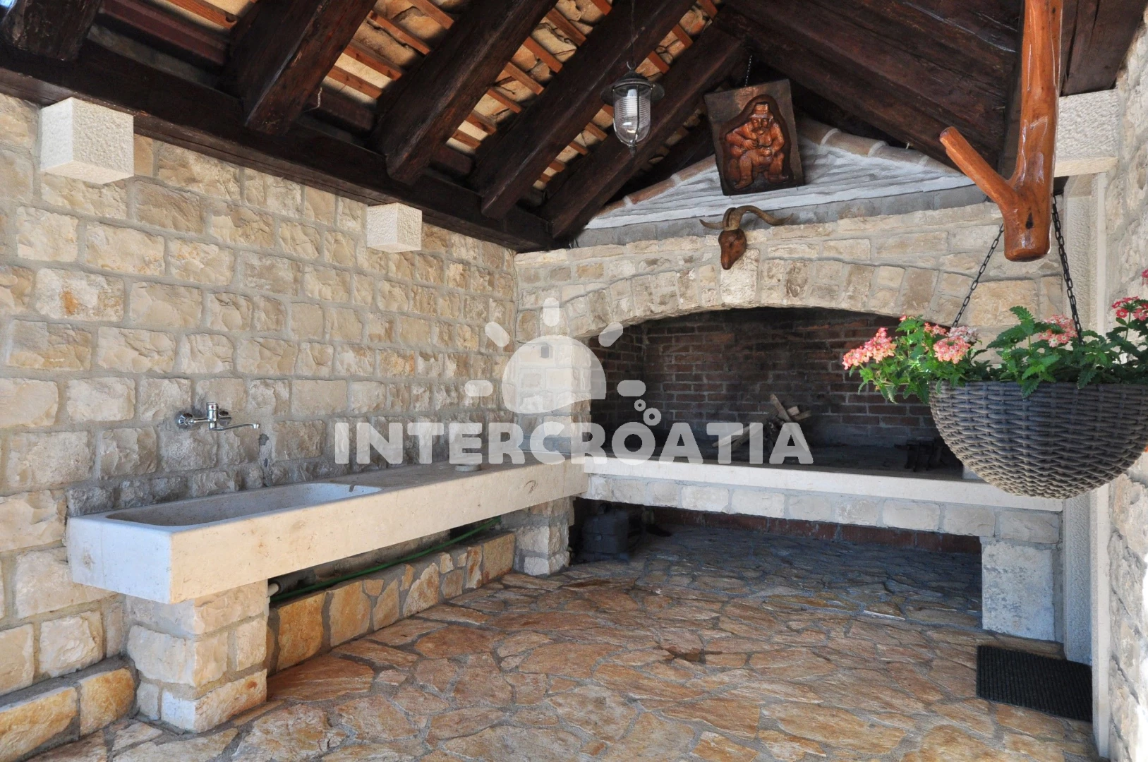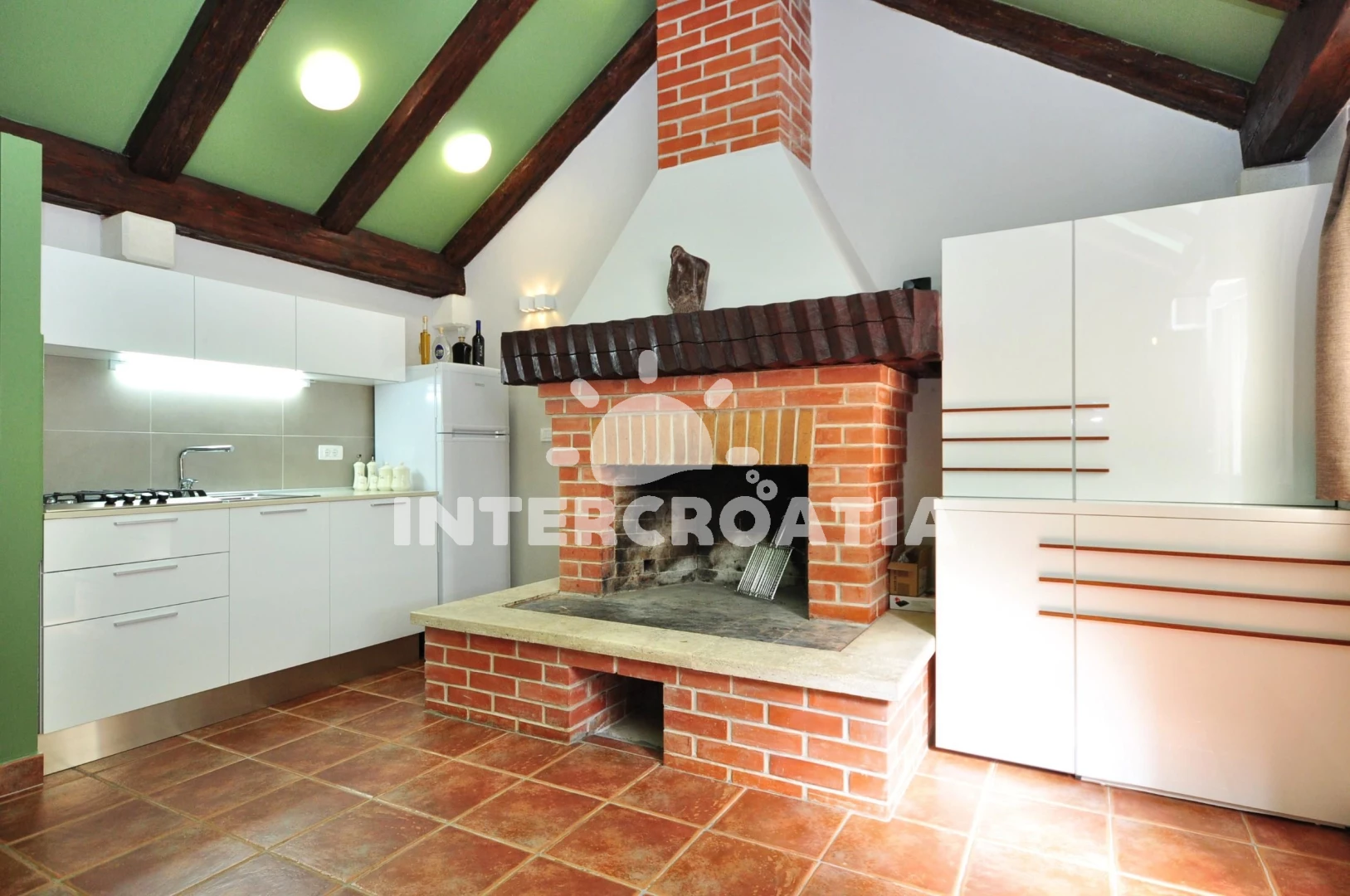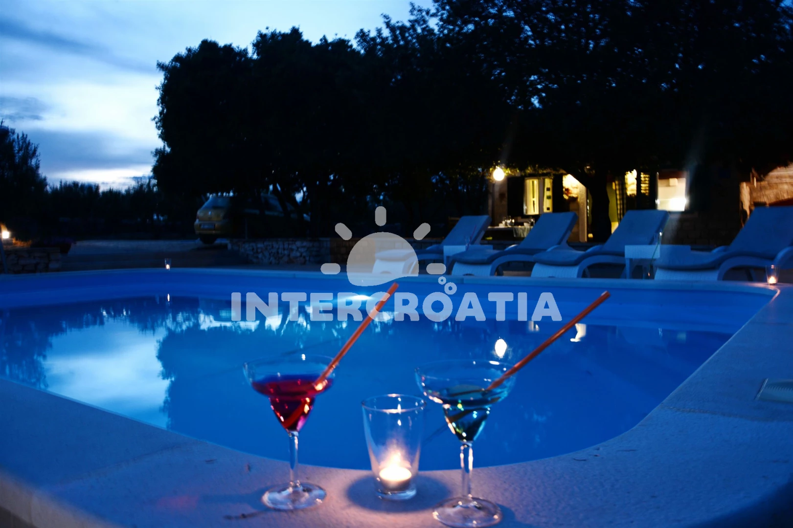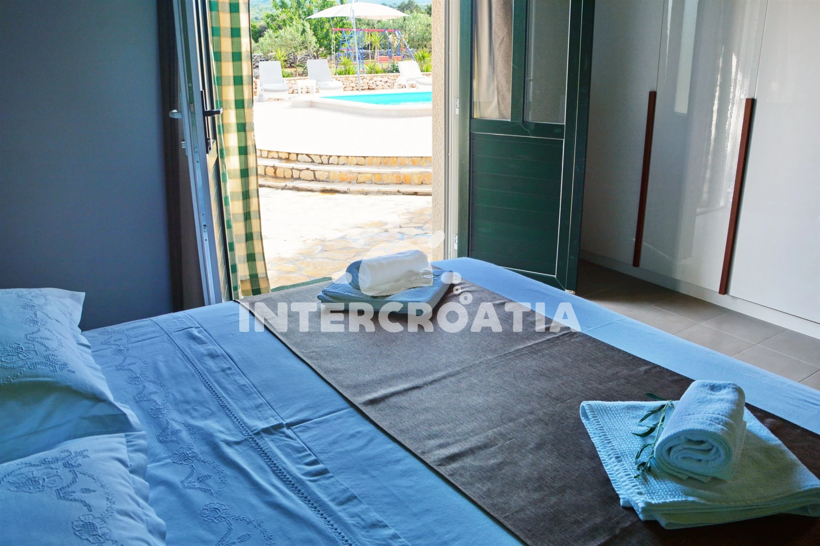 Domek se nachází 1500 m od moře a pláže. Pláž je oblázková a betonové desky. Domek disponuje bazénem s lehátky pro ubytované hosty. Parkování je před domem.