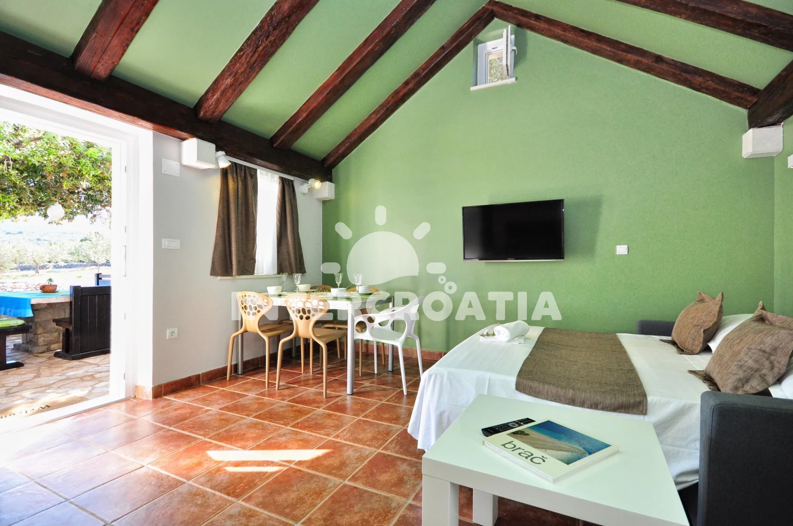 Vzdálenosti: Moře 1,5 km, pláž 1,5 km (oblázková a betonové desky), restaurace 1,5 km, centrum 5 km, supermarket 5 km, veřejná doprava 5 km, lékárna 5 km, ambulance 5 km, směnárna 5 km, pošta 5 km, bar 5 km, letiště (Bol (otok Brač)) 15 km, trajekt (Supetar) 20 km, čerpací stanice 20 km,