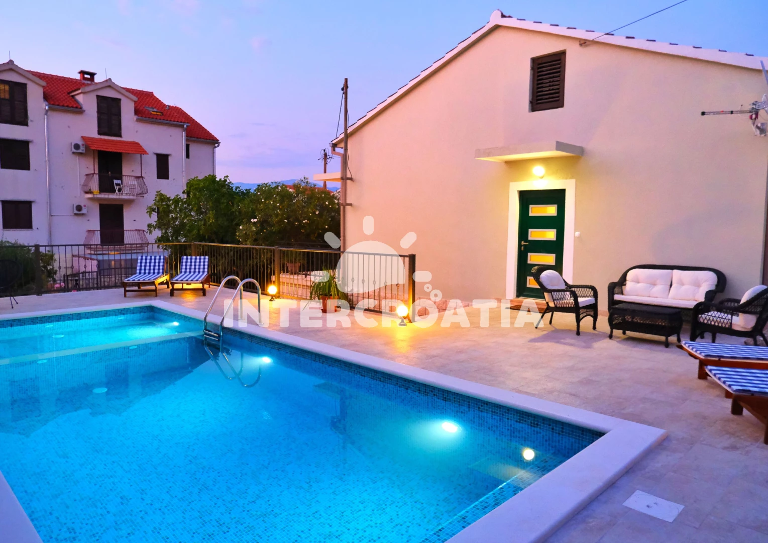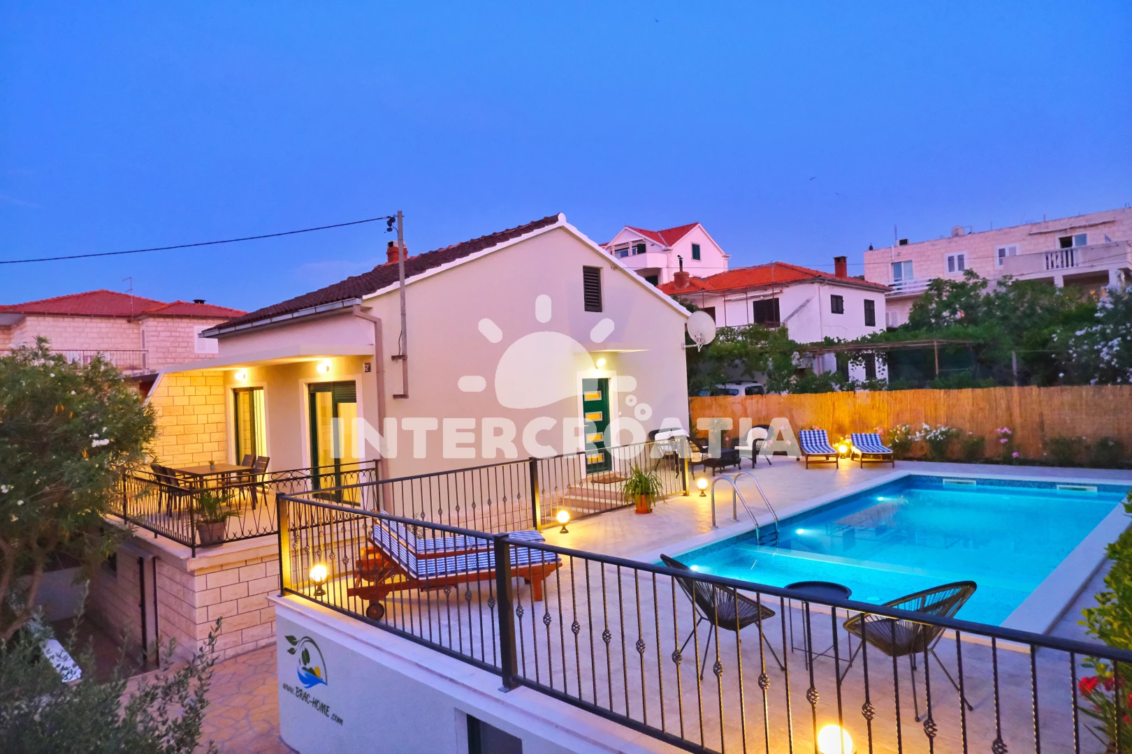 Domek se nachází 200 m od moře a pláže. Pláž je oblázková a betonové desky. Domek disponuje bazénem s lehátky pro ubytované hosty. U objektu je k dispozici společná zahrada s posezením a grilem.