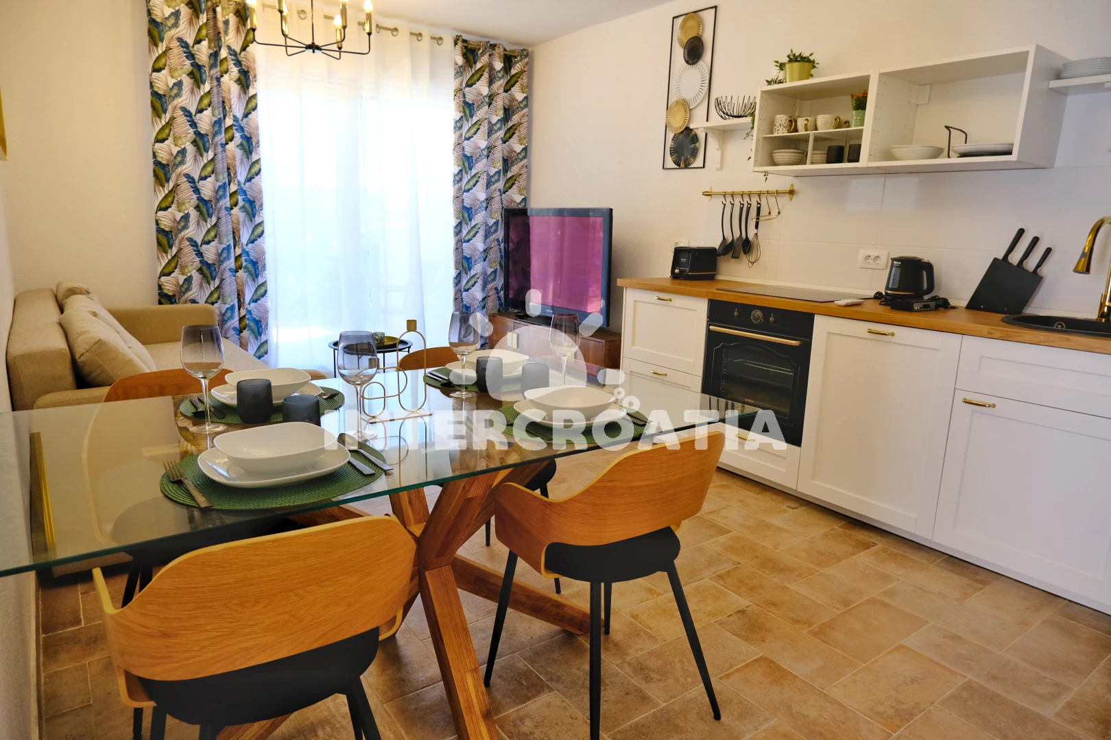Domácí zvířata jsou povolena ( 15 € na den ). V ceně pobytu zahrnuto: WiFi, klimatizace (část místností), topení, povlečení, ručníky, pračka, dětská postýlka (služba na požádání), závěrečný úklid, pobytová taxa. Host je povinen v den příjezdu do ubytování složit vratnou zálohu celkem 200 €, kterou dostane zpět v den odjezdu, pokud nepoškodil ubytovací jednotku. Pronajímatel se dorozumí chorvatsky, anglicky, německy, Pronajímatel vás bude očekávat po 14:00. V den odjezdu je nutné vyklidit apartmán do 10:00.