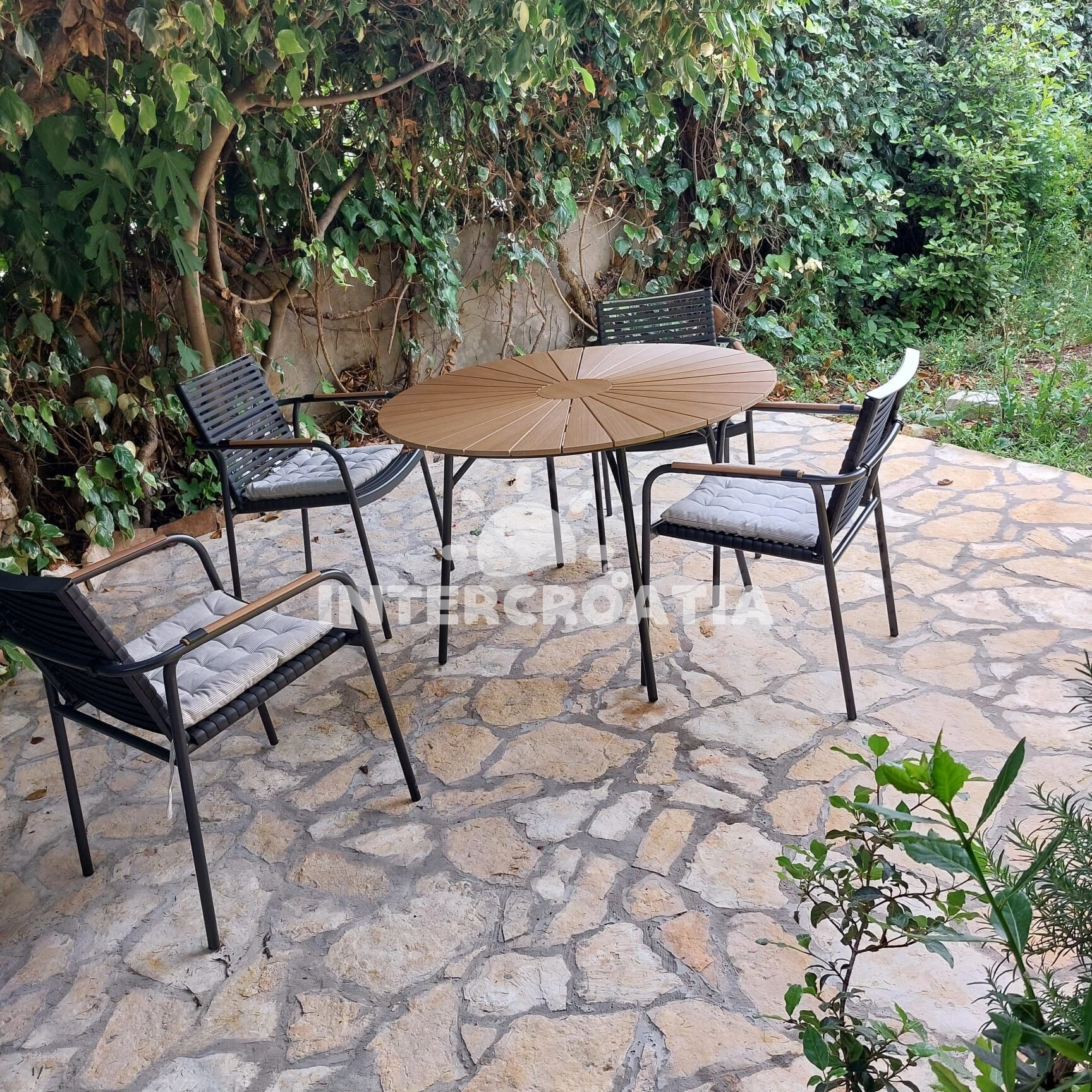 Ein kleines, etwas in die Jahre gekommenes Bungalow mit zwei kleinen Schlafzimmern ( 1x Doppelbett, 1 x 2 Einzelbetten), einem Wohn-Esszimmer, Mini-Küchennische, Mini-Bad mit Dusche und mit schattenspendendem Garten mit Terrasse (wir mögen natürliche, nicht zu aufgeräumte Gärten mit Bäumen sehr gerne) mit Sitzgelegenheit fürs Essen oder Entspannen in einer Randsiedlung von Supetar. Innen soll das Häuschen über den Winter ''21/22'' laut Vermieter etwas erneuert werden. Vielleicht kann man da auch die etwas weichen Matratzen erneuern :). Wir waren ein zweites Mal dort. Es ist eine kleine Waschmaschine dazugekommen, was auch toll ist wenn man länger vor Ort ist. Klimaanlage, Internet, TV, reichlich Geschirr, Gefrier-Kühlkombi, Landkarten und noch viel mehr.. alles da.. Sonst waren auch noch Sachen als Erstversorgung vorhanden (echtes Olivenöl!, Salz, Pfeffer, Kaffee, Duschgel, WC Papier etc.), wobei wir selbst auch Gutes dalassen. Wir mögen es eher schlicht und sind so auch zufrieden und haben nichts vermisst. Mücken gab es keine. Mückengitter waren jedoch vorhanden. Zu Fuß in 10 Minuten im Zentrum oder am Strand oder am Markt oder Supermarkt. Marktstände mit heimischen Gemüse, Obst oder Öl gibt es auf dem Weg ins Zentrum. Ein weiterer Gemüsemarkt ist auch hinter dem Hafen. Alles war sauber und so haben wir es hinterlassen. Für 2-3 Erwachsene oder 2 Erwachsene und 2 Kinder finden wir es sehr gut geeignet. Der Garten ist eingezäunt und ein Parkplatz auf dem Grundstück. Hvala puno gosp. Bojan, a i komsijama Toma i Slavica. Sve najbolje i dovidenja!
