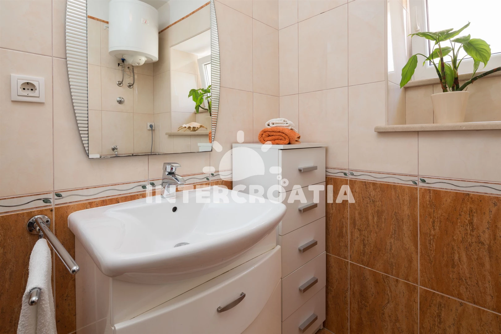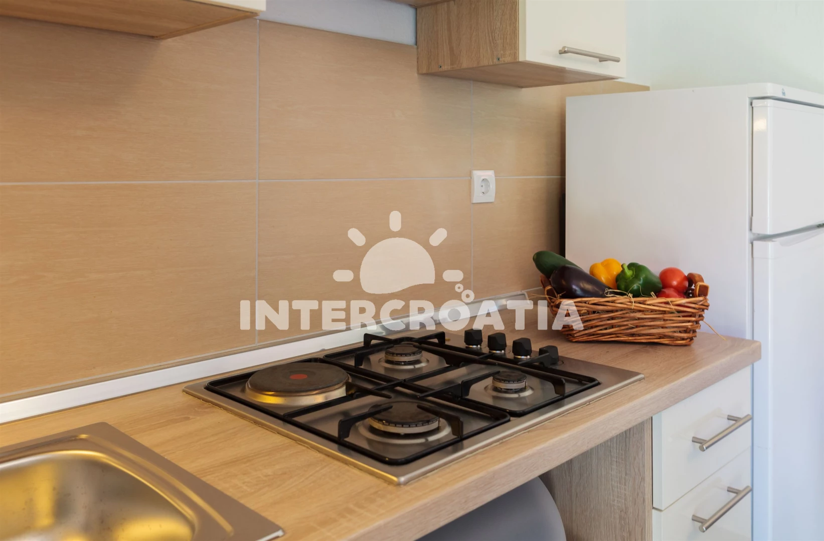 Vzdálenosti: Moře 80 m, pláž 100 m (oblázky), bar 100 m, centrum 100 m, restaurace 100 m, supermarket 150 m, kotviště pro čluny 250 m, marina 250 m, směnárna 300 m, ambulance 300 m, pošta 350 m, veřejná doprava 400 m, čerpací stanice 5,5 km, tenisové kurty 5,5 km, banka 5,5 km, diskotéka 5,5 km, lékárna 5,5 km, potápění 5,5 km, trajekt (Supetar) 6 km,