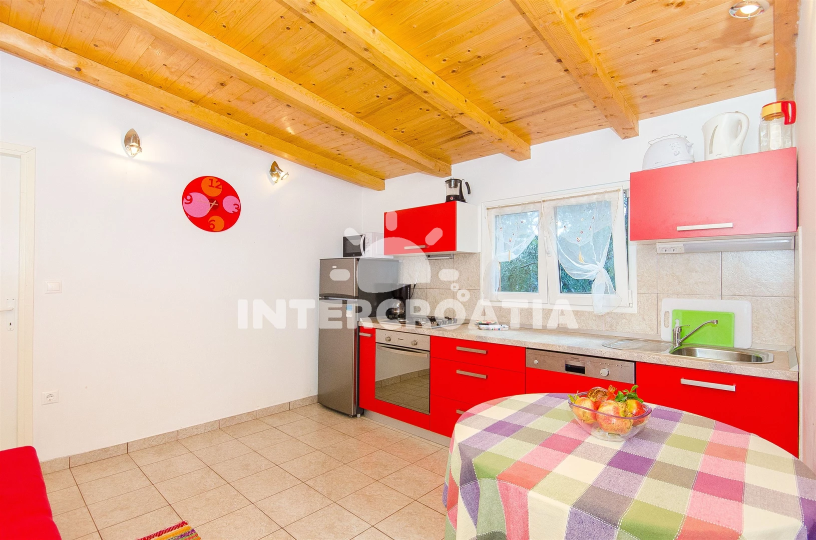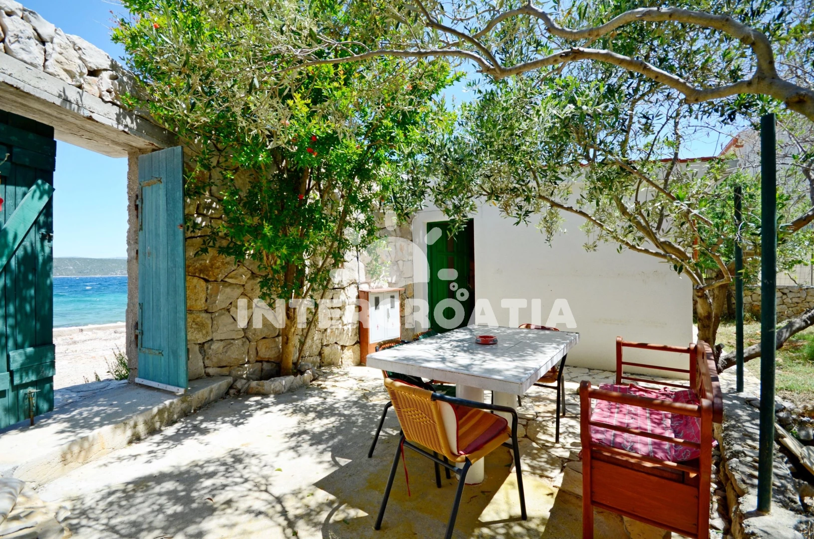 Domek se nachází 10 m od moře a pláže. Pláž je kamenné a betonové desky. U objektu je k dispozici společná zahrada s posezením a grilem.