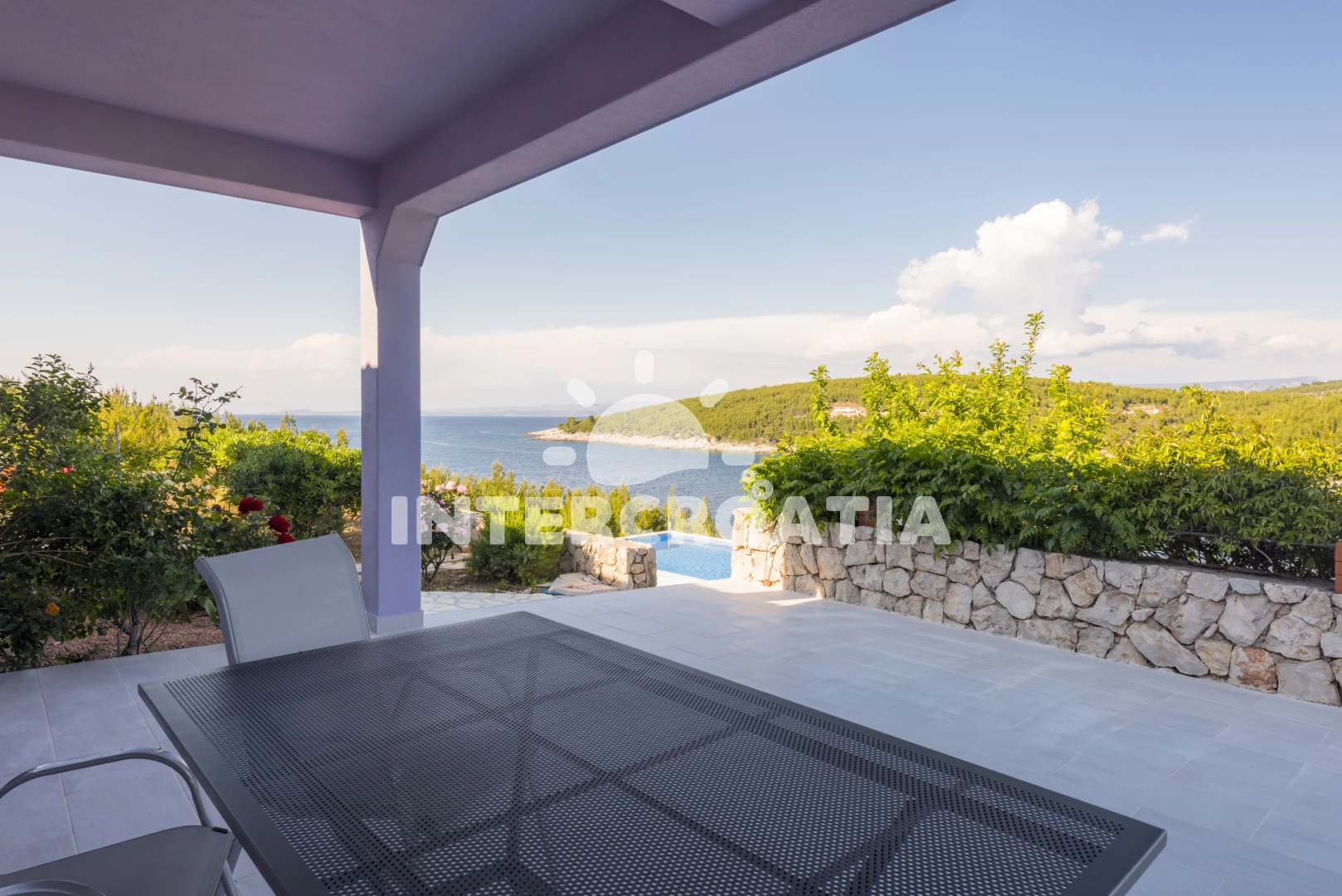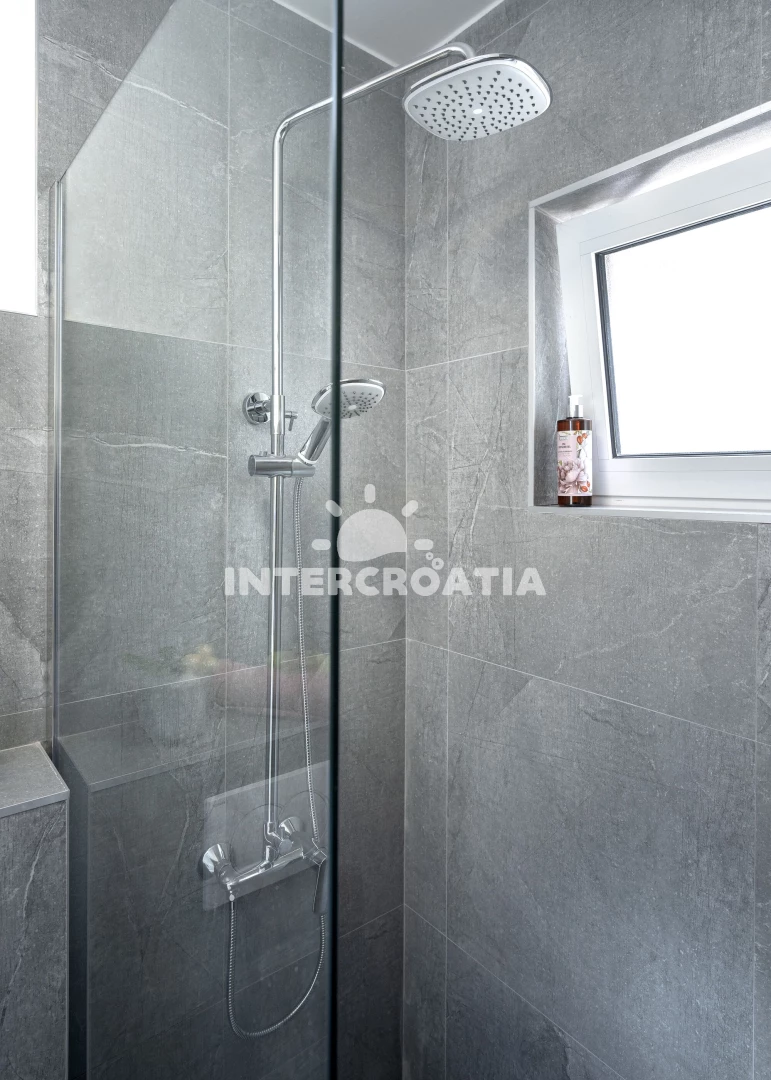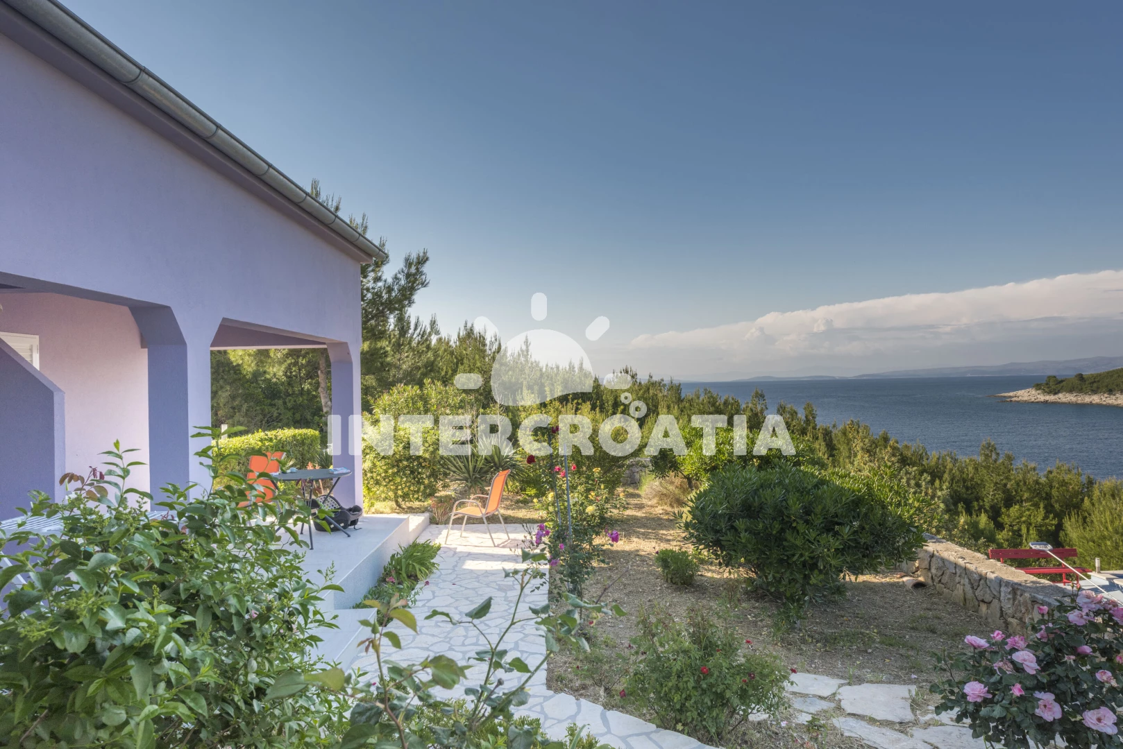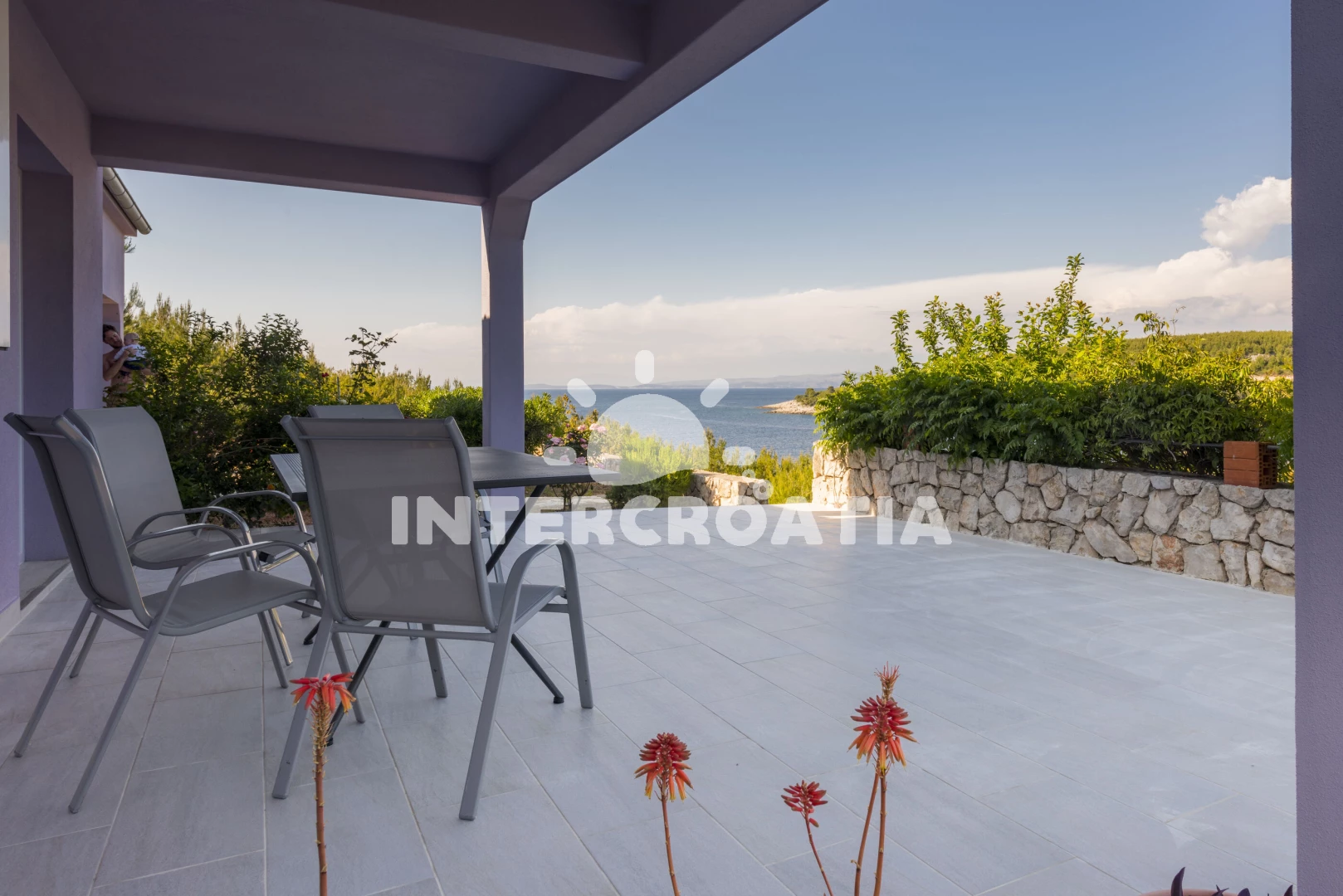 Domek se nachází 100 m od moře a pláže. Pláž je skalnatá, oblázková, větší kamení a betonové desky. Domek disponuje bazénem s lehátky pro ubytované hosty. U objektu je k dispozici společná zahrada s posezením a grilem. Parkování je před domem.