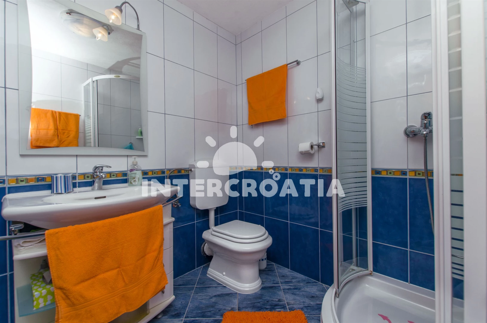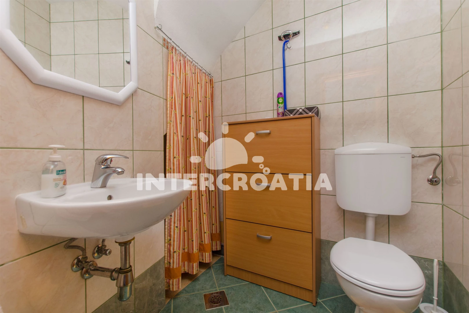 Domek se nachází 500 m od moře a pláže. Pláž je skalnatá, oblázková, větší kamení a betonové desky. Parkování je 150m - 300 m od domu.